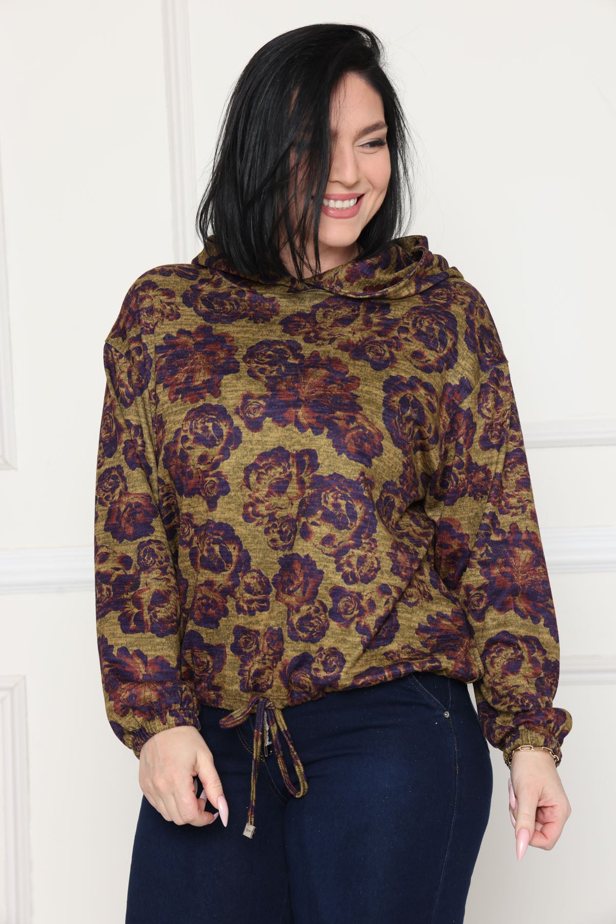 - חולצת סריג בגזרת עטלף מבד סריג דק ונעים בדוגמת פרחים.