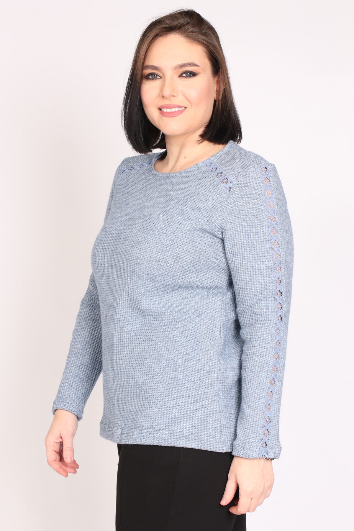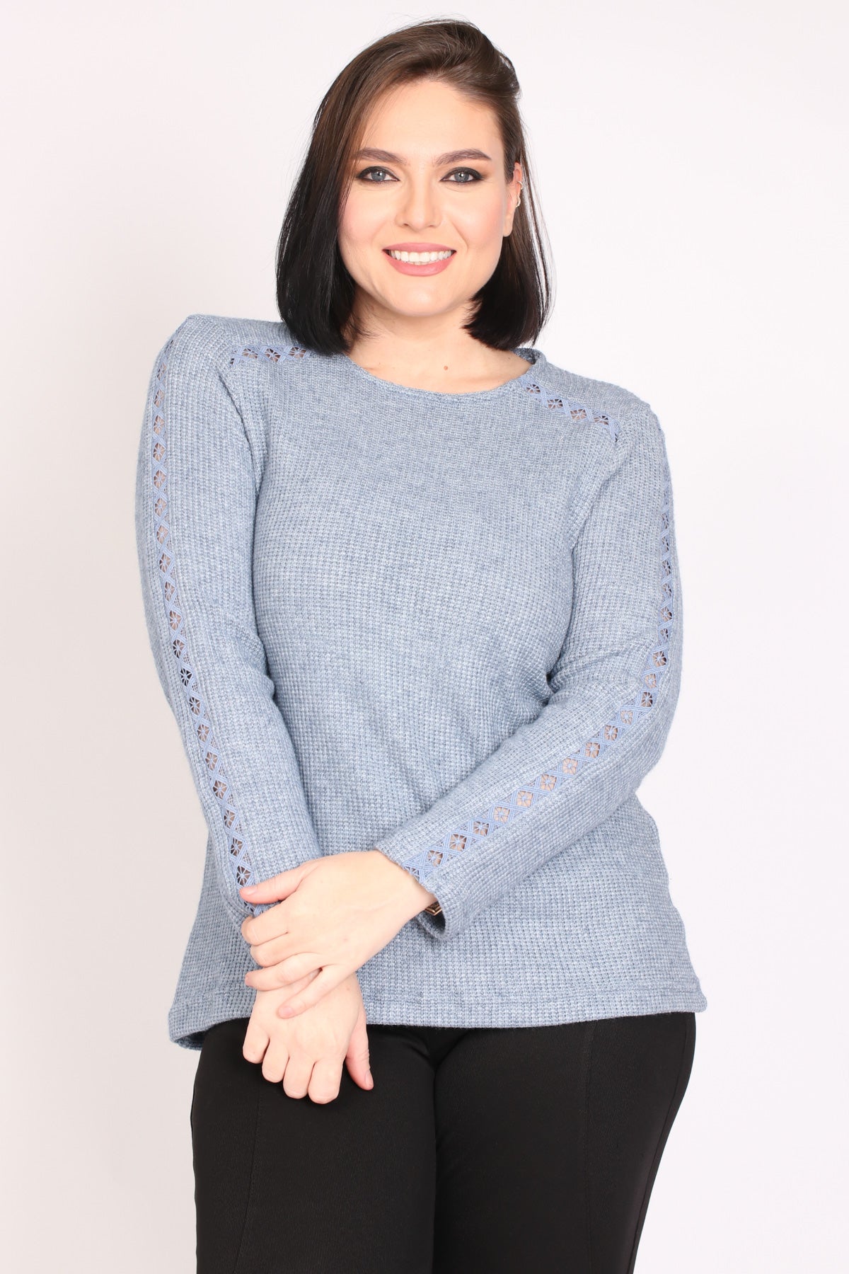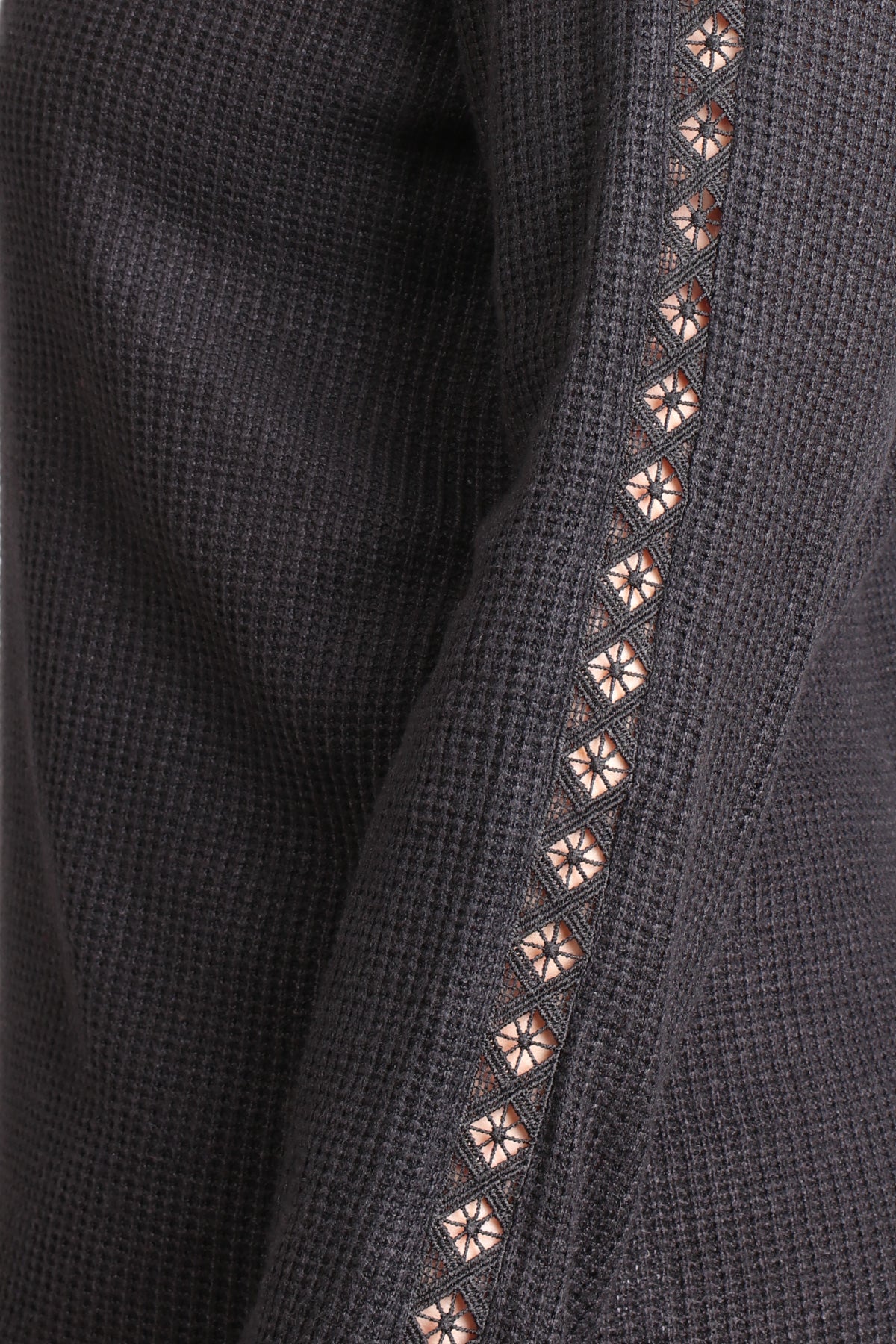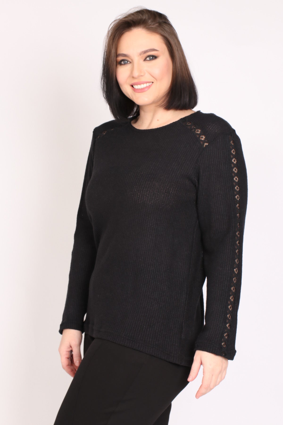 • חולצת סריג מבד וופל בעיטור תחרה לאורך השרוול והכתפיים