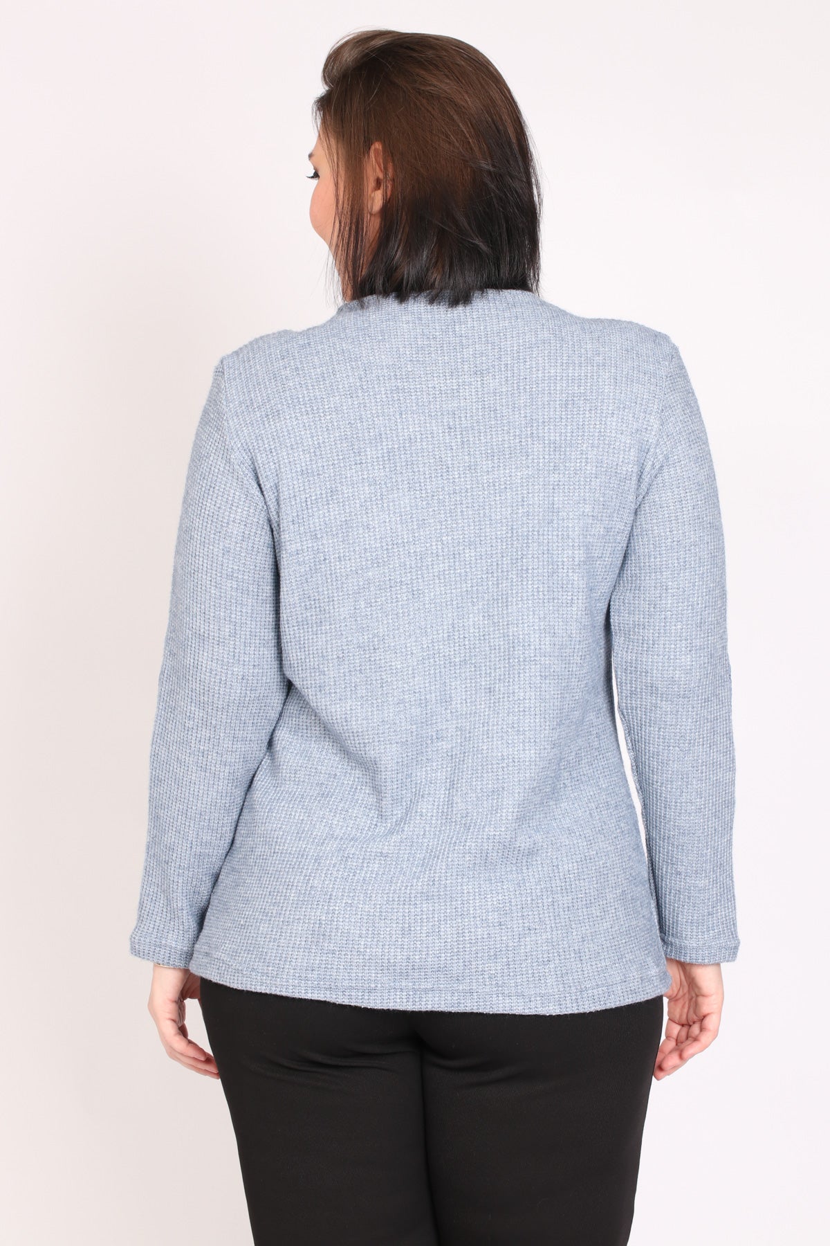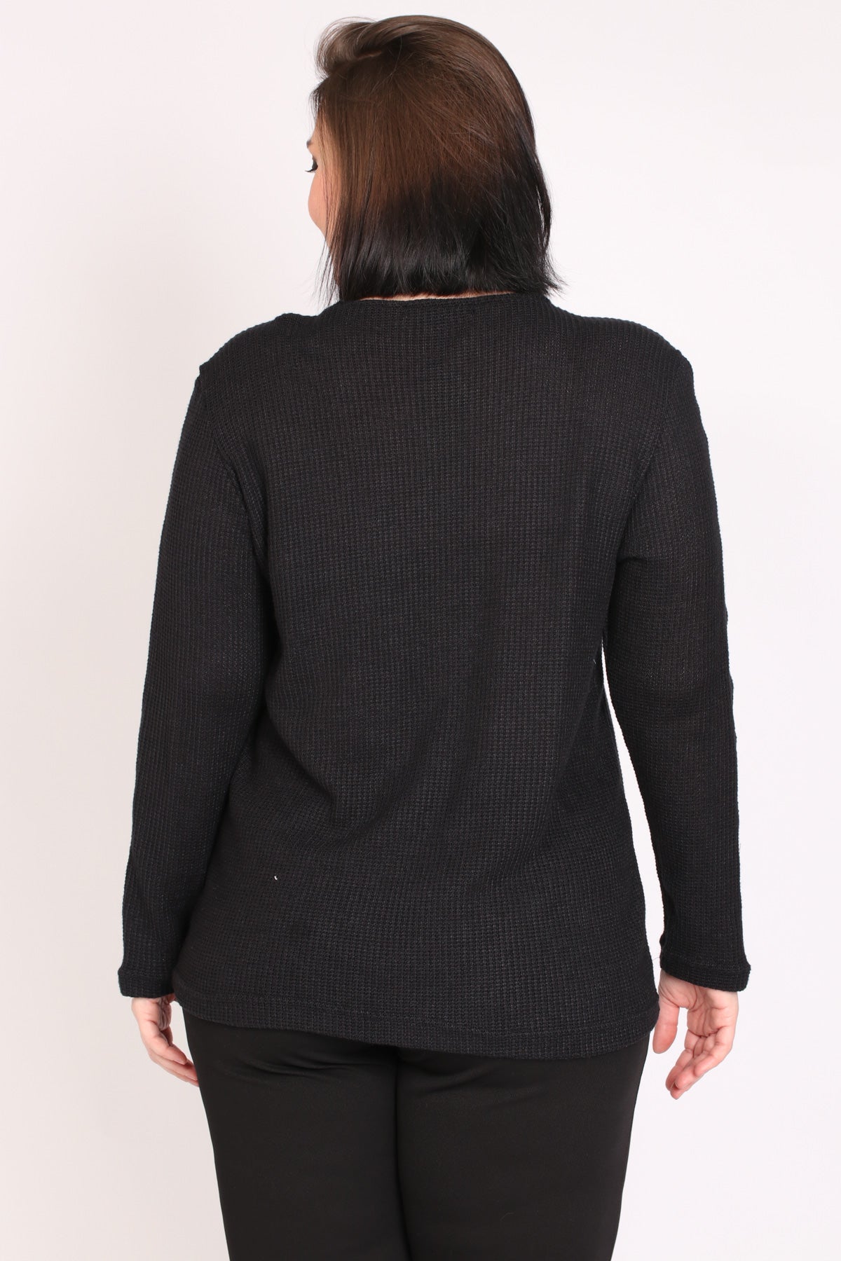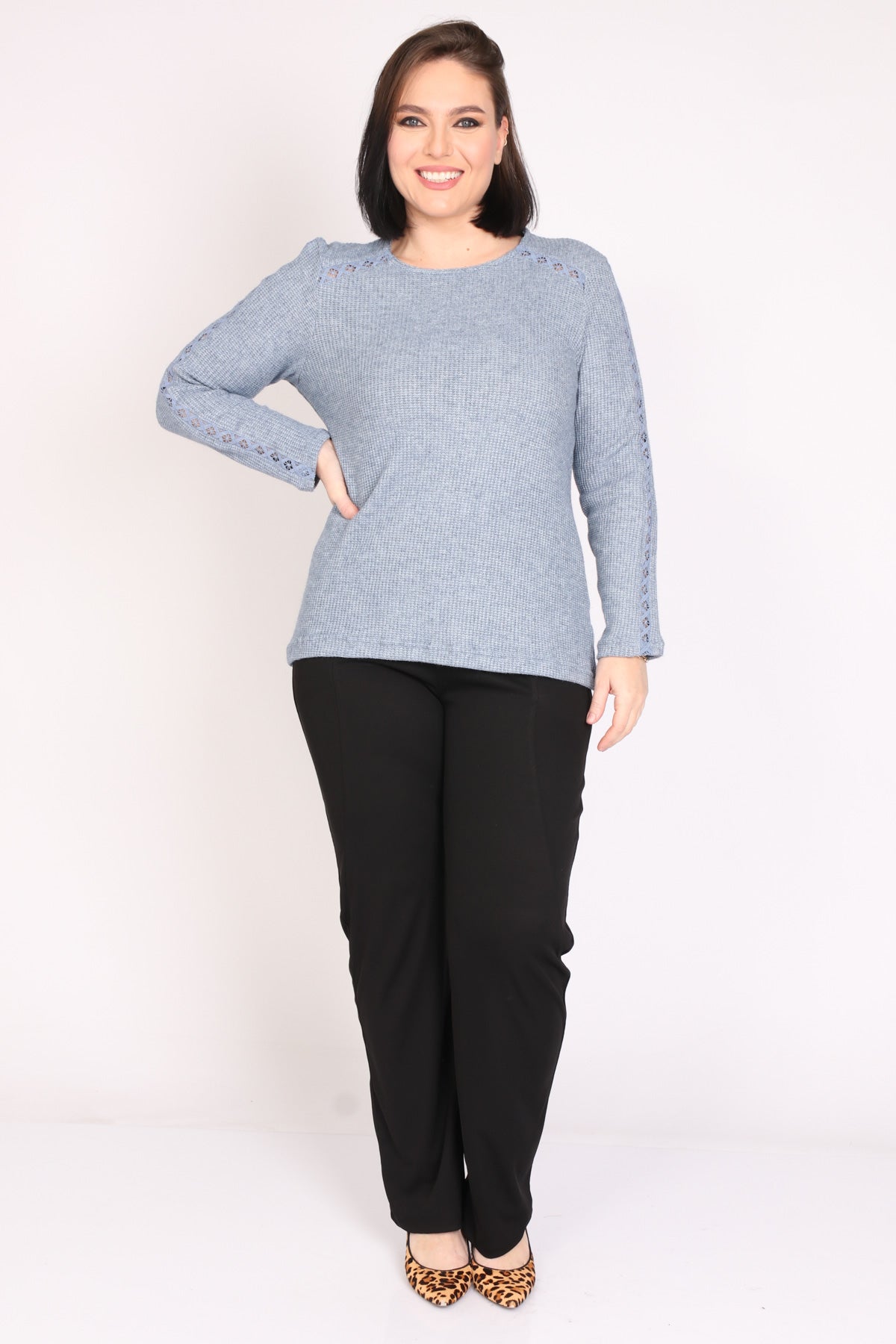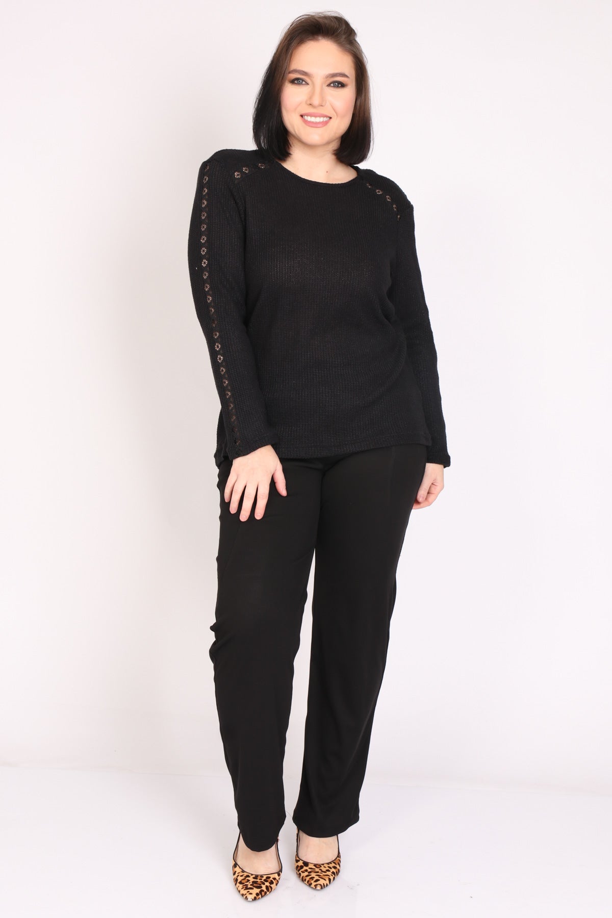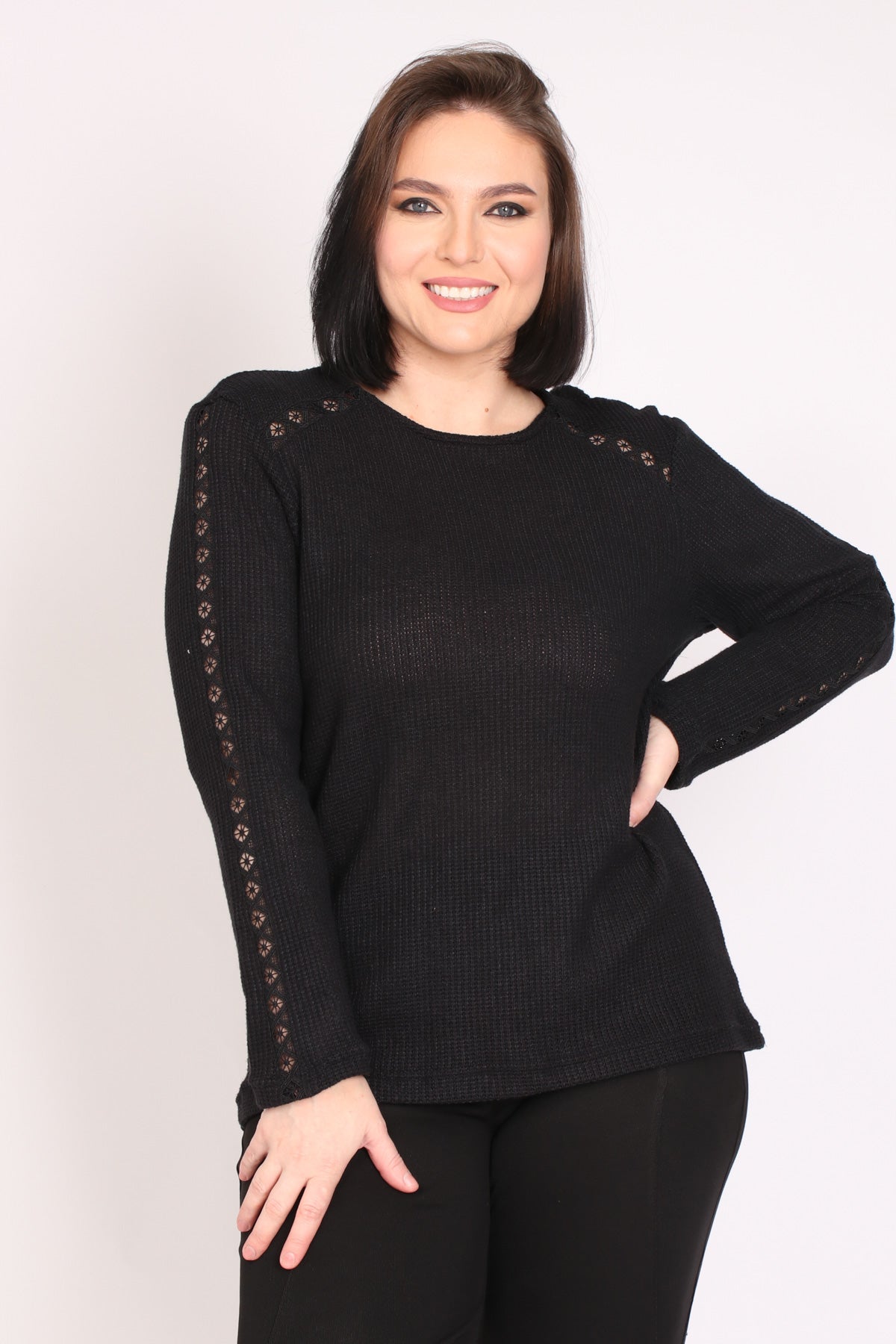 • חולצת סריג מבד וופל בעיטור תחרה לאורך השרוול והכתפיים