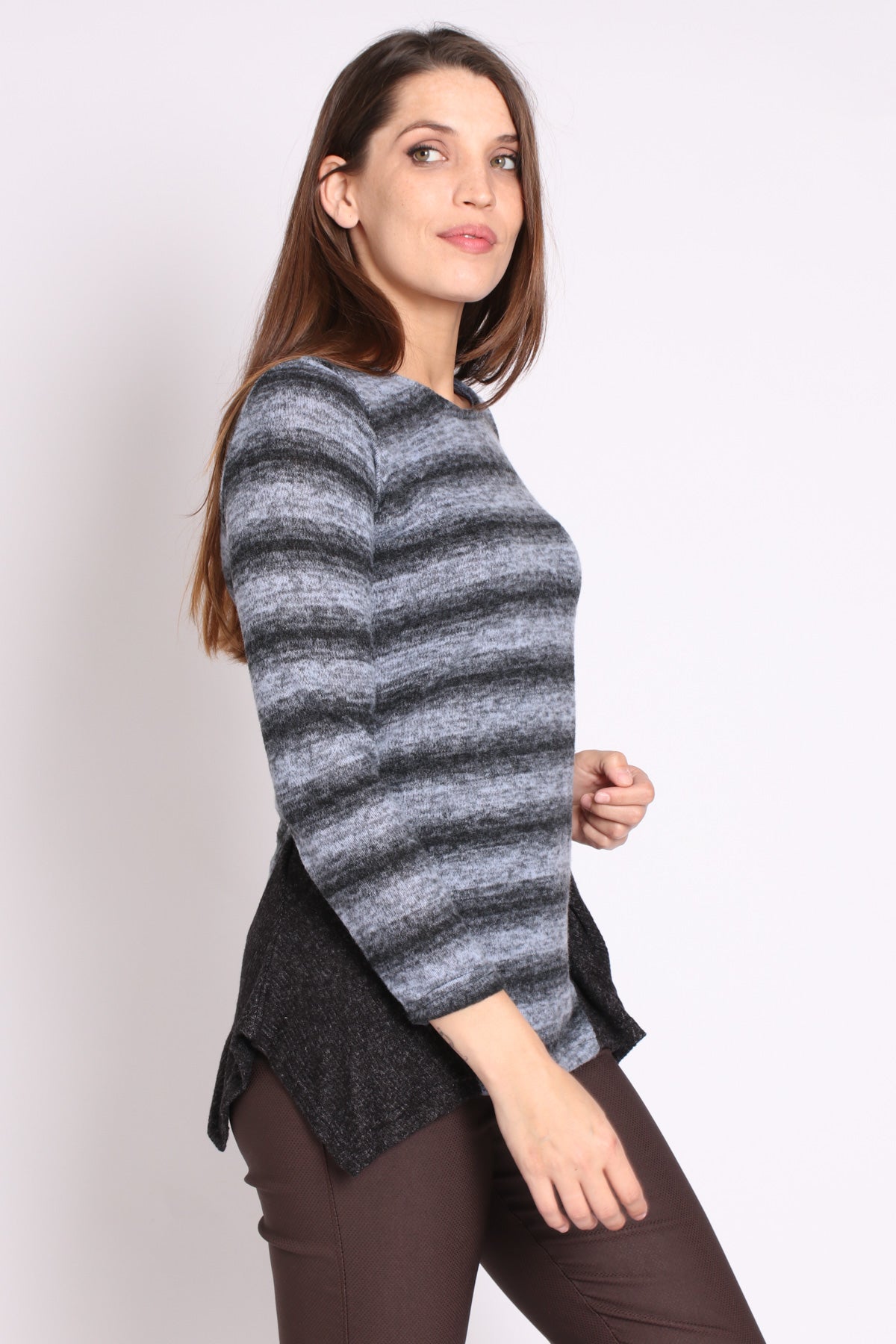 - חולצת סריג פסים בשילוב בד חלק בצדדים