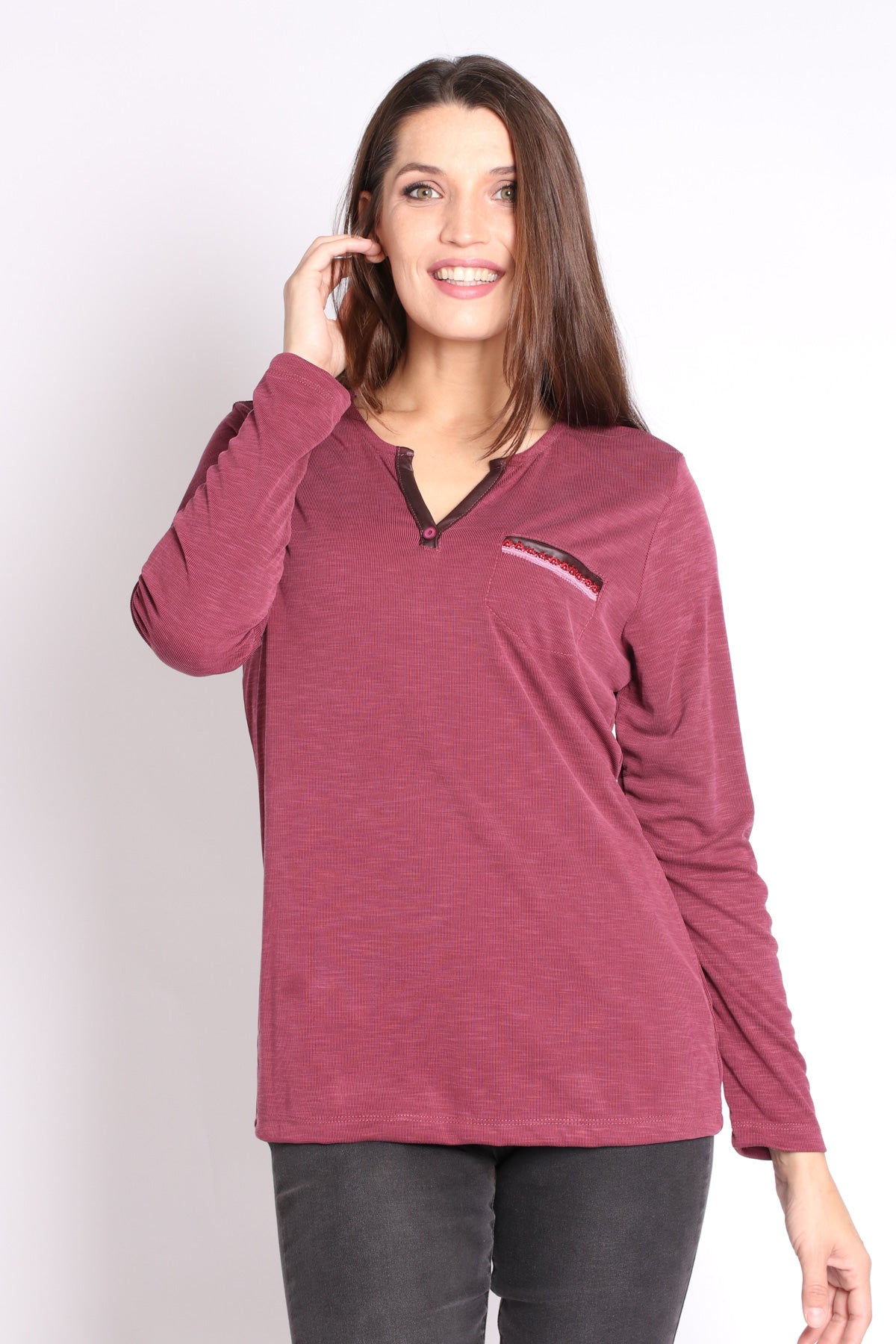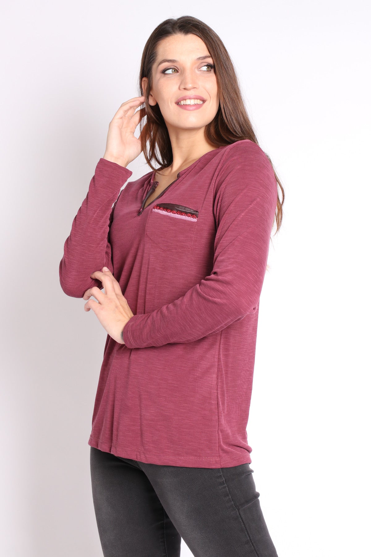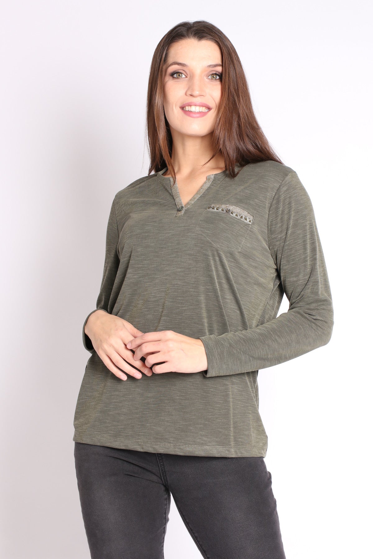 - חולצה ארוכת שרוולים מבד נעים עם כיס בצד ועיטור פנינים