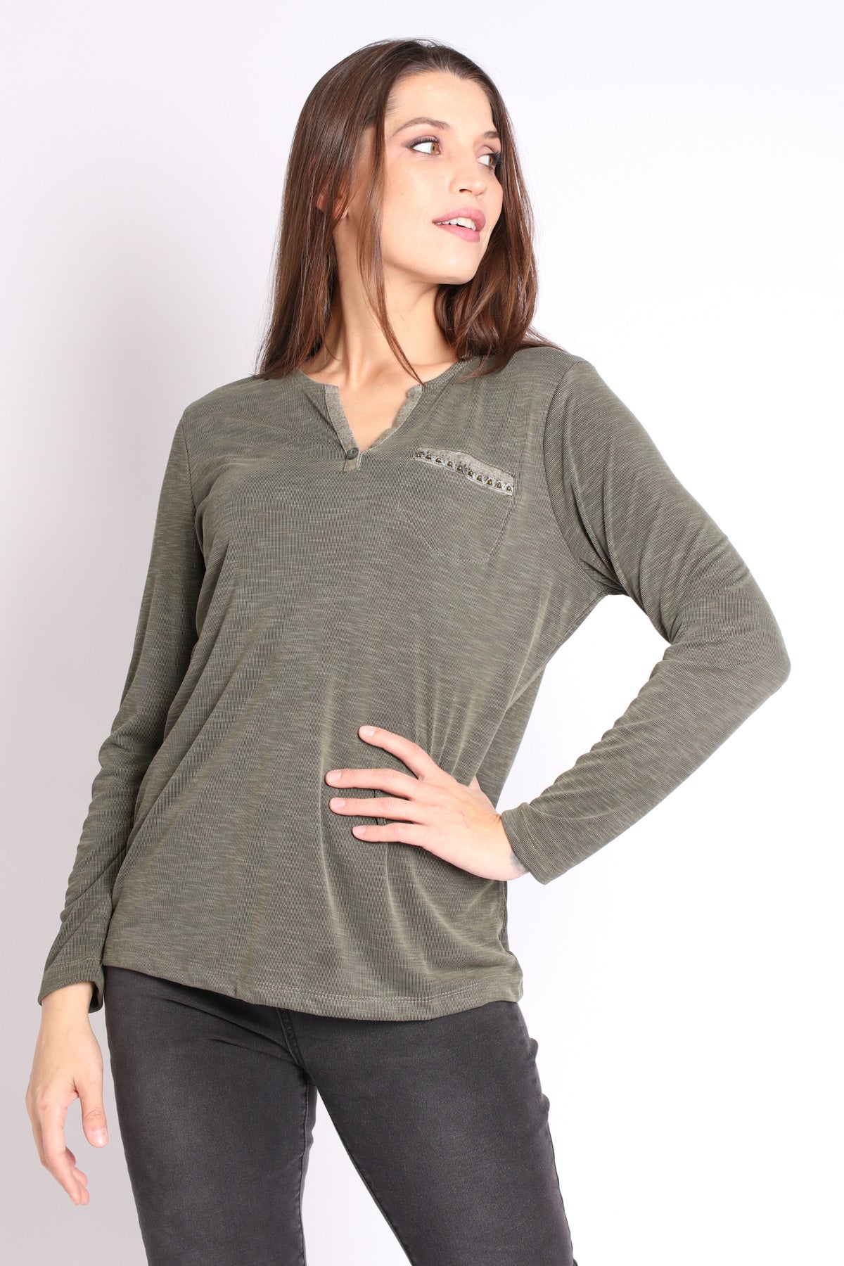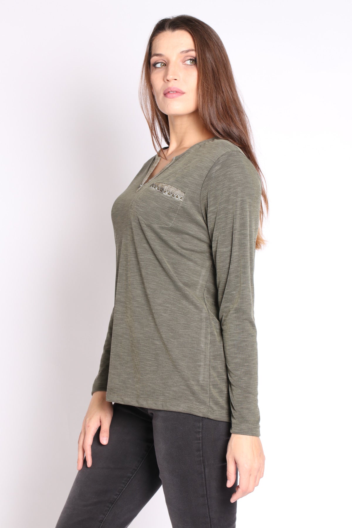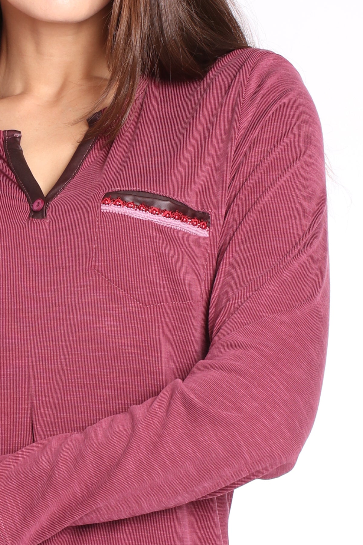 - חולצה ארוכת שרוולים מבד נעים עם כיס בצד ועיטור פנינים