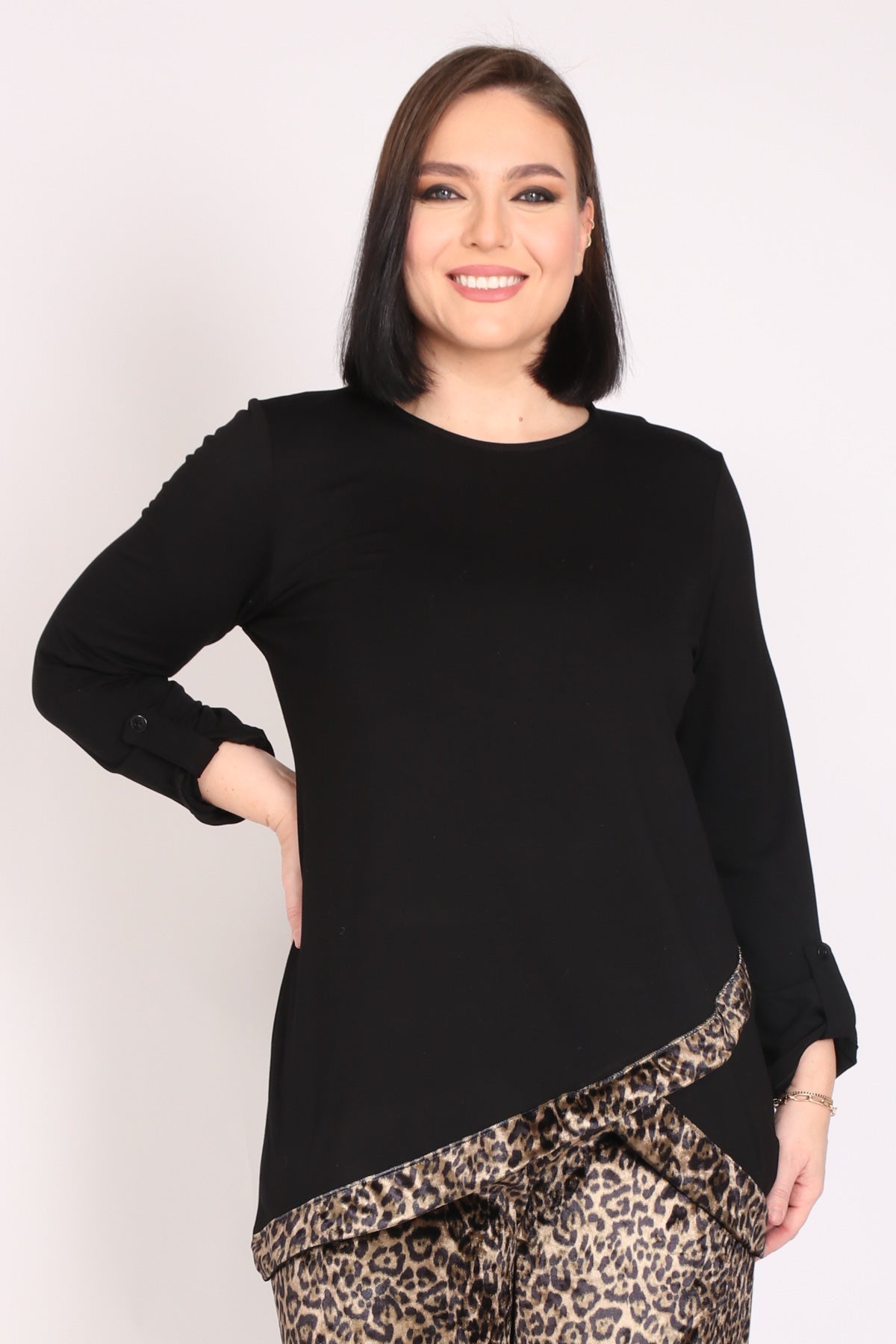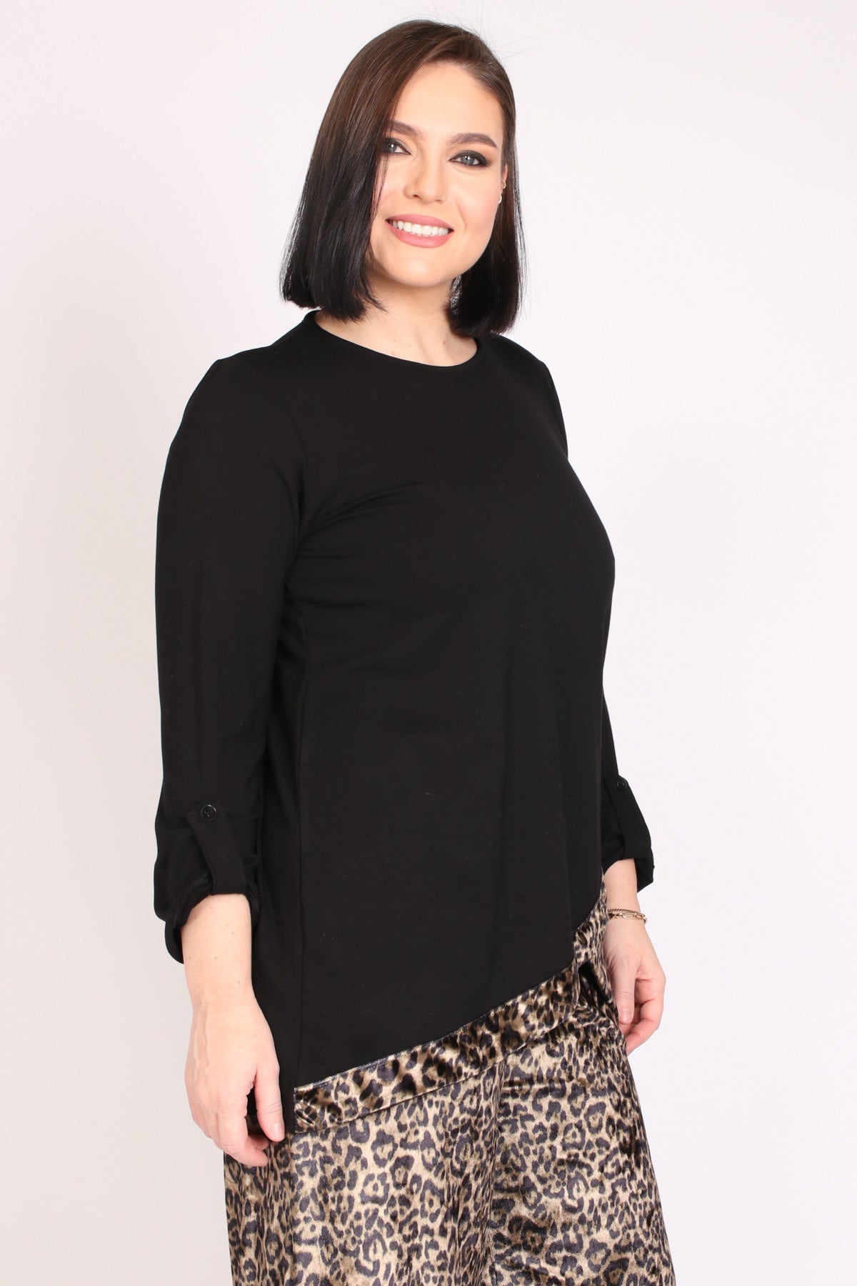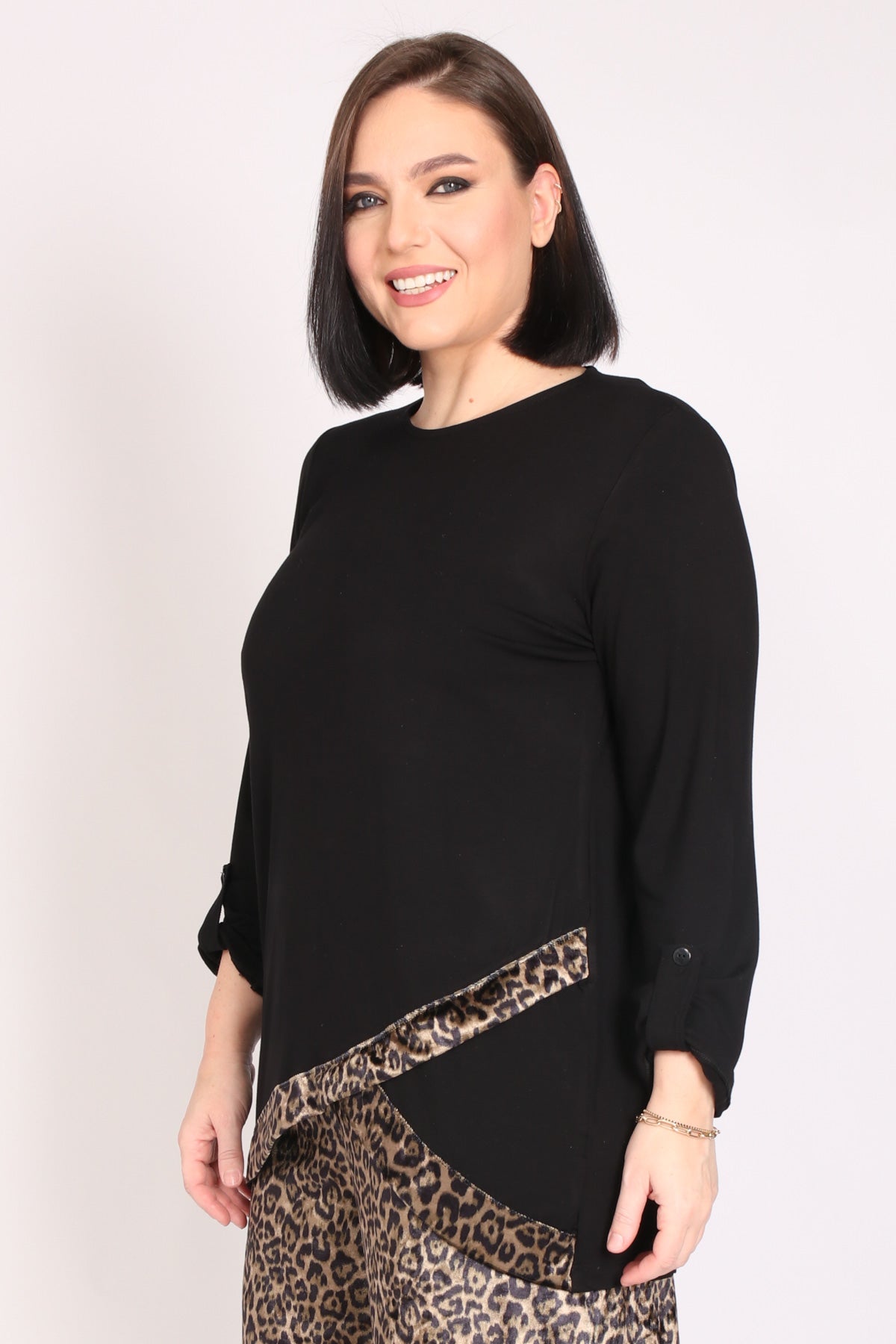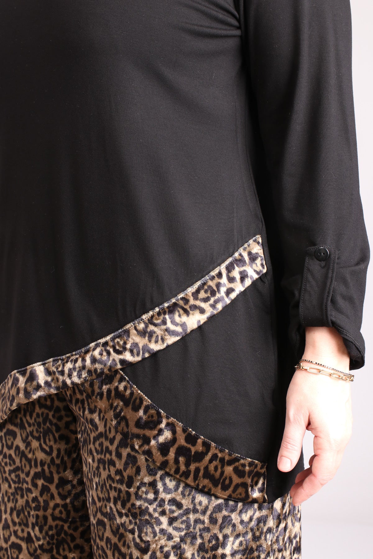 - טוניקה בסיומת א-סימטרית בסיומת מבד מנומר