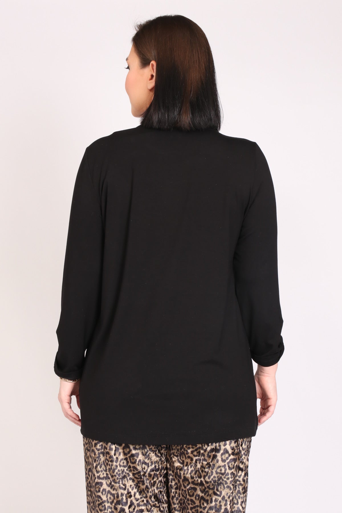 - שרוולים ארוכים עם סגירת שרוך וכפתור, מפתח צוואר עגול