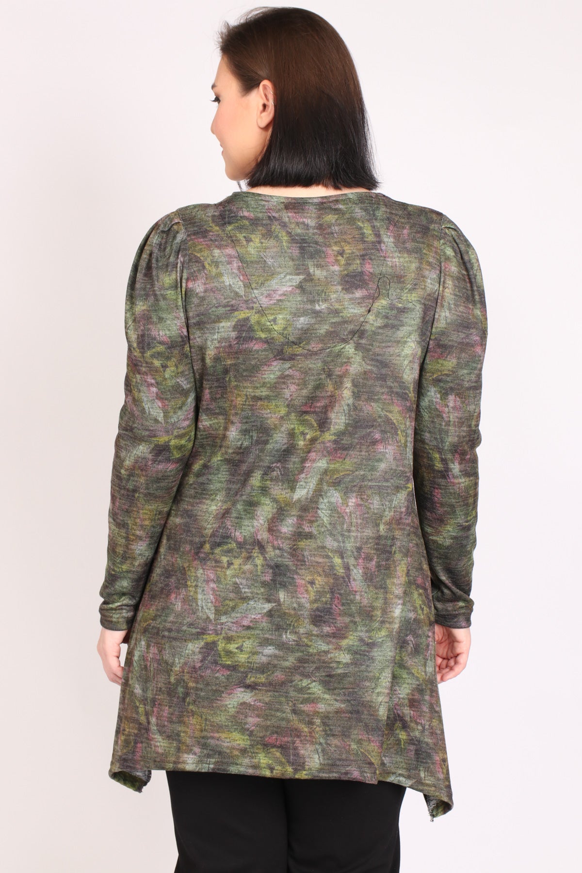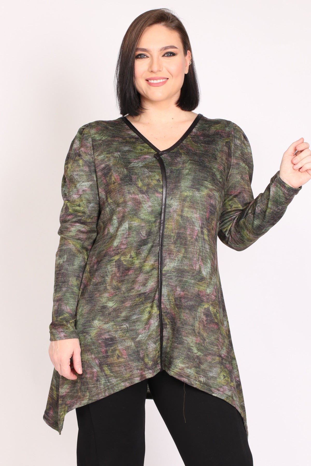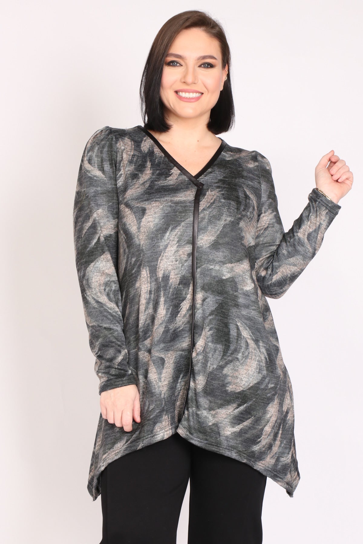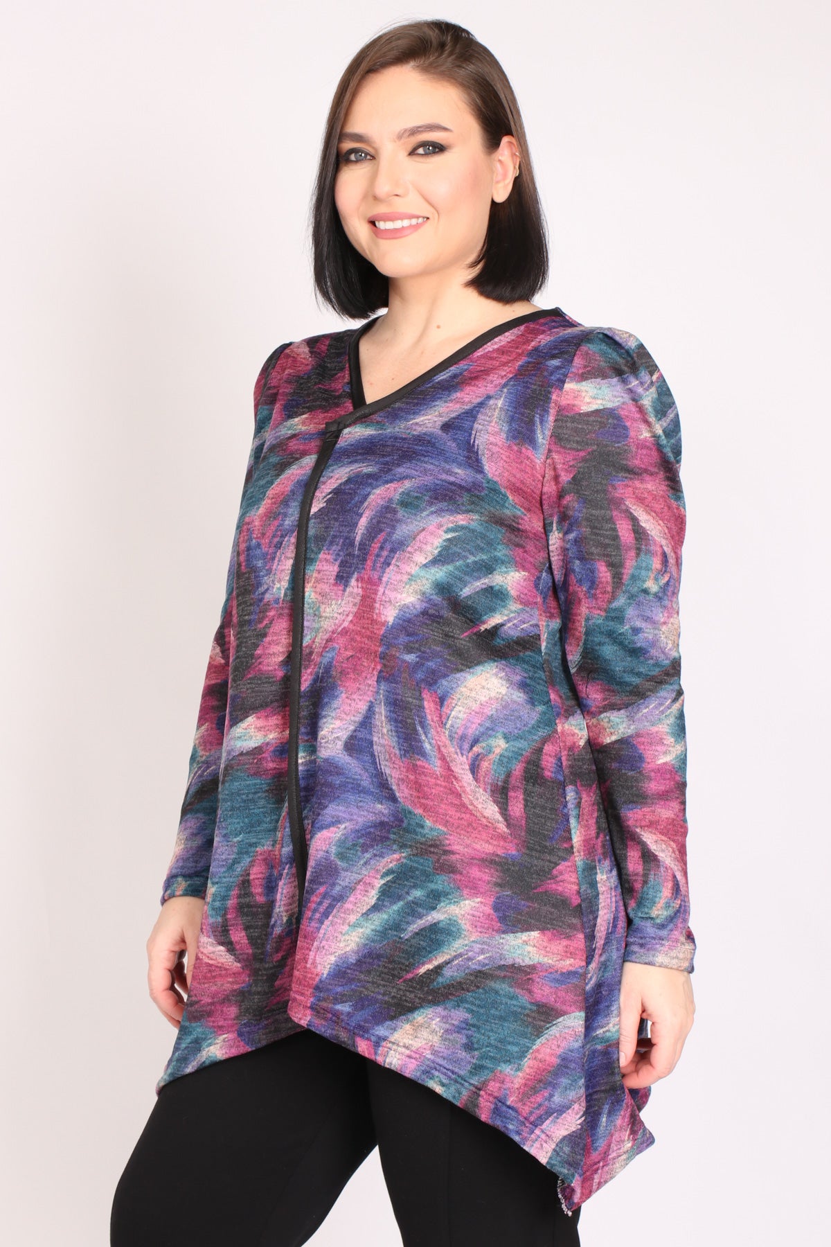• חולצת סריג מבד מודפס עם עיבוד בחיבור אלכסוני
