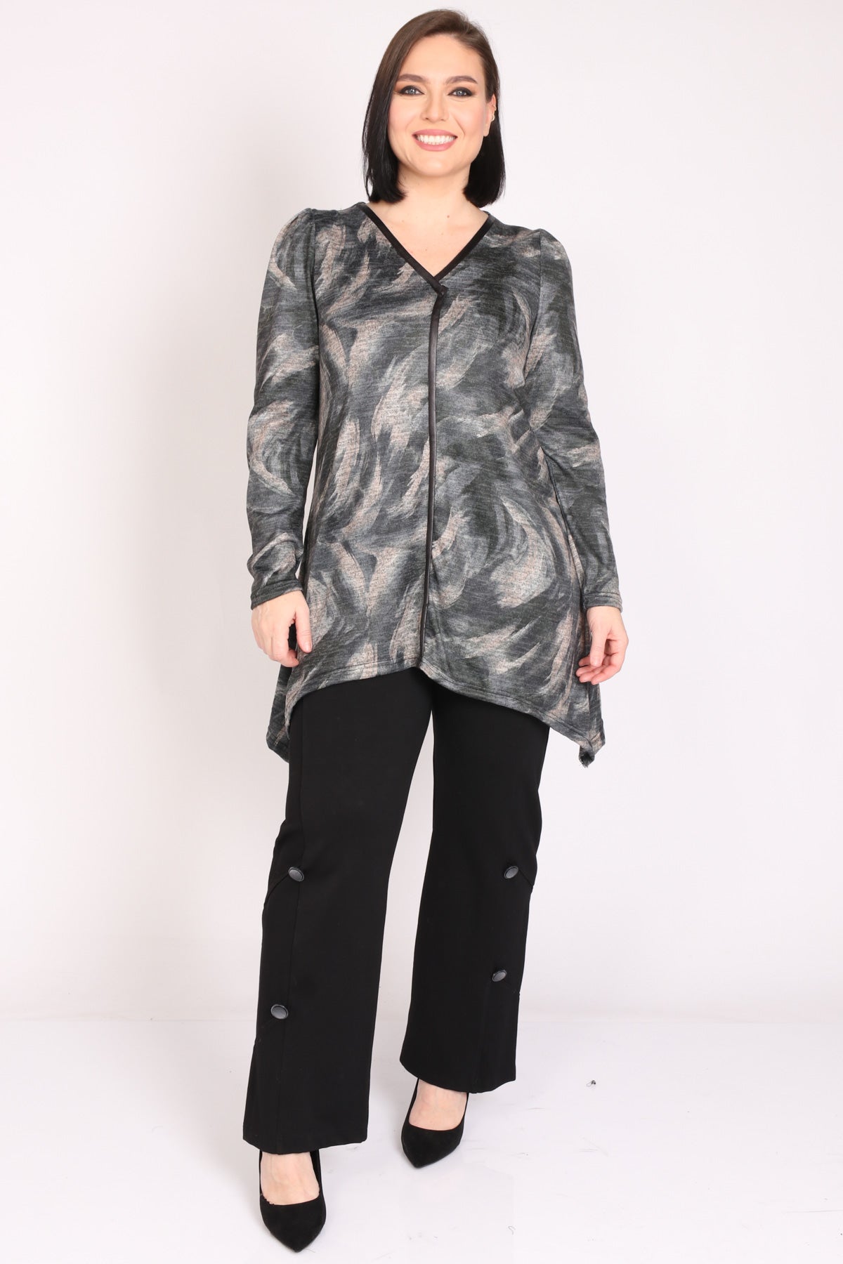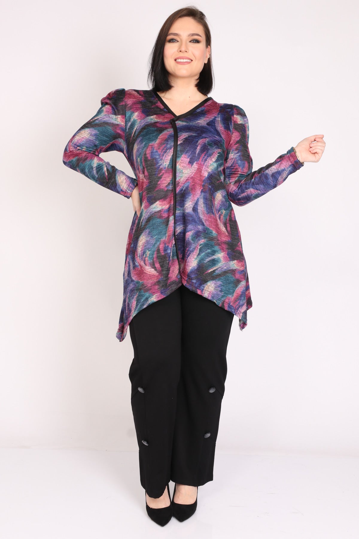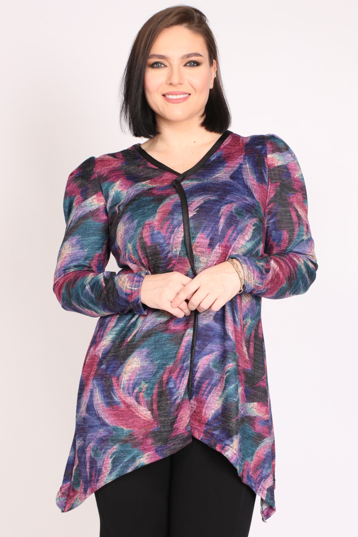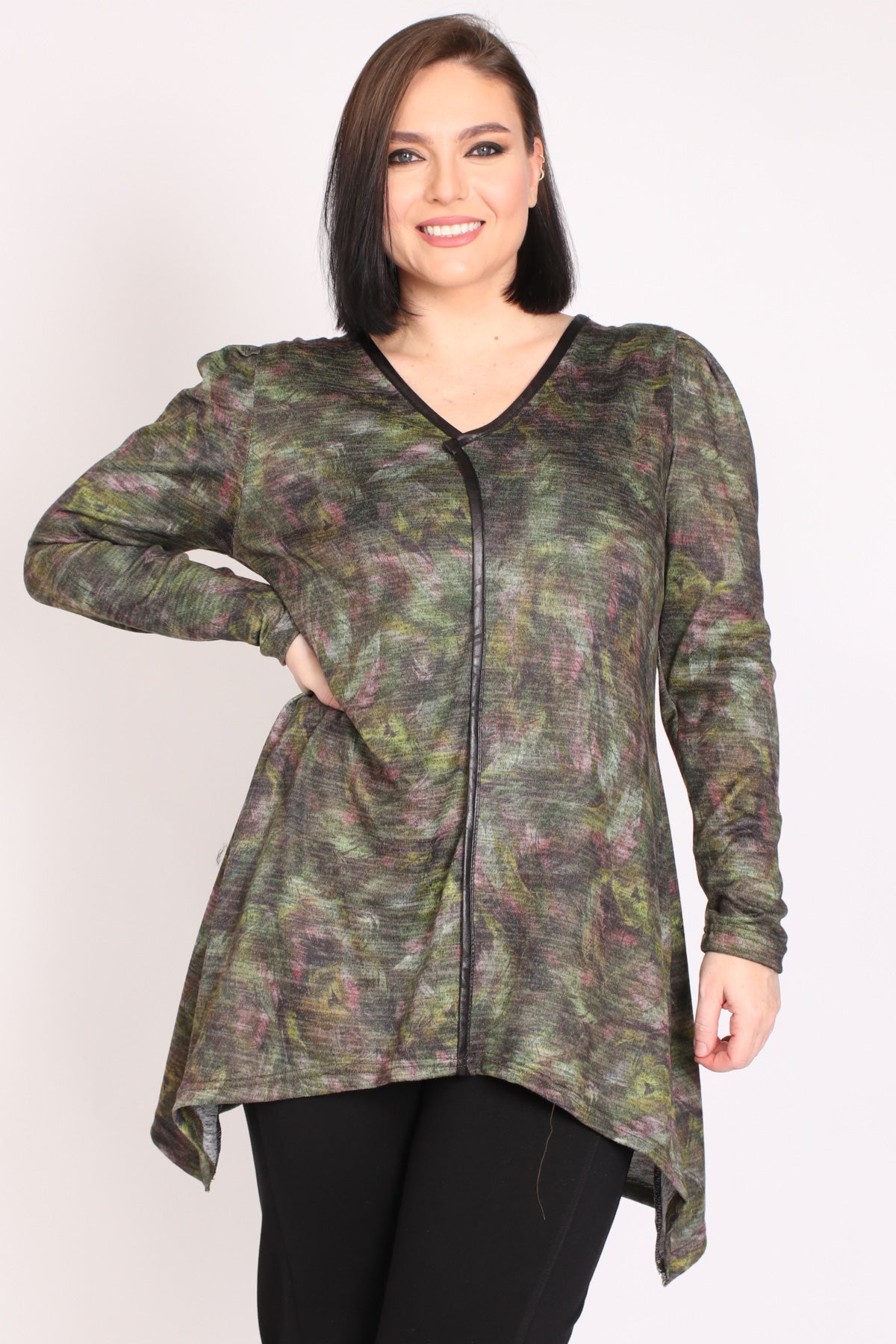 • חולצת סריג מבד מודפס עם עיבוד בחיבור אלכסוני