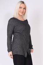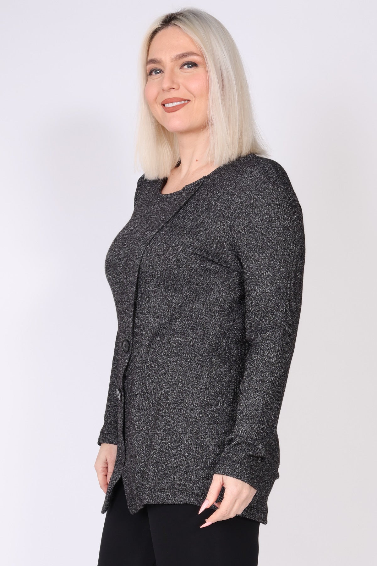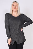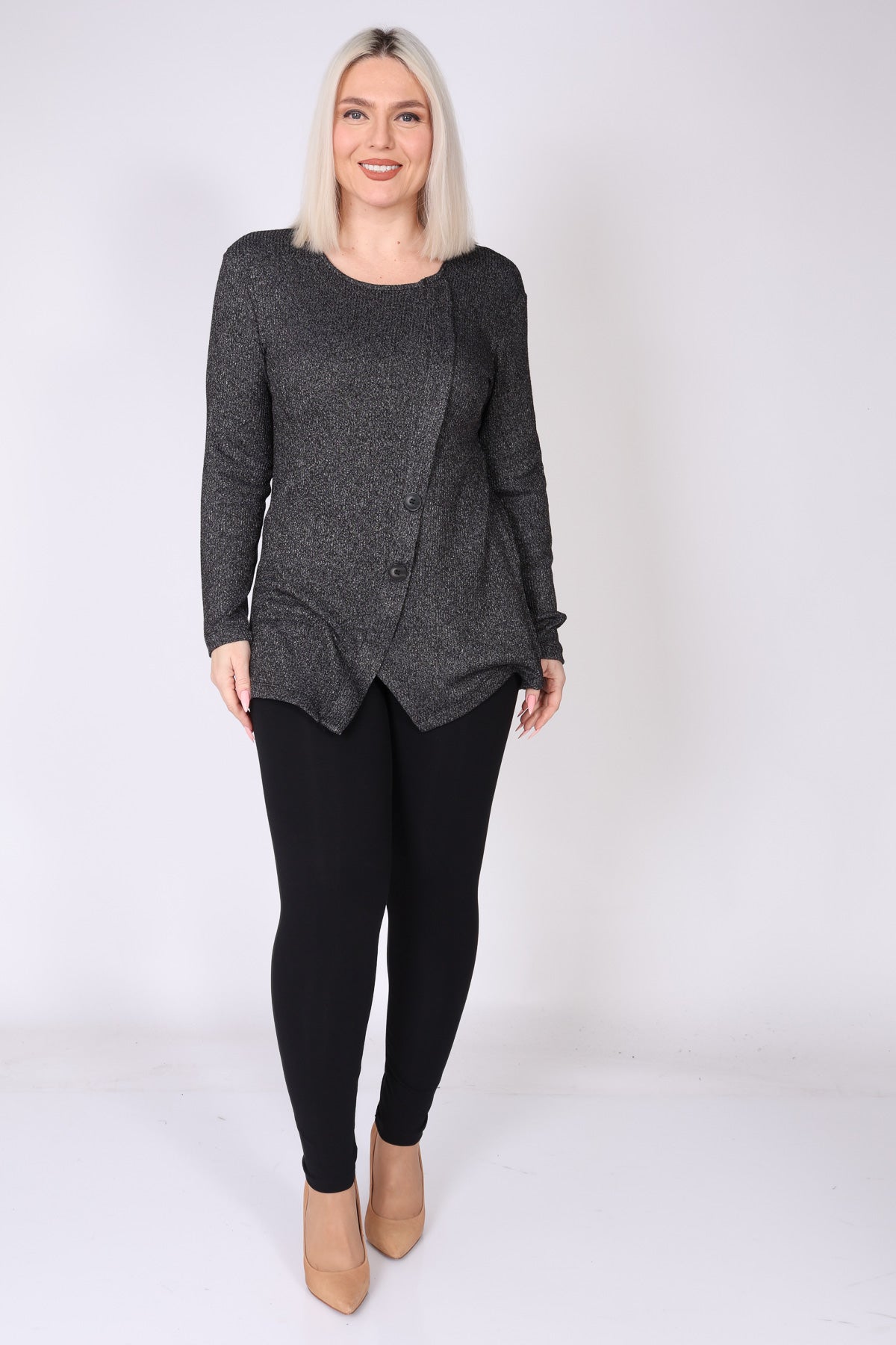 טוניקת סריג בסיומת א-סימטרית, עם שילוב כפתורים, שרוולים ארוכים ומפתח צוואר עגול. הגזרה המחוכמת והנפילה הייחודית של הטוניקה יוצרים מראה זורם ומחמיא, שמתאים גם לשילוב עם מכנס מחויט וגם עם פריט קז’ואל.