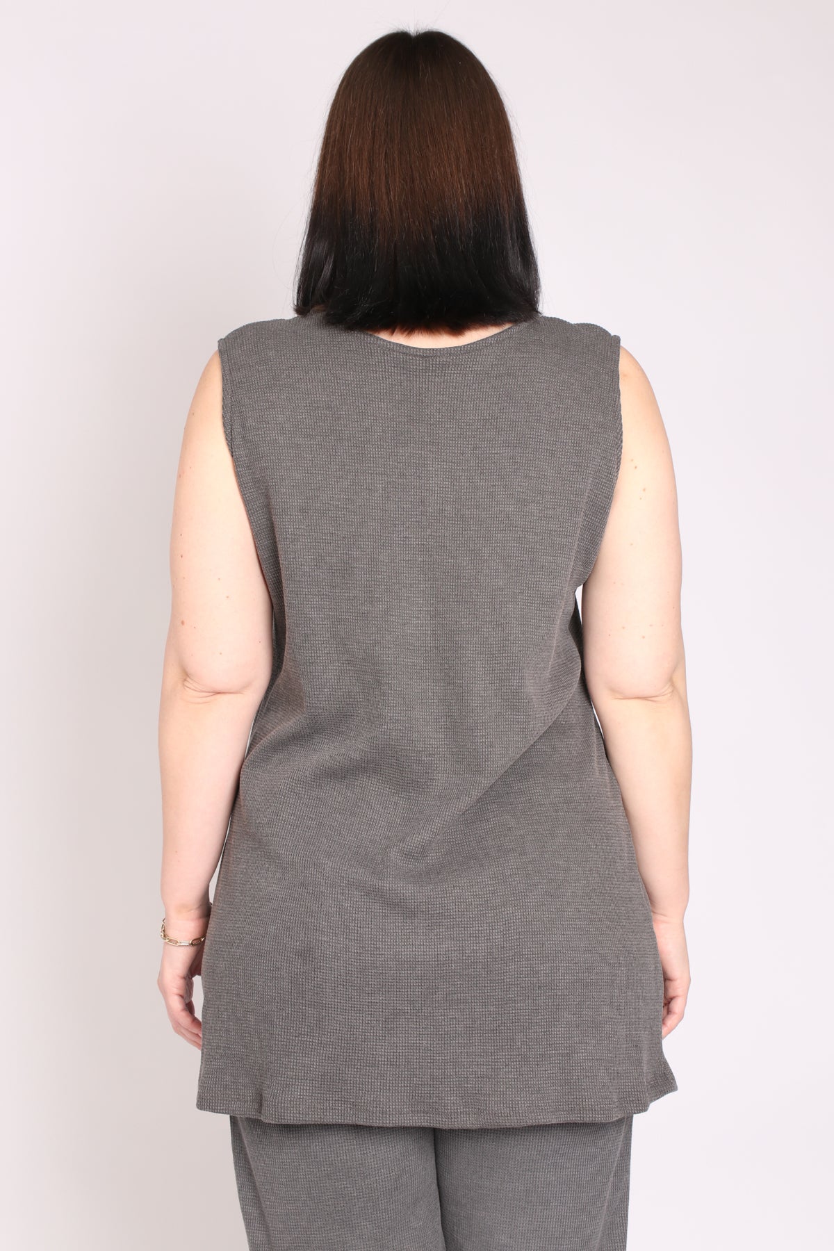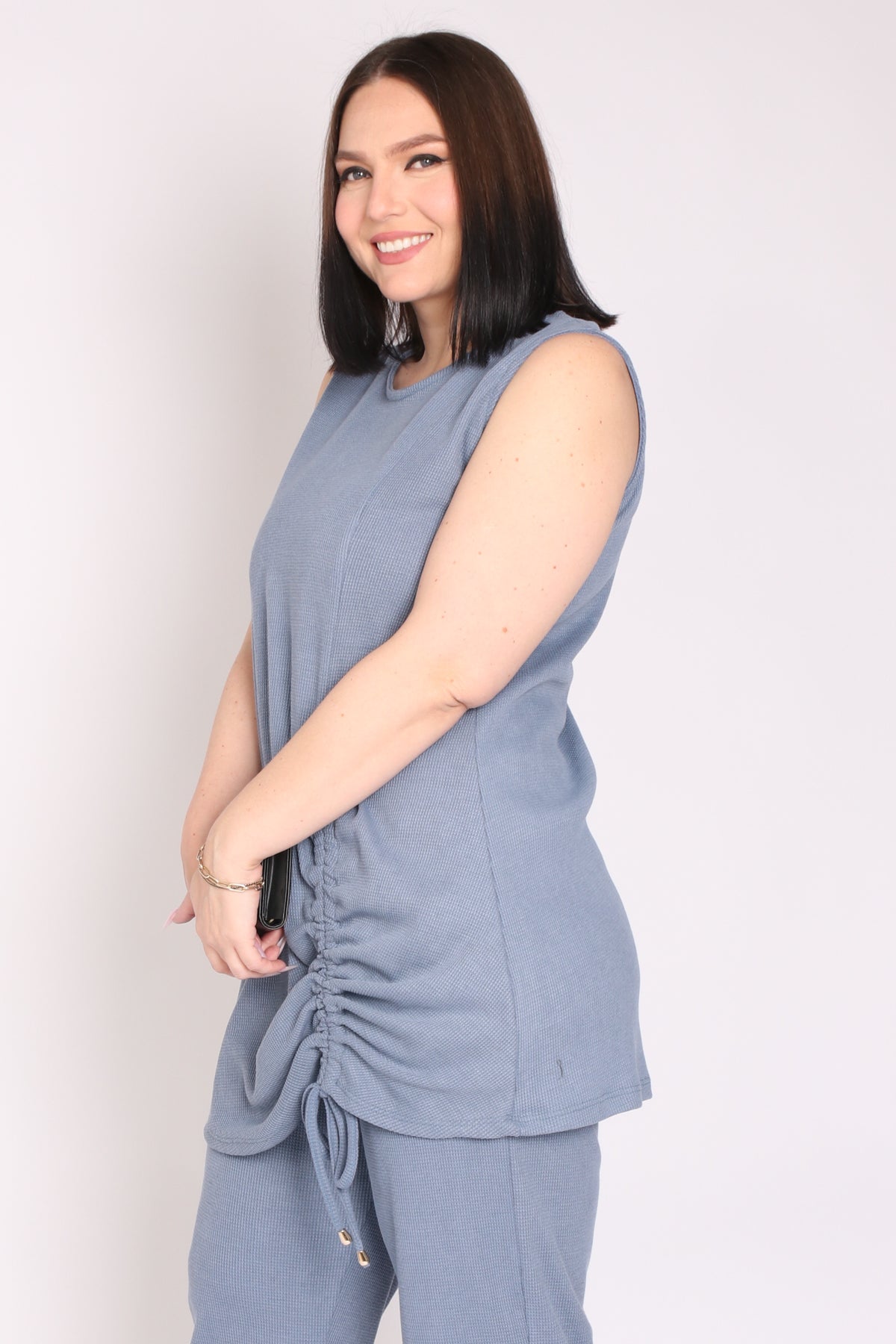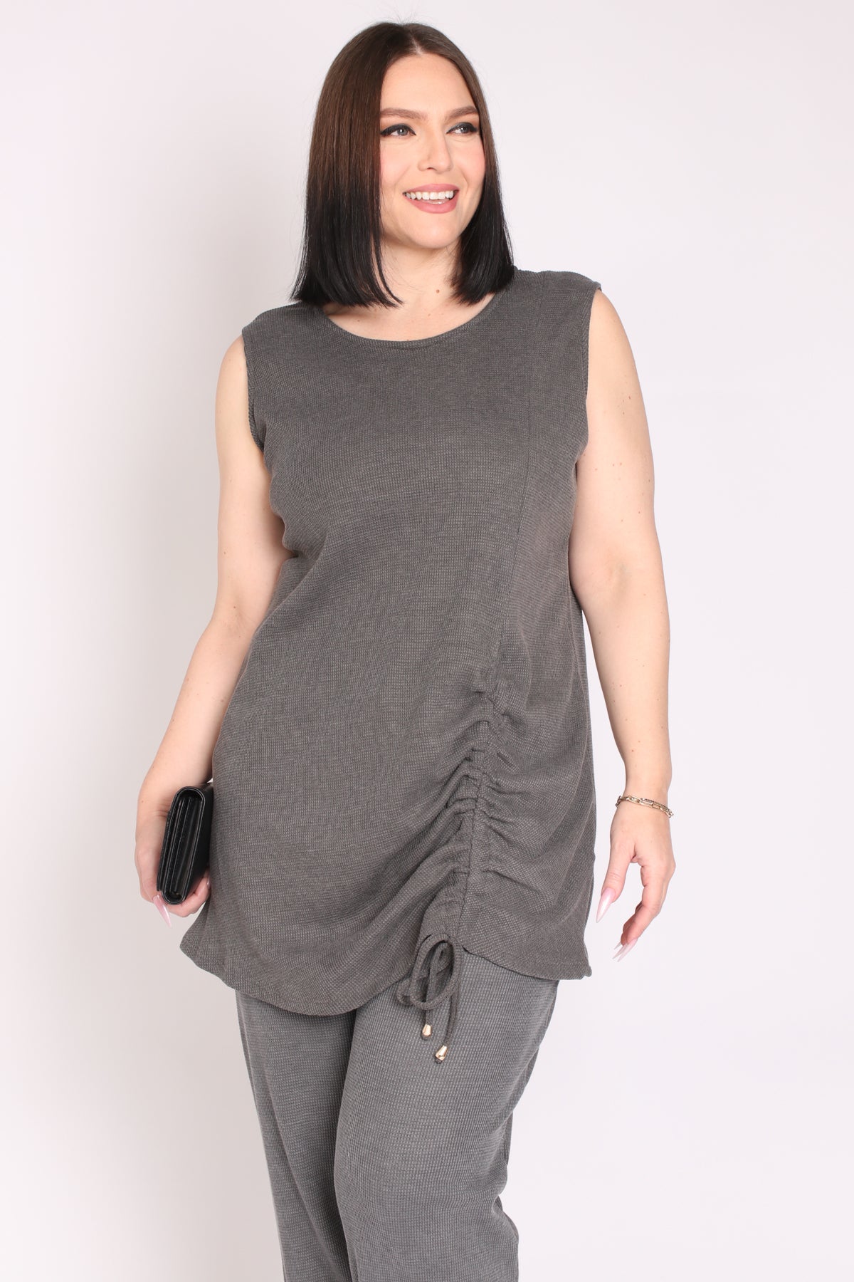 - גופייה בגזרה ארוכה מבד וופל עם כיווץ בצד אחד