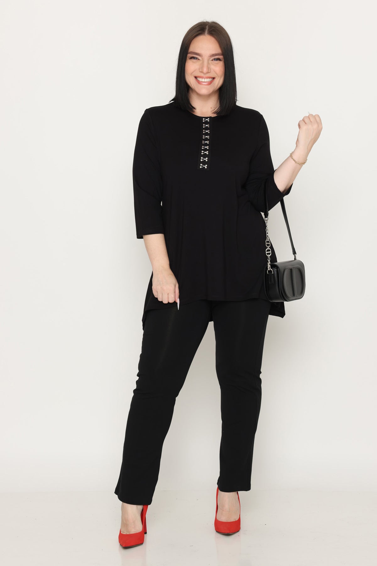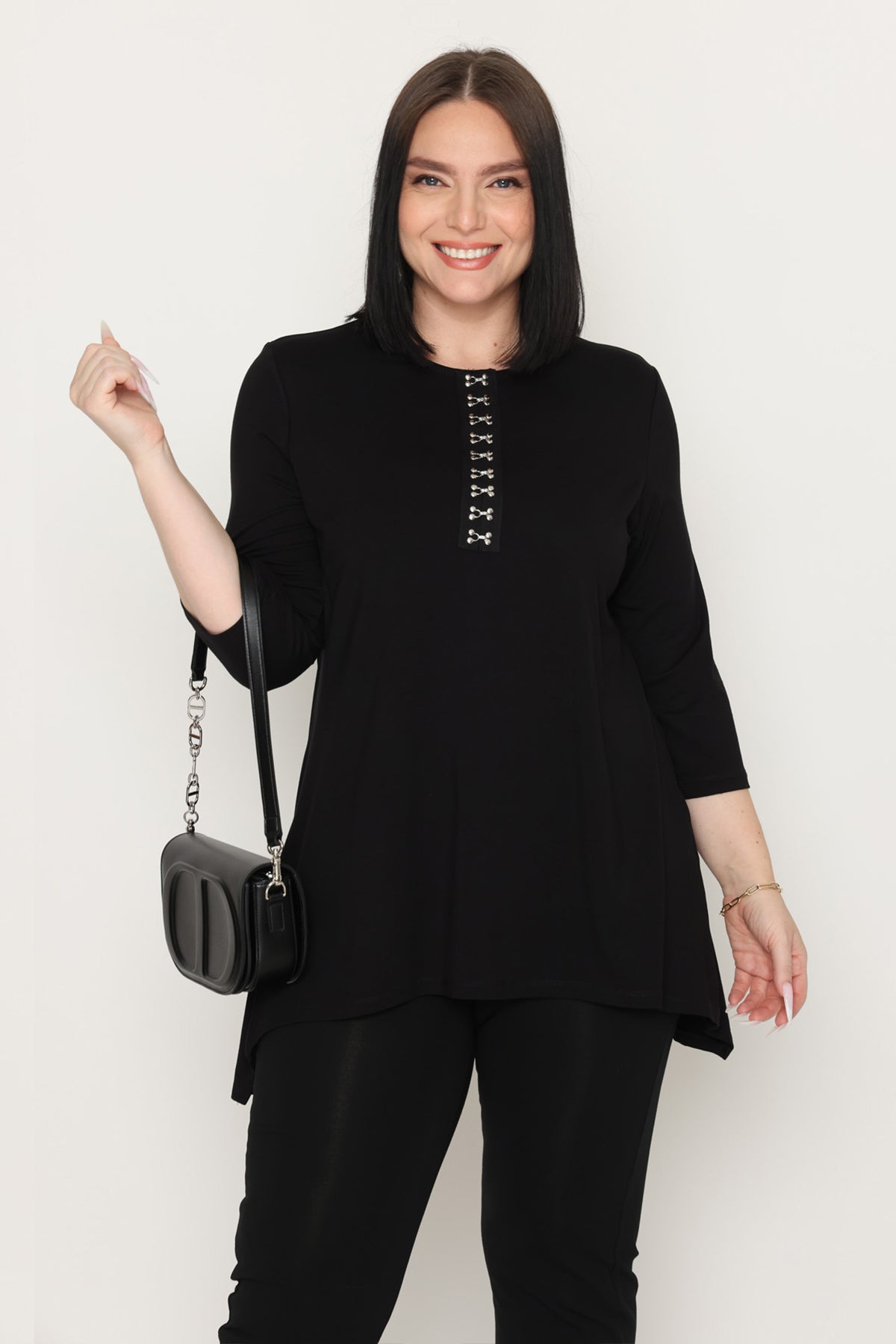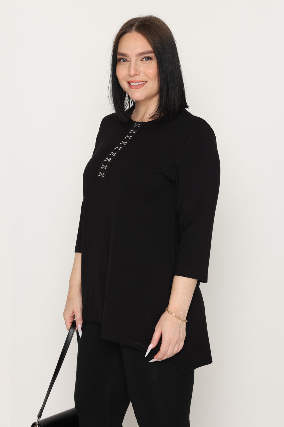 - טוניקה בגזרת A עם עיטור ניטים בקו החזה