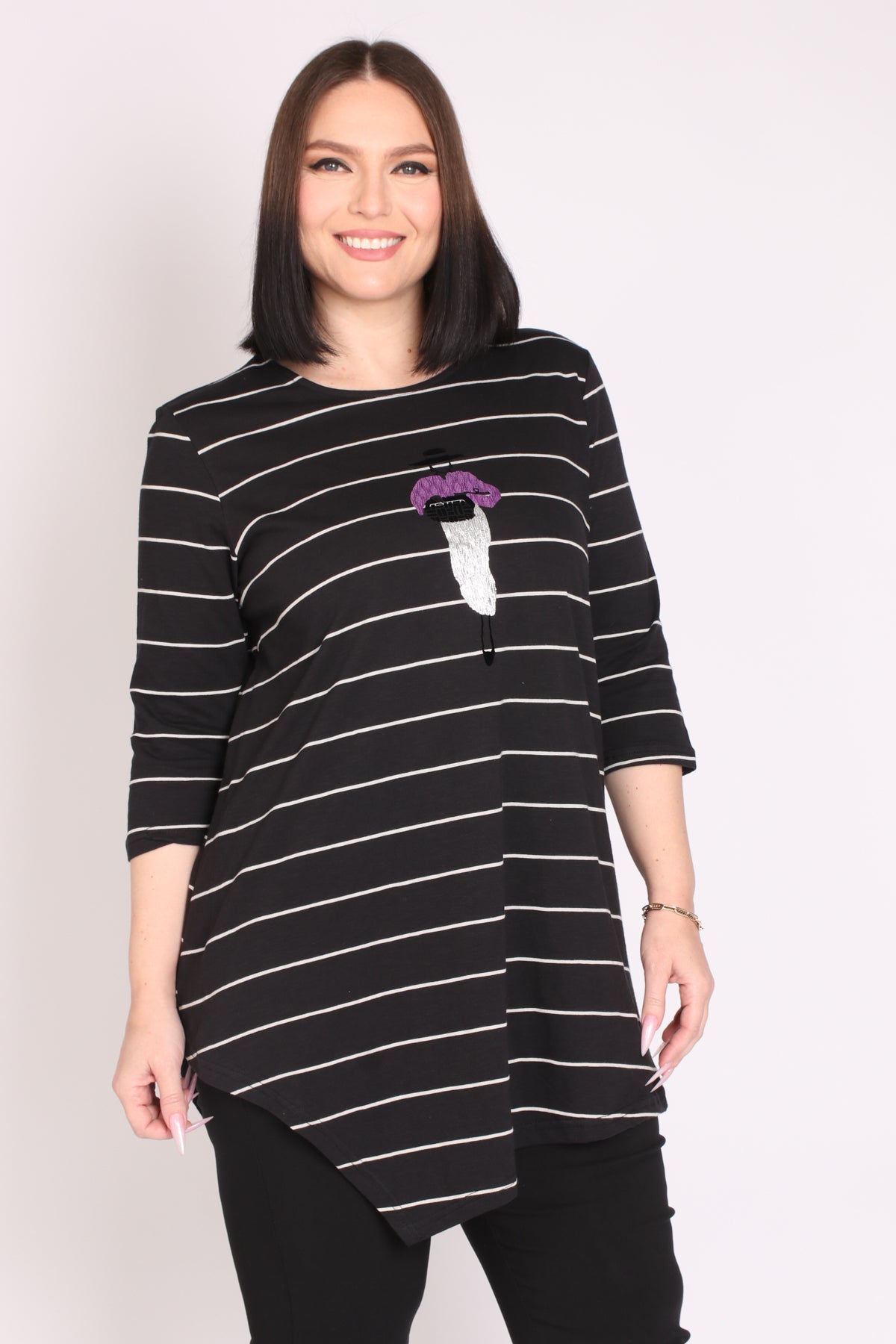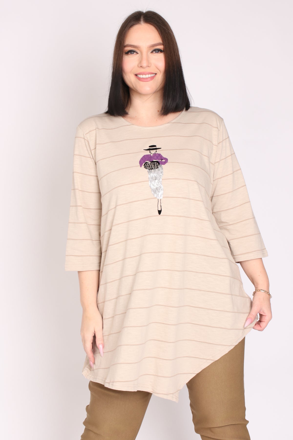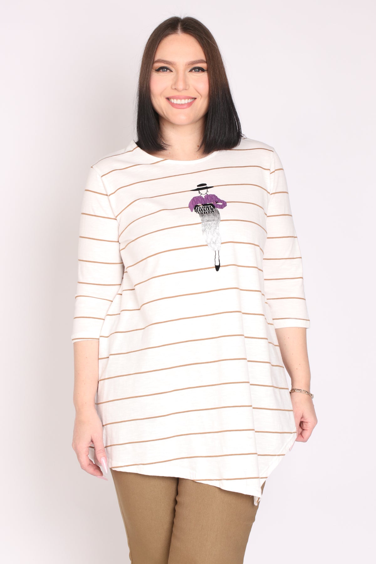 • טוניקת פסים עם דפוס מרכזי של דמות אישה