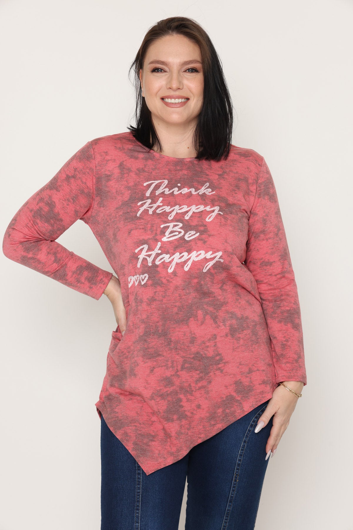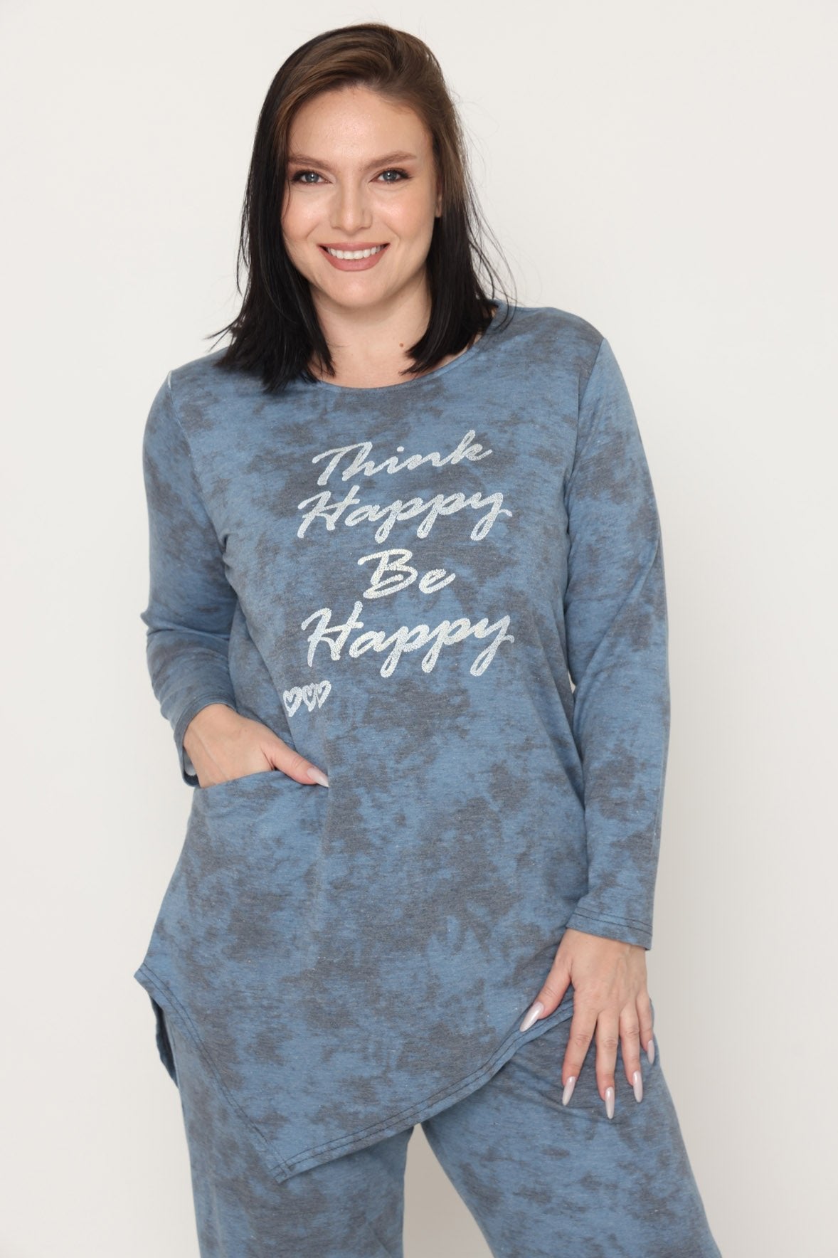- כיתוב בחלק הקדמי, מפתח צוואר עגול ושרוולים ארוכים