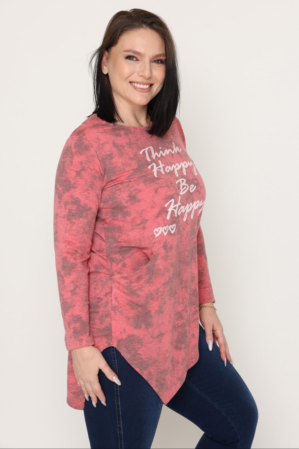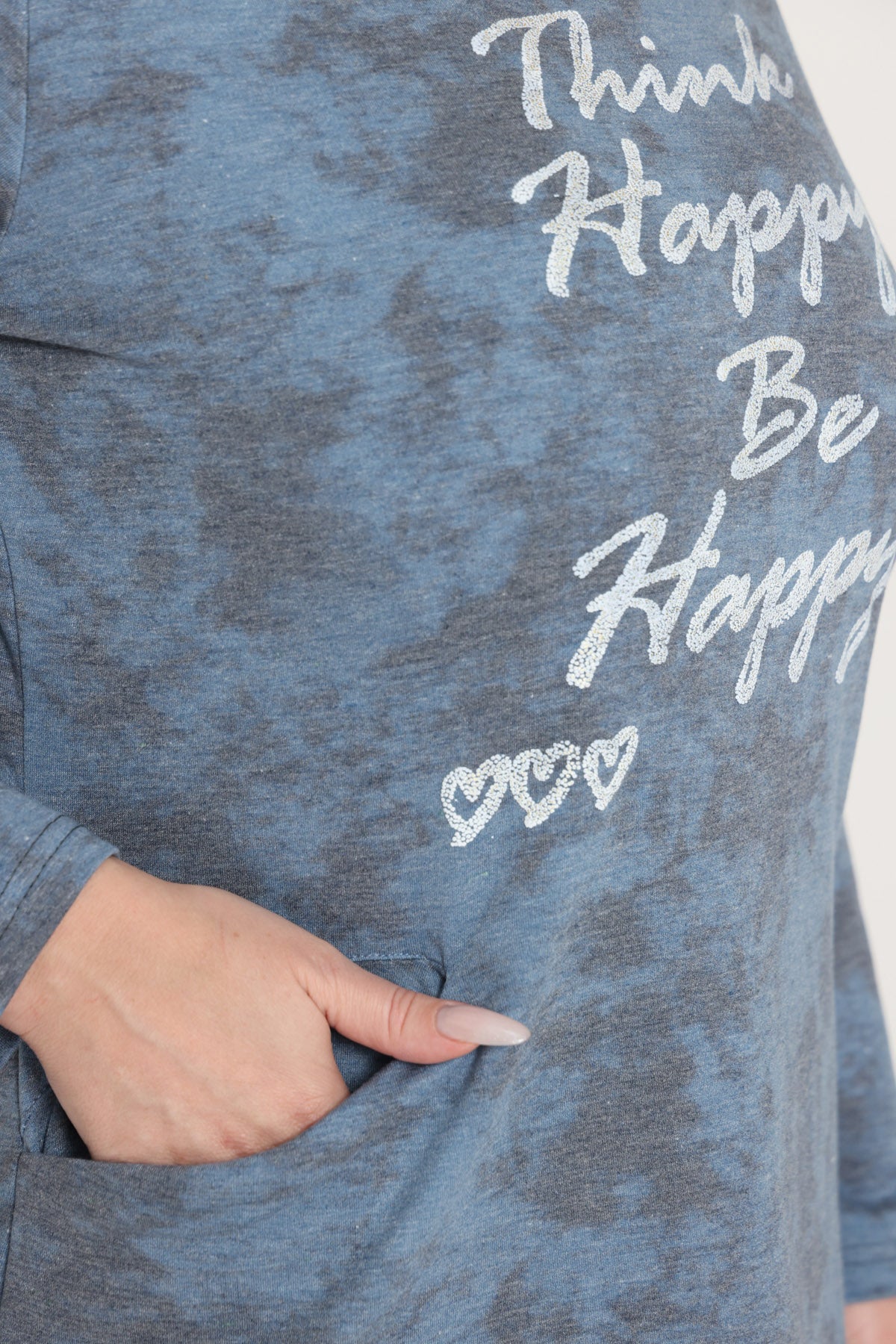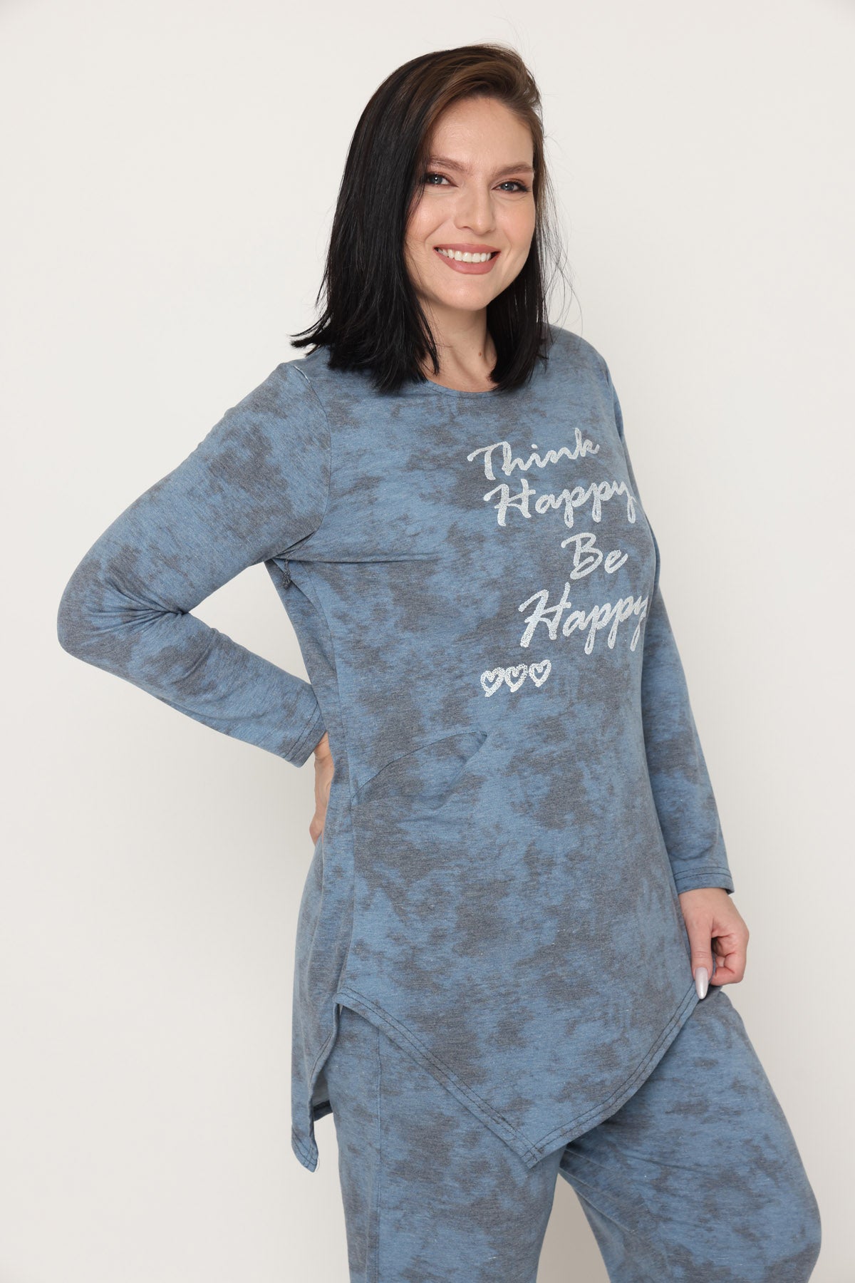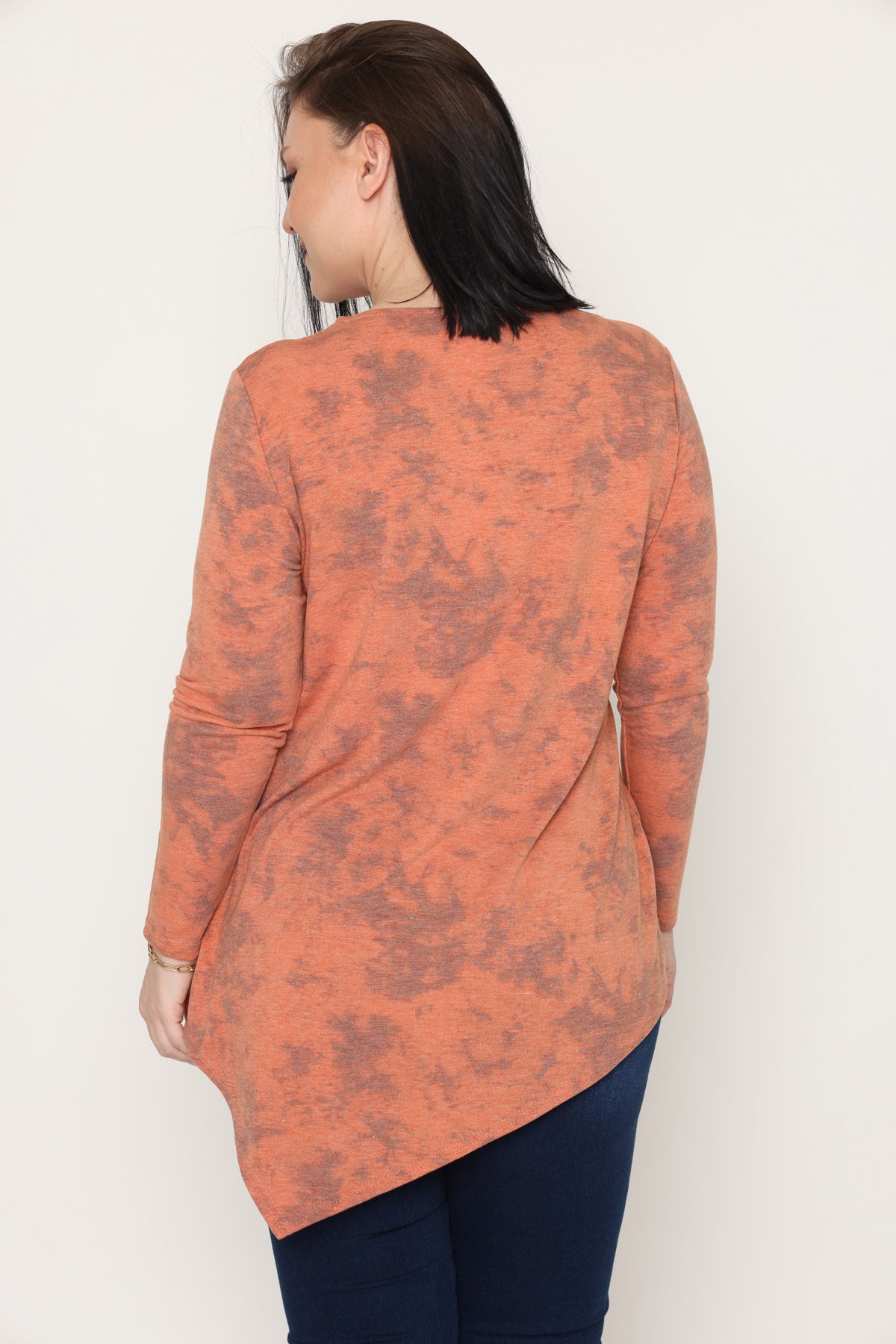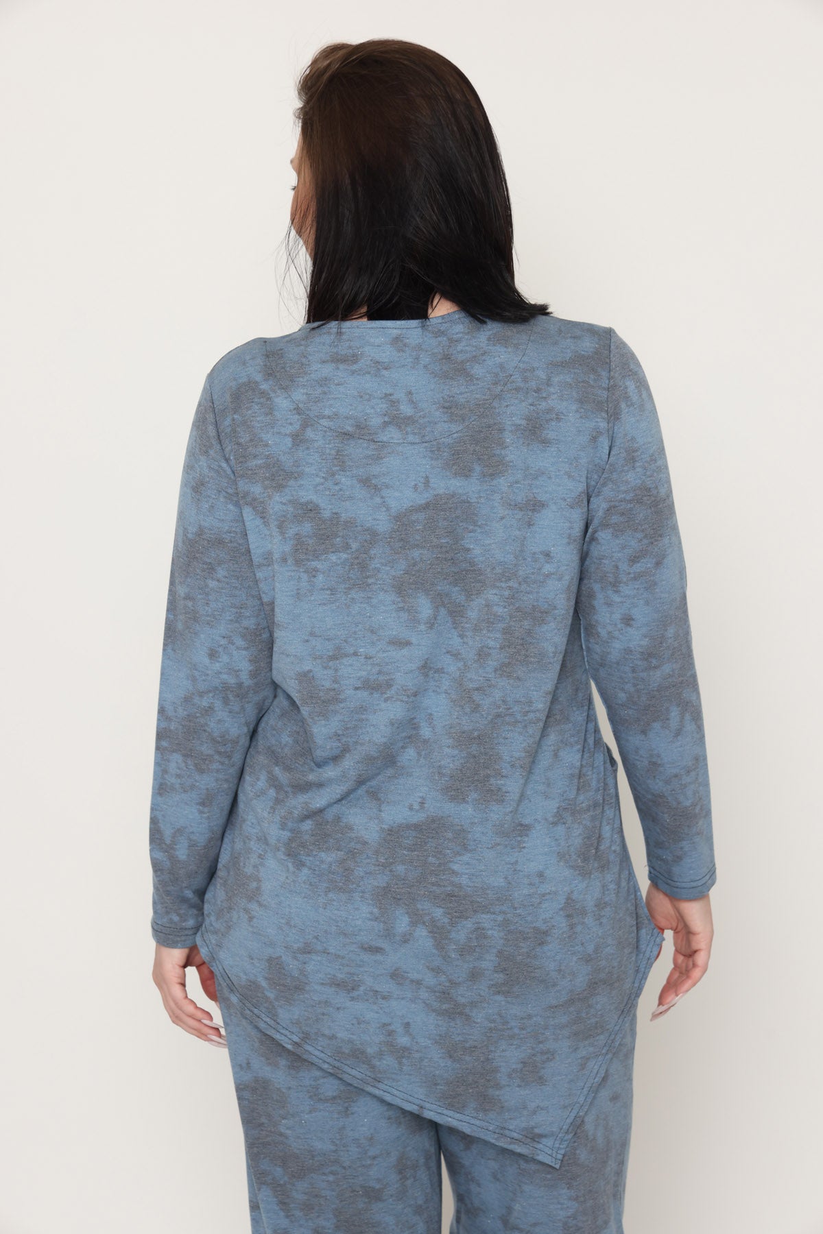 - טוניקה בסיומת א-סימטרית וכיס בודד מבד פרנץ' טרי בדפוס טאי-דאי
