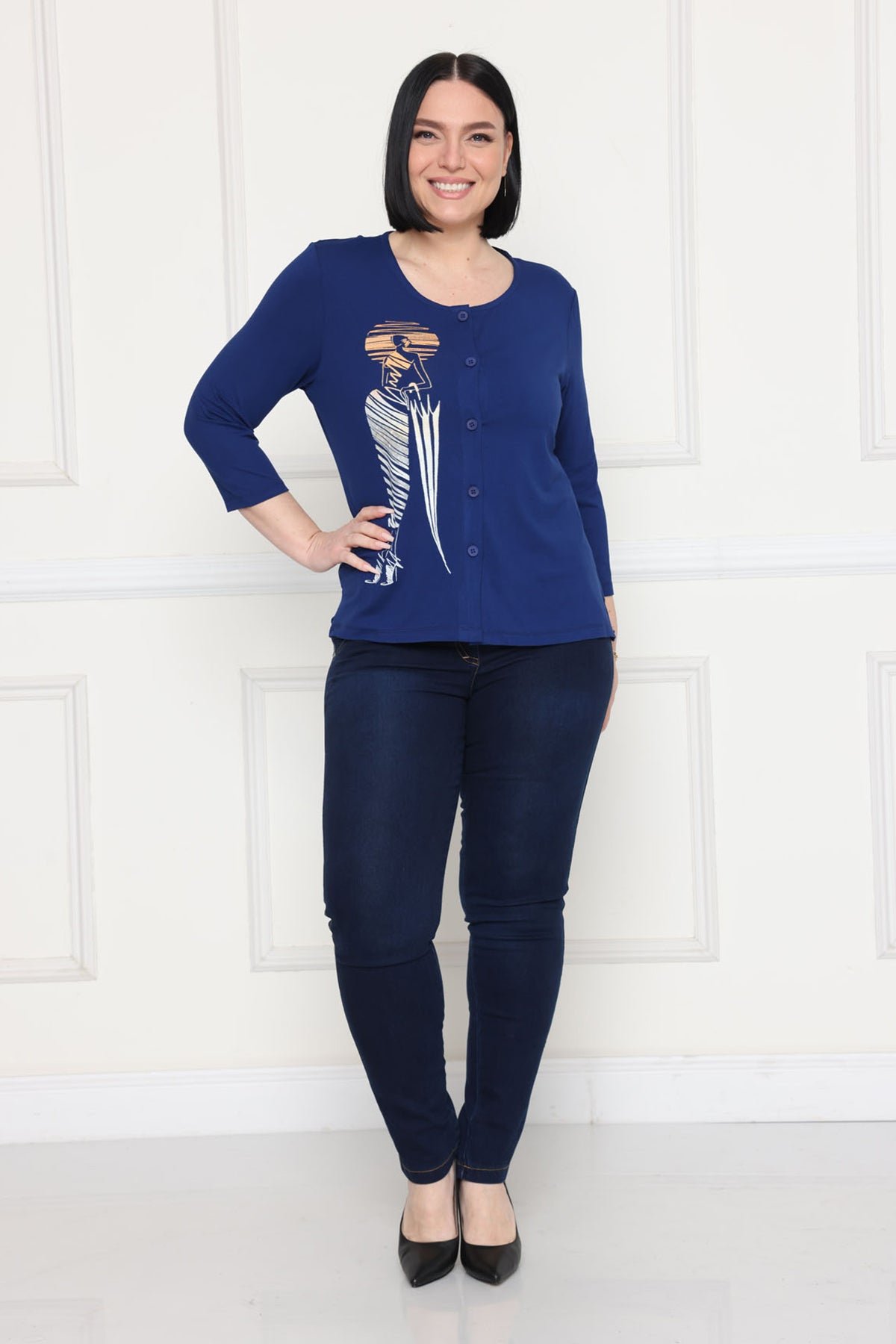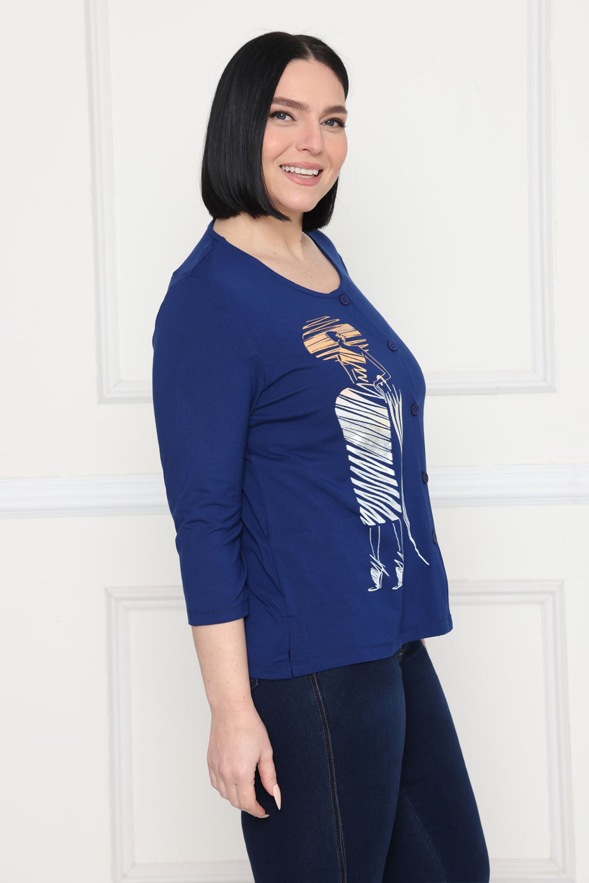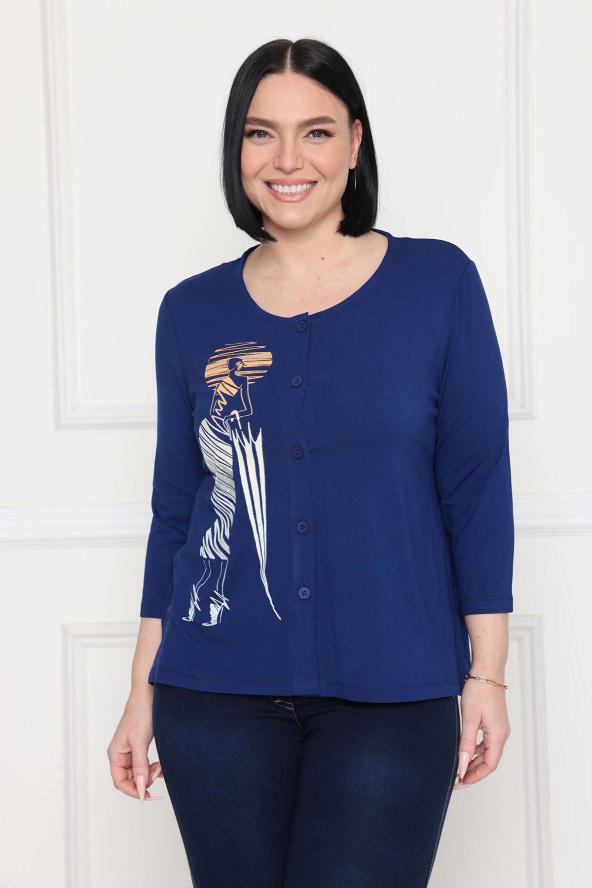 - עליונית מכופתרת עם דפוס אופנתי בצד אחד