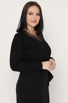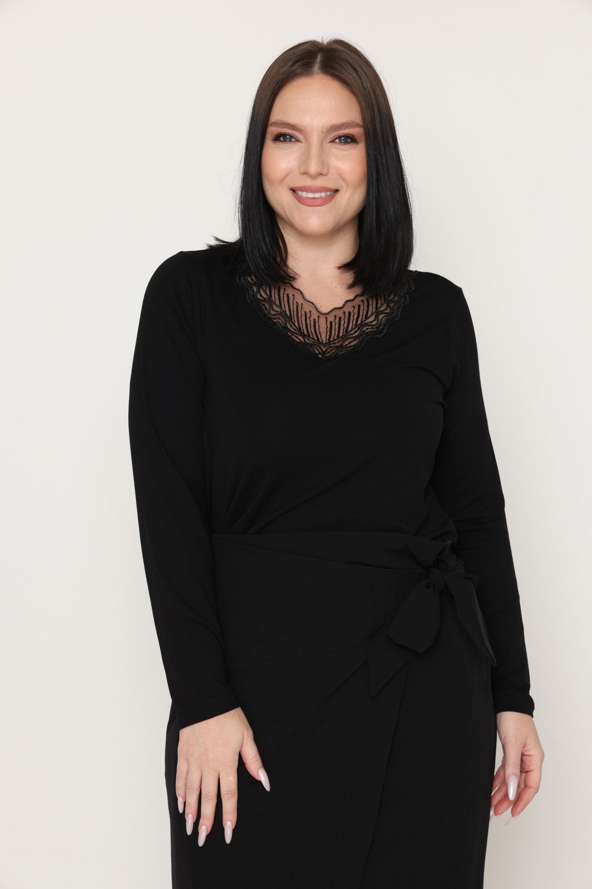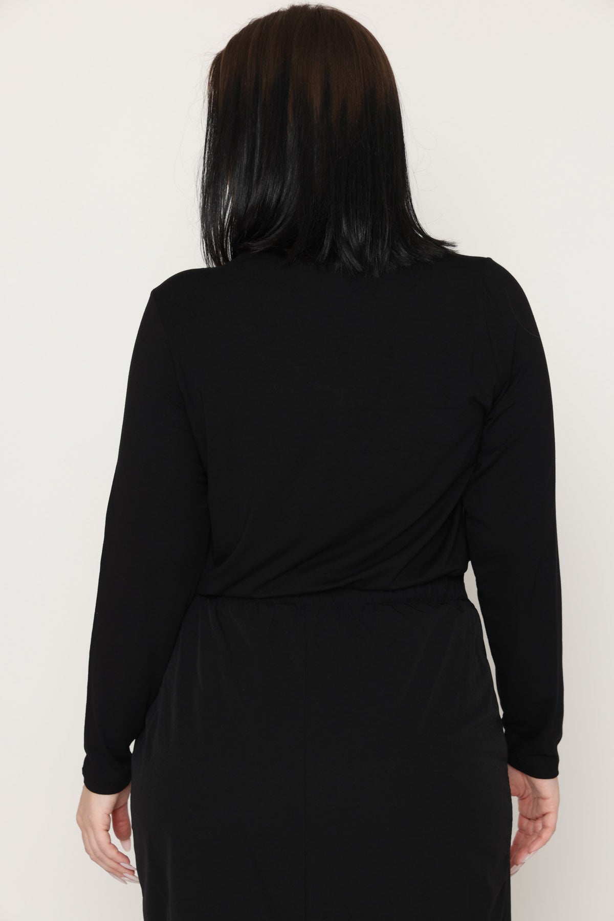 - מפתח צוואר וי ושרוולים ארוכים