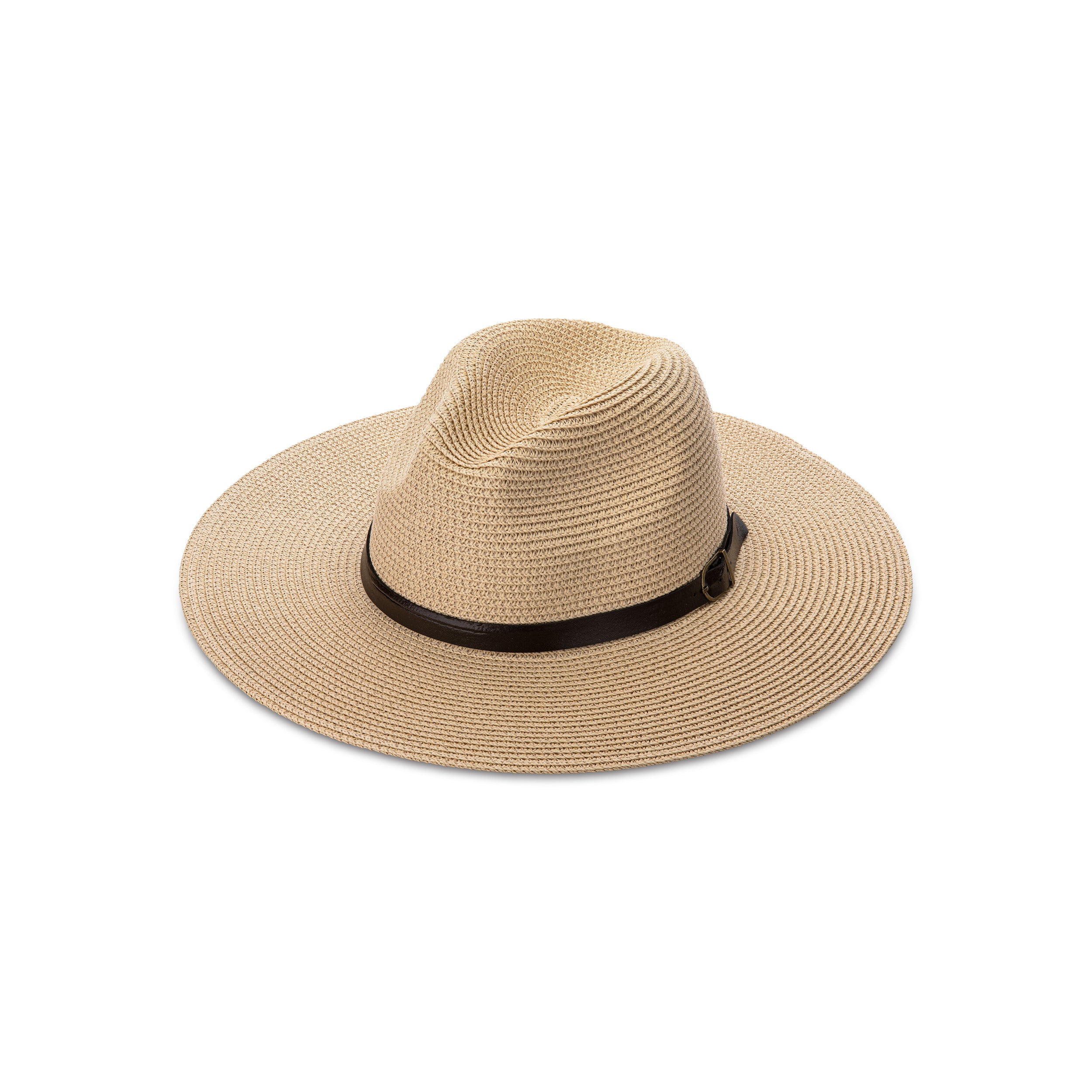 כובע רחב שוליים עם עיטור של פס עם אבזם