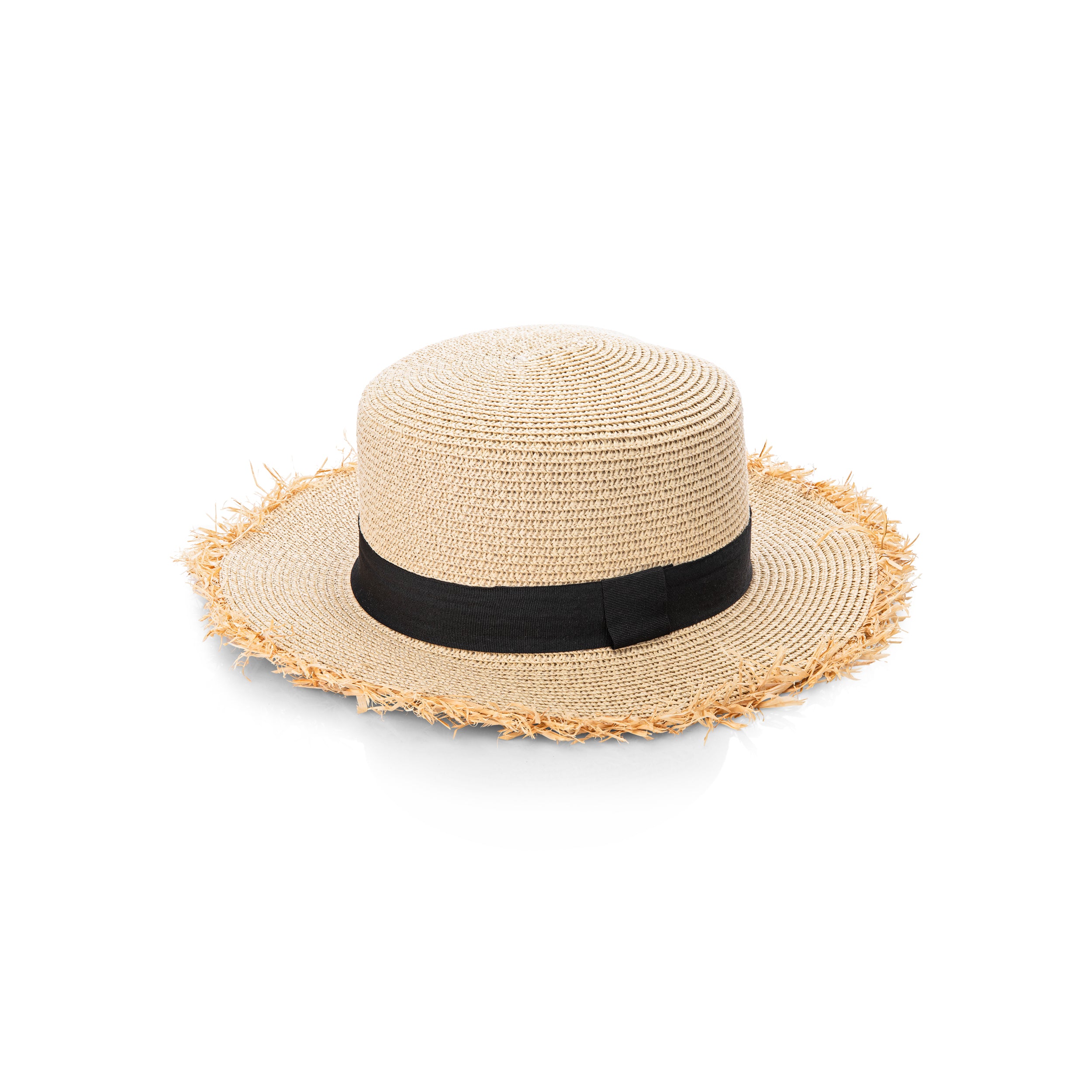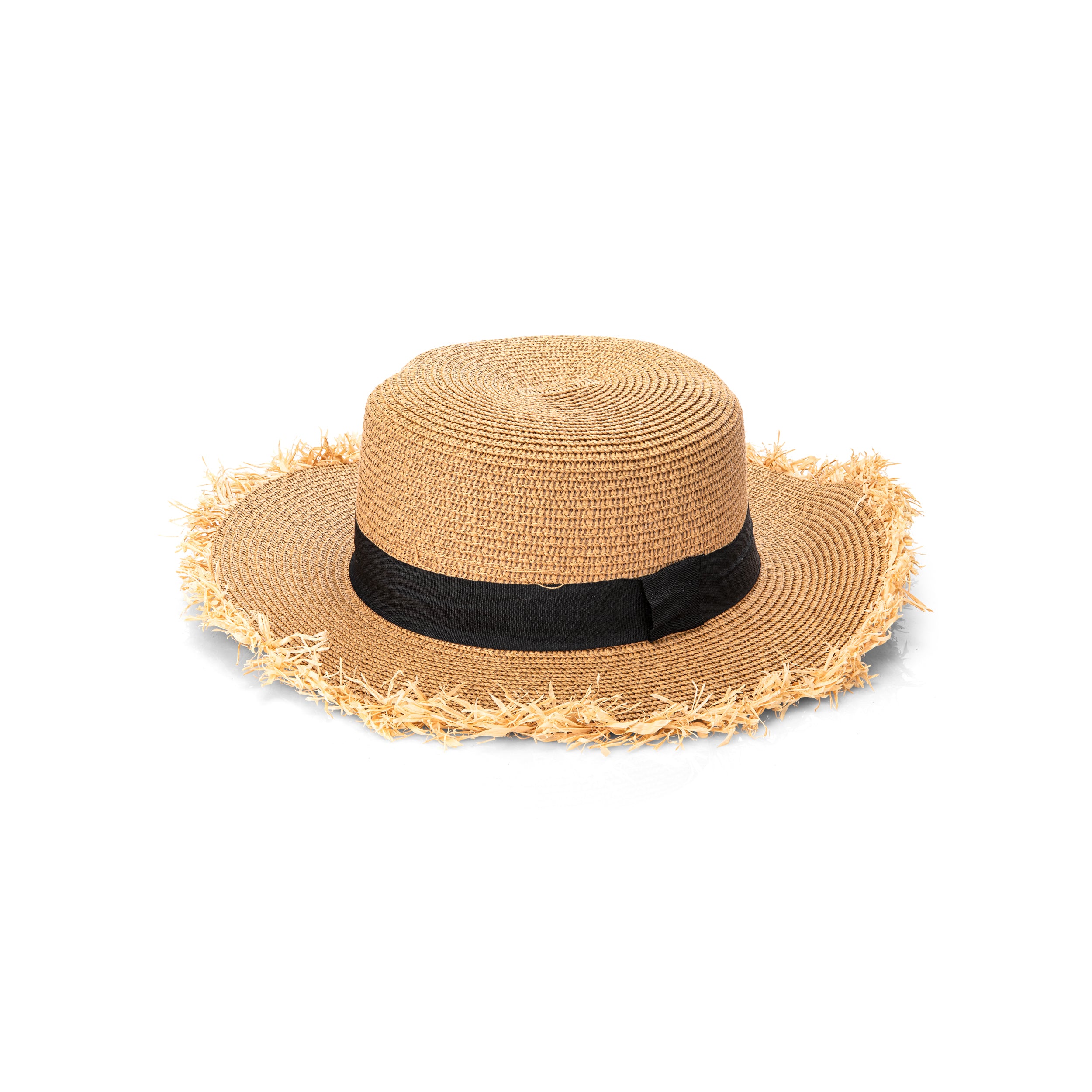 כובע קש עם פס עיטור שחור ופרנזים בשוליים