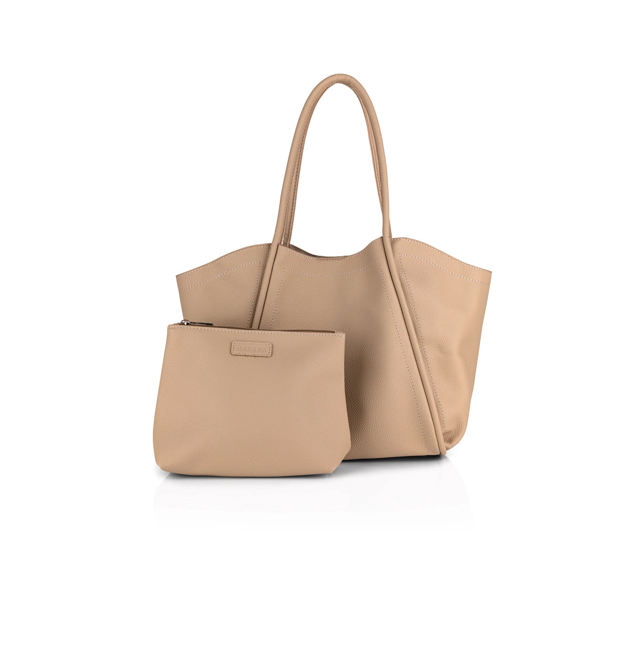 - תיק סל מלבני בצבע אבן, הכולל נרתיק נשלף בעל רוכסן בתוך התיק
