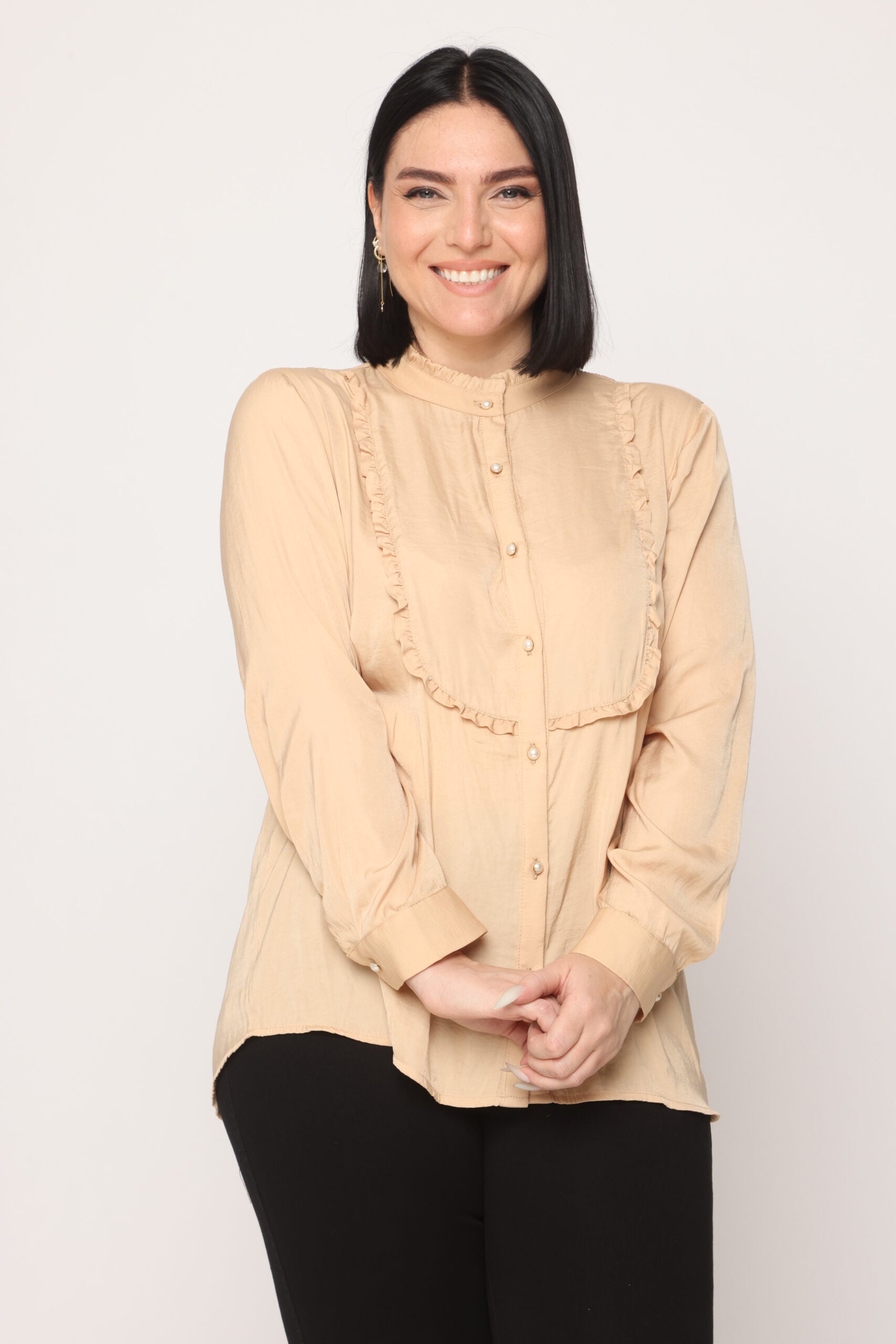 - חולצה מכופתרת עם ליבית בסיומת מלמלה וצאוורון סיני