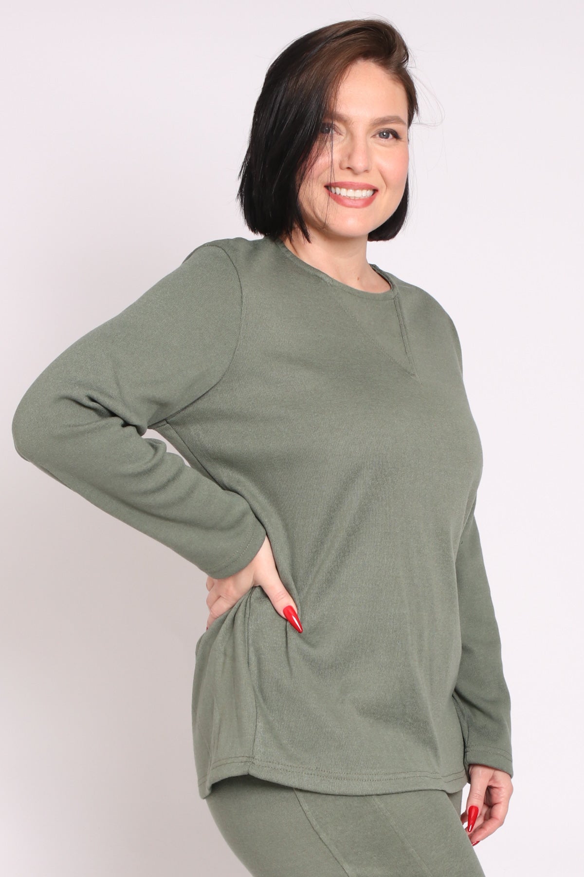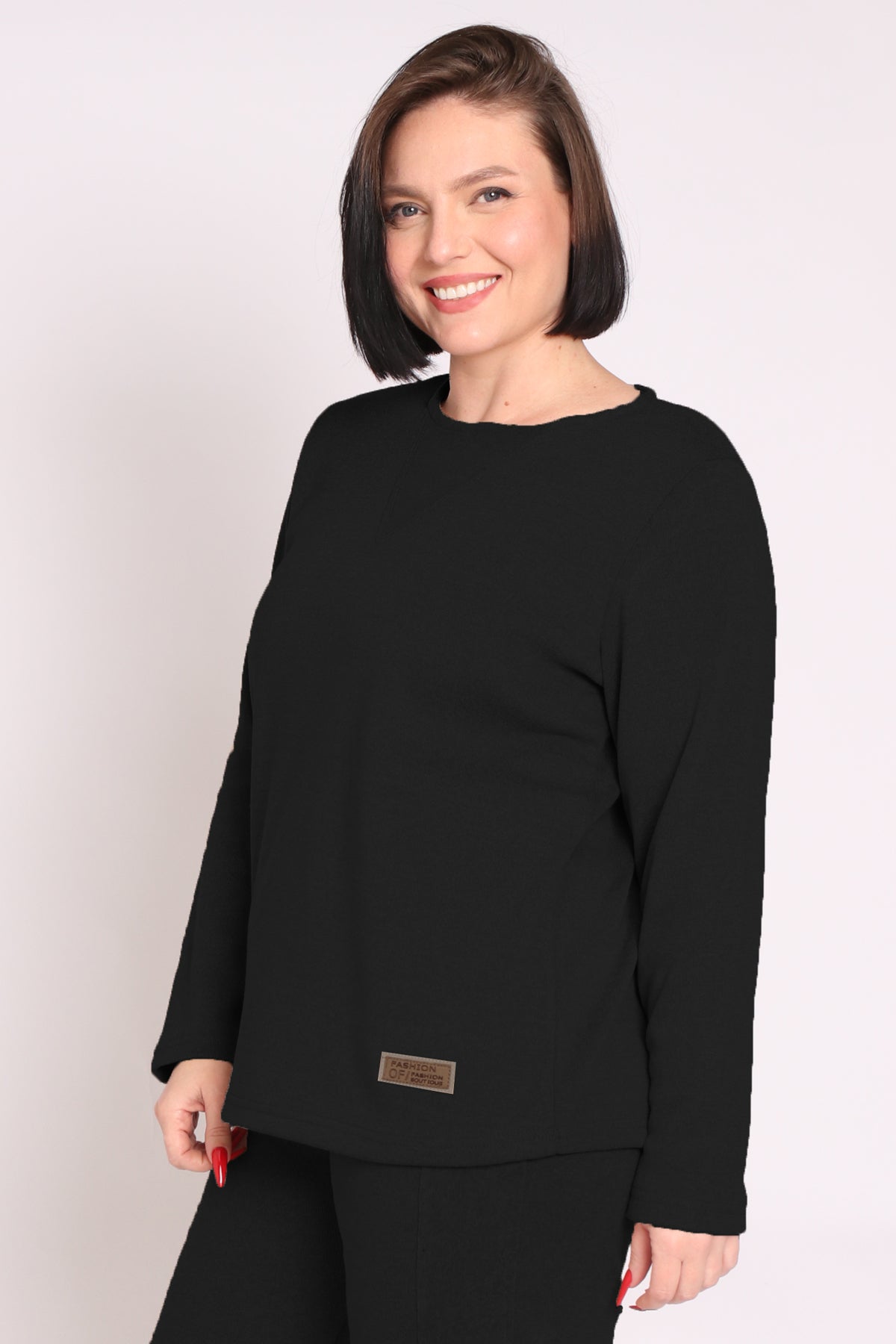 - חולצת סריג נעימה עם עיטור פאצ' בחלק התחתון