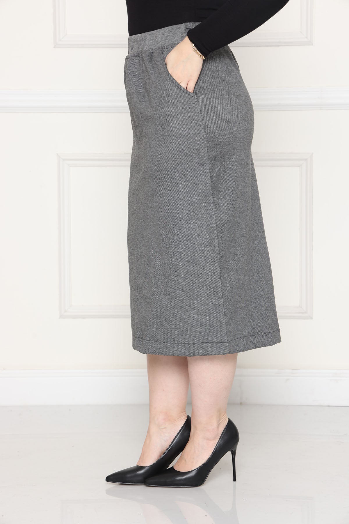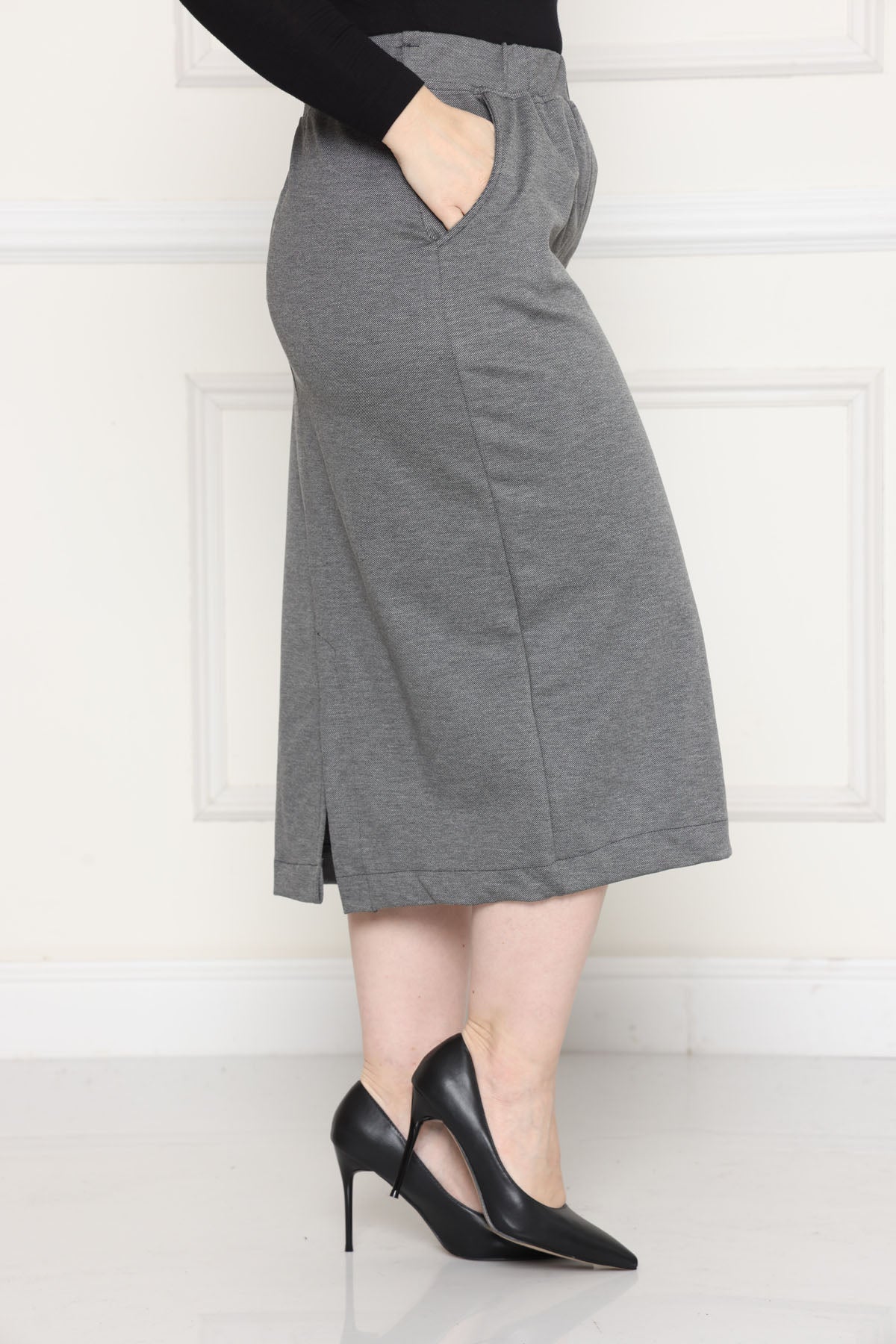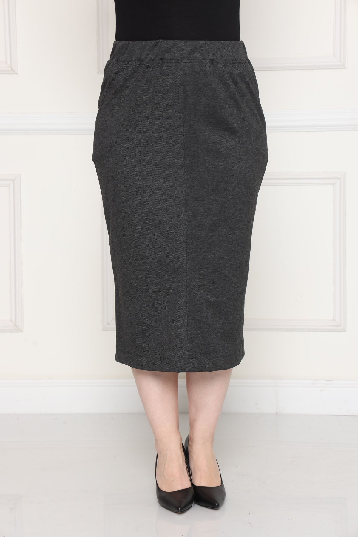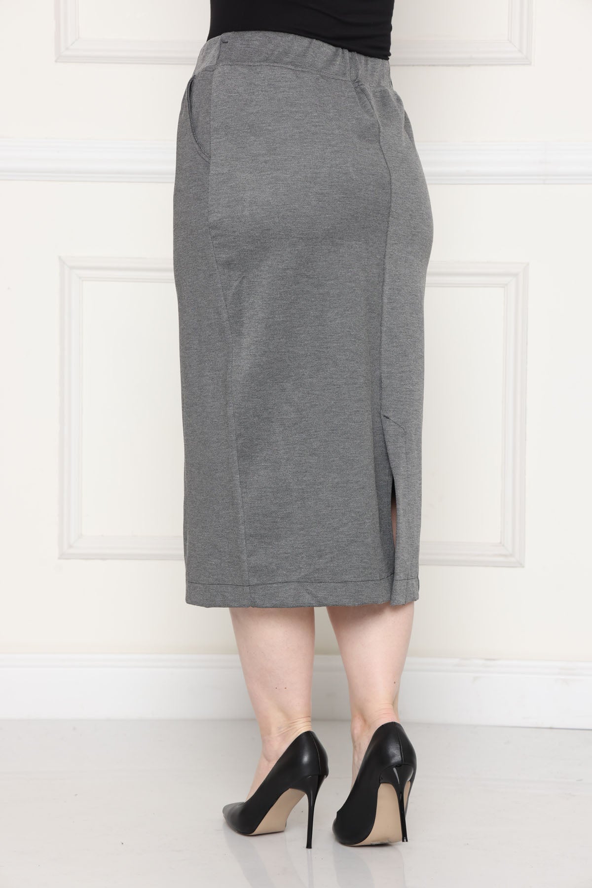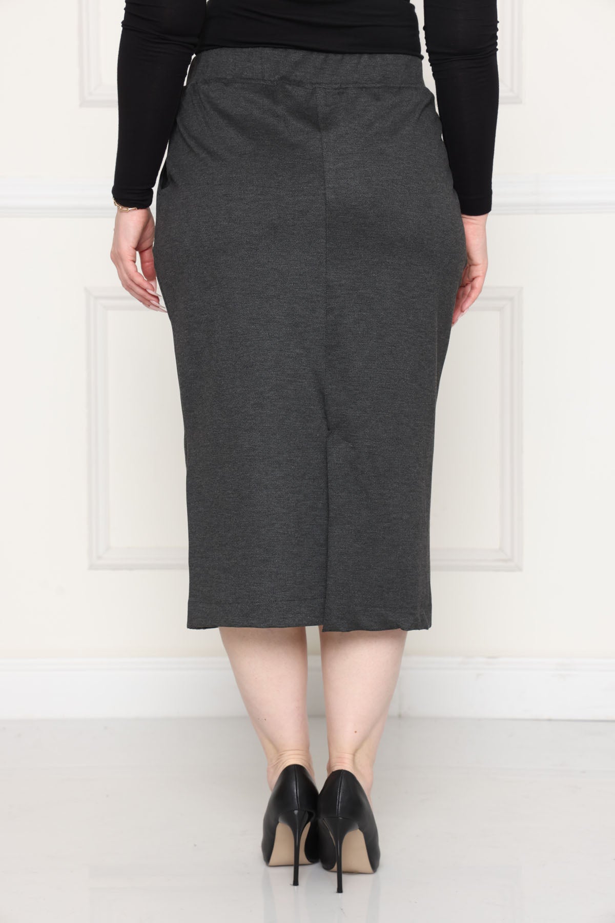 • חצאית בגזרת סיגר עם שסע אחורי מבד אריג עם גומי במותן ושני כיסים
