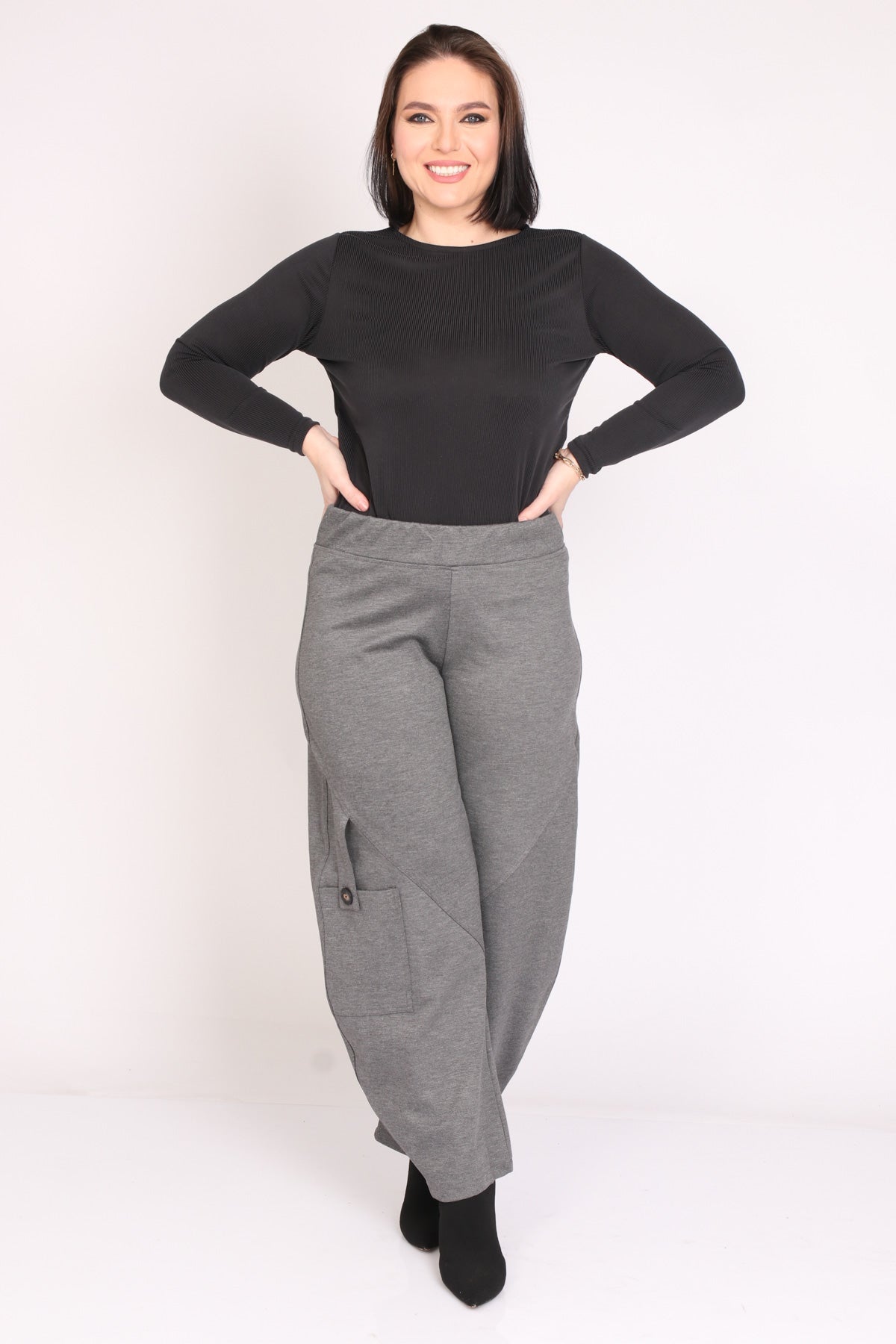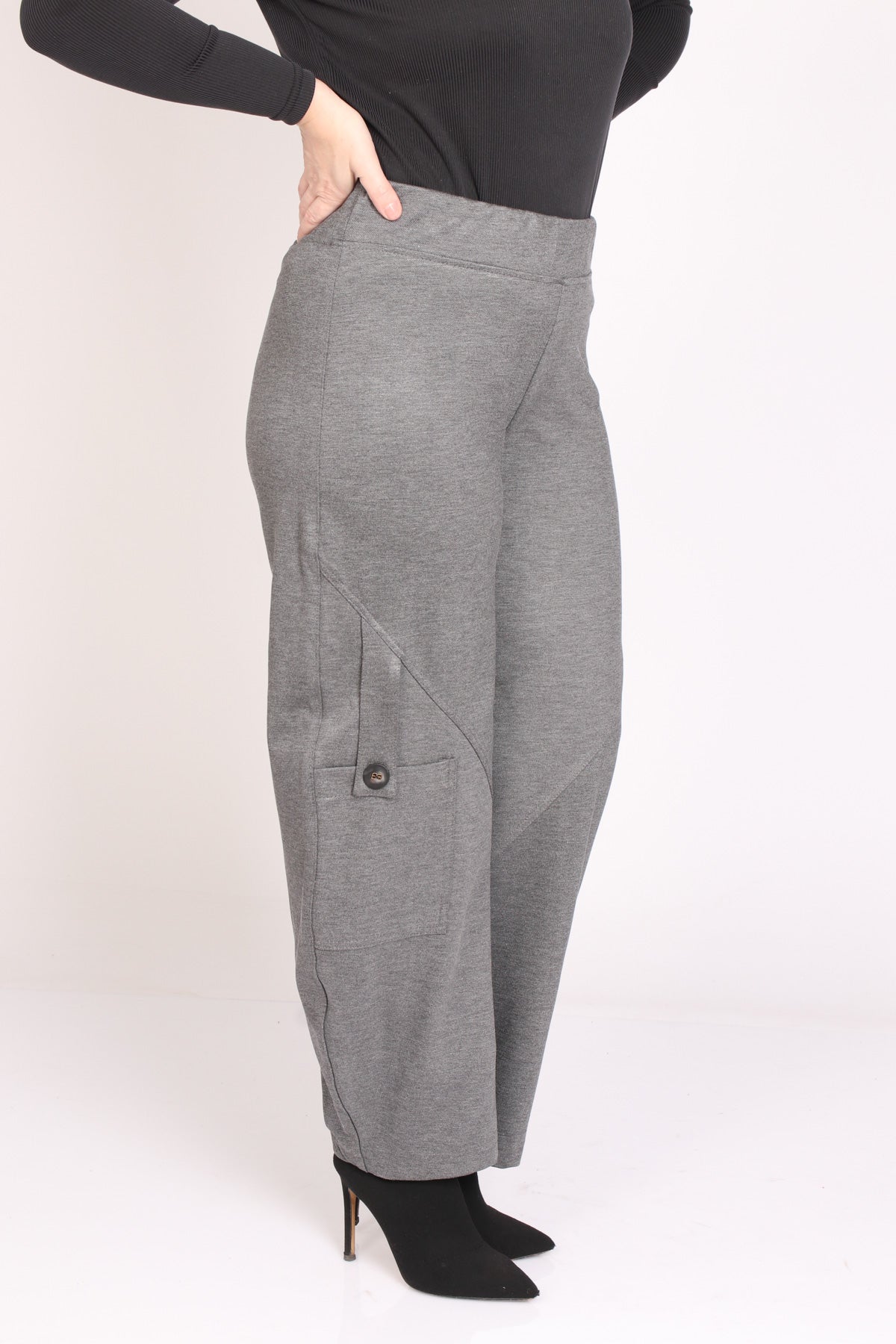 - מכנס מבד אריג עם גומי במותן, עם שילוב כיס עם סגירת שרוך וכפתור בברכיים
