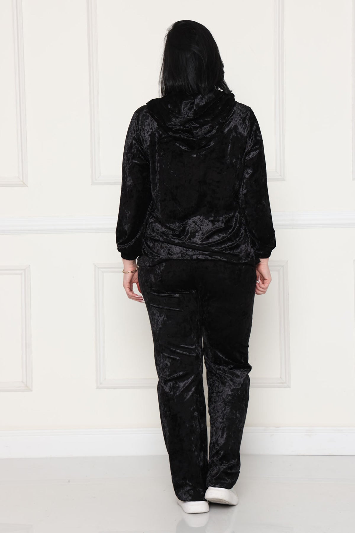 - מכנס מבד קטיפה בגזרה ישרה עם גומי במותן עם שרוך לכיווץ
