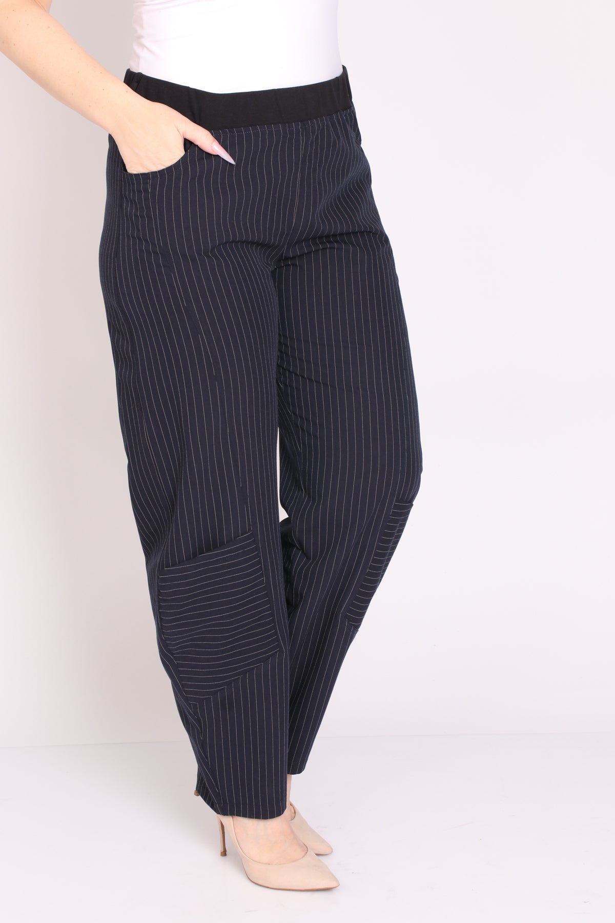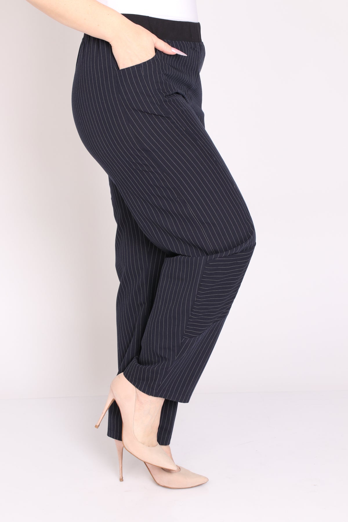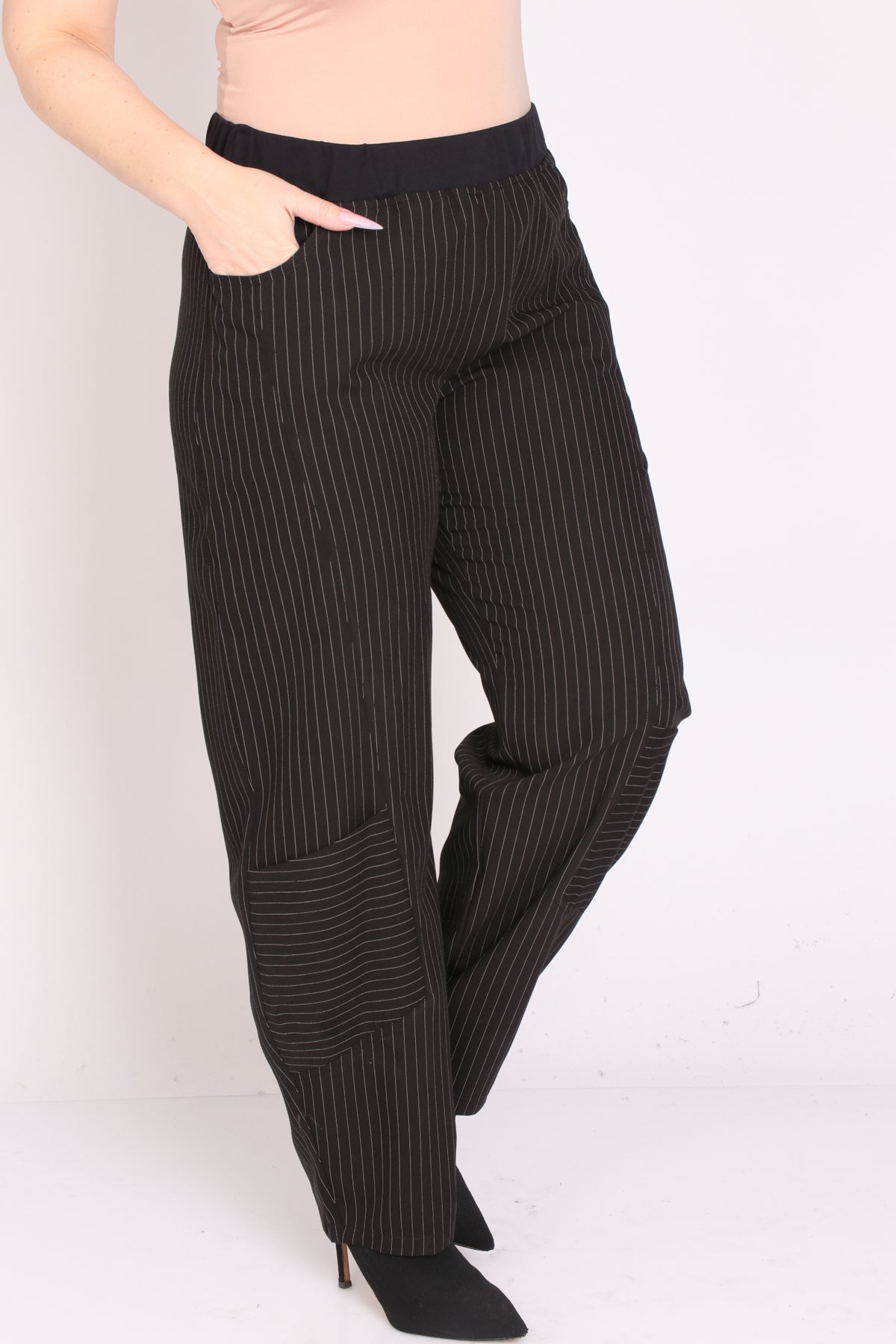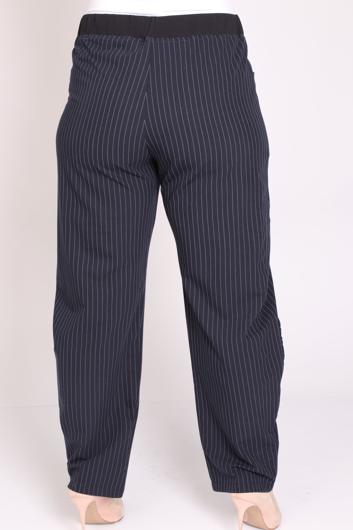 • מכנס עם גומי במותן בגזרת סיגר מבד פסים אופנתי