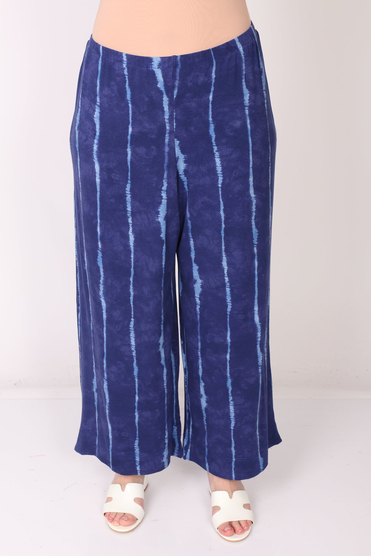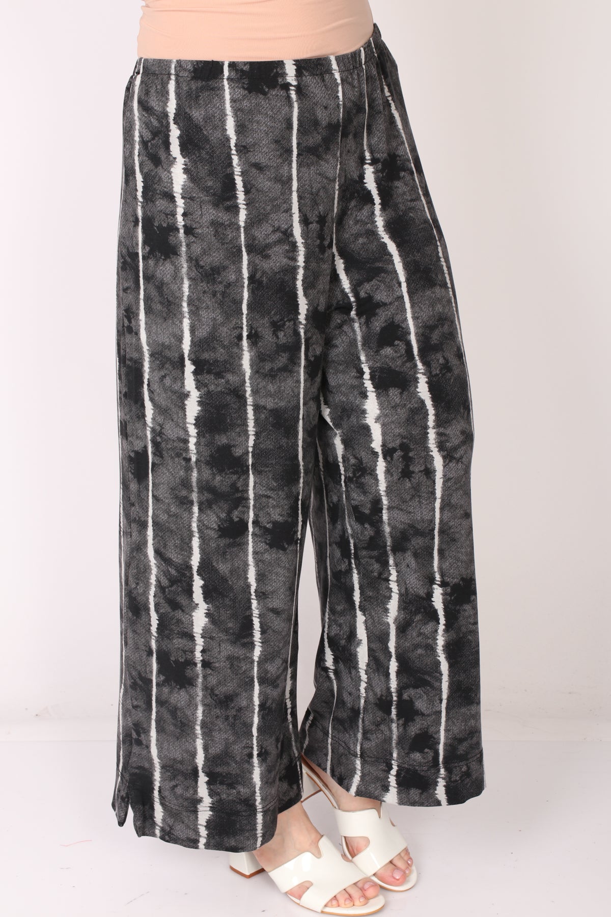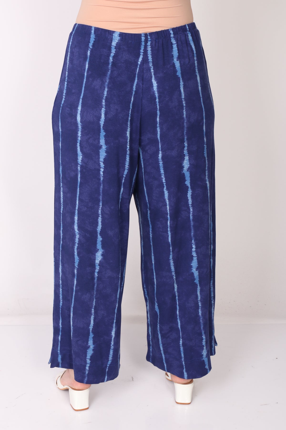 - מכנסיים עם גומי במותן בגזרת שרוואל מבד מודפס פסי טאי-דאי