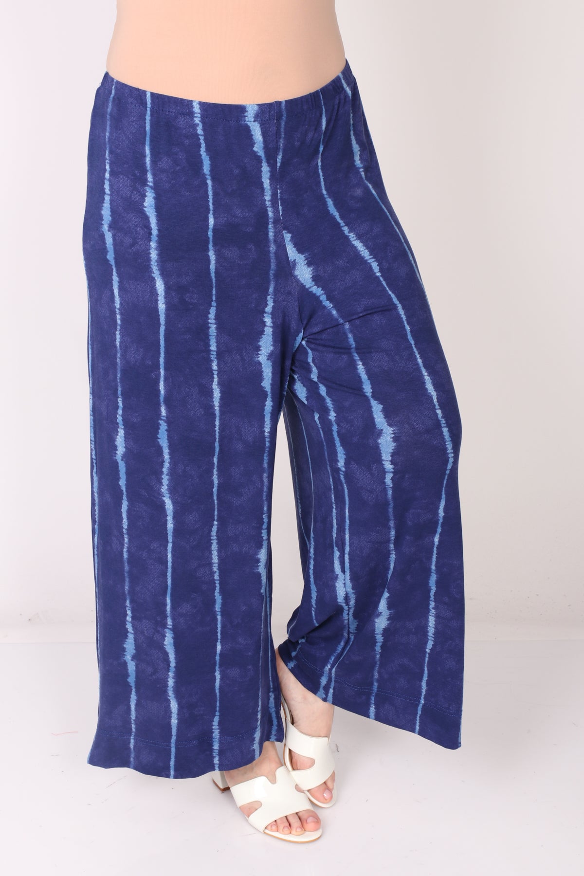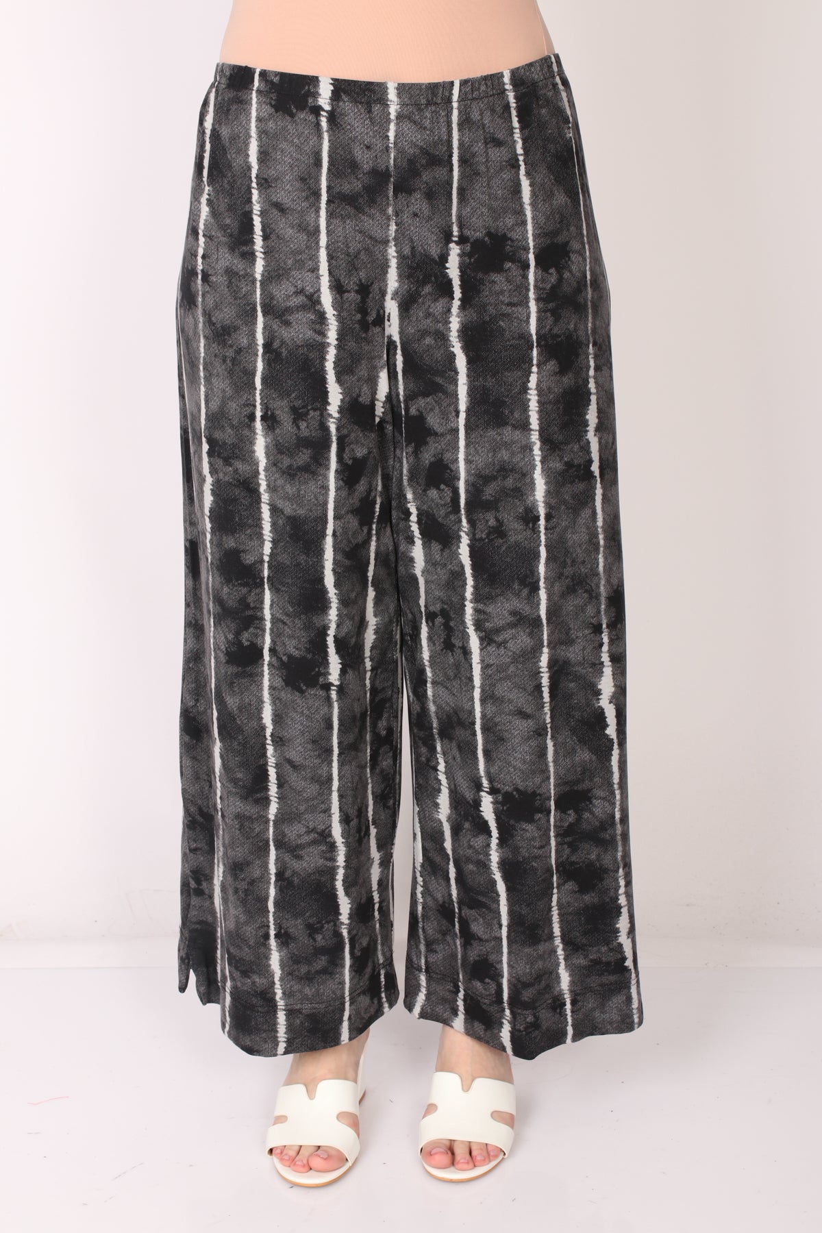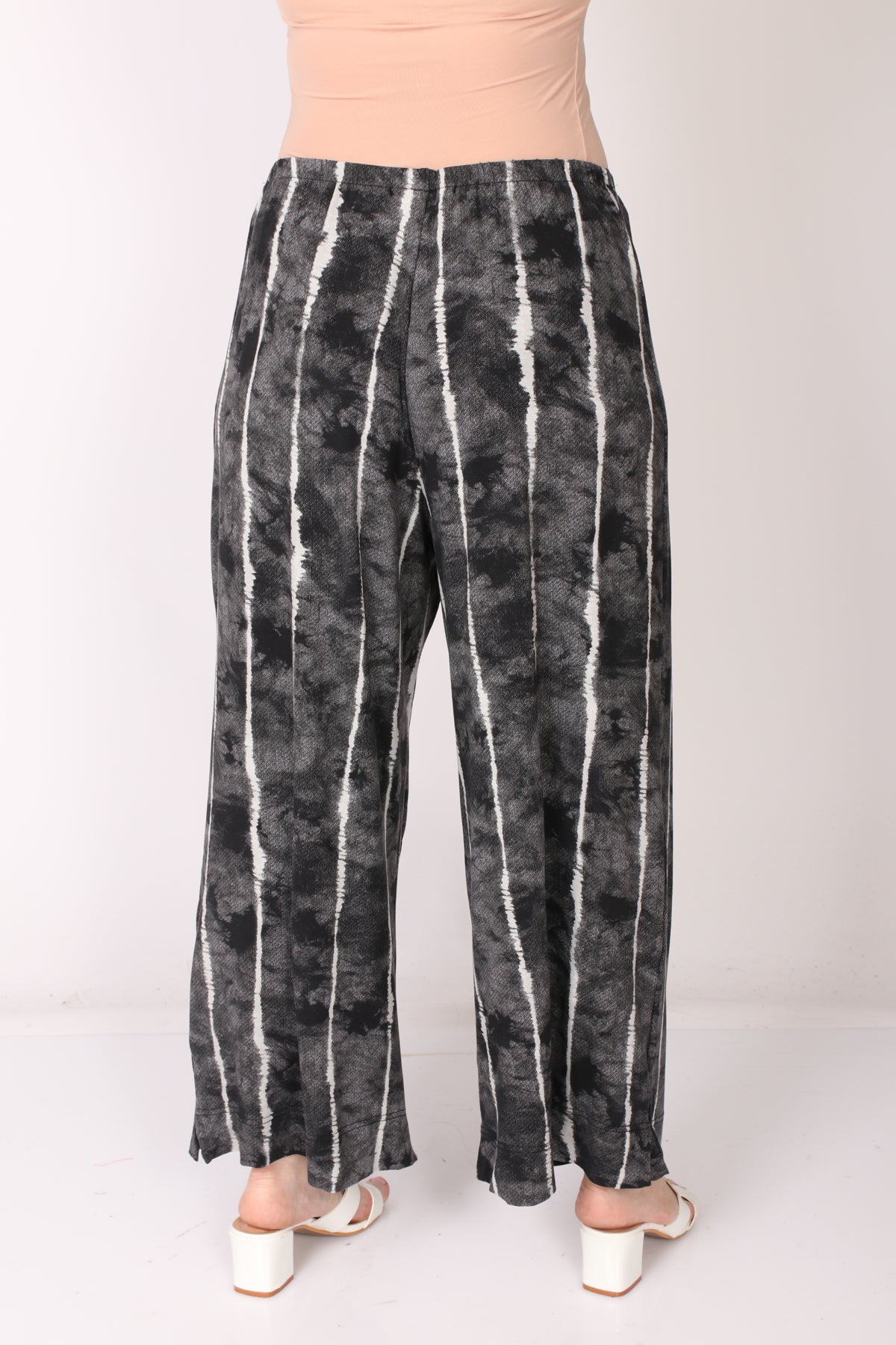 - מכנסיים עם גומי במותן בגזרת שרוואל מבד מודפס פסי טאי-דאי