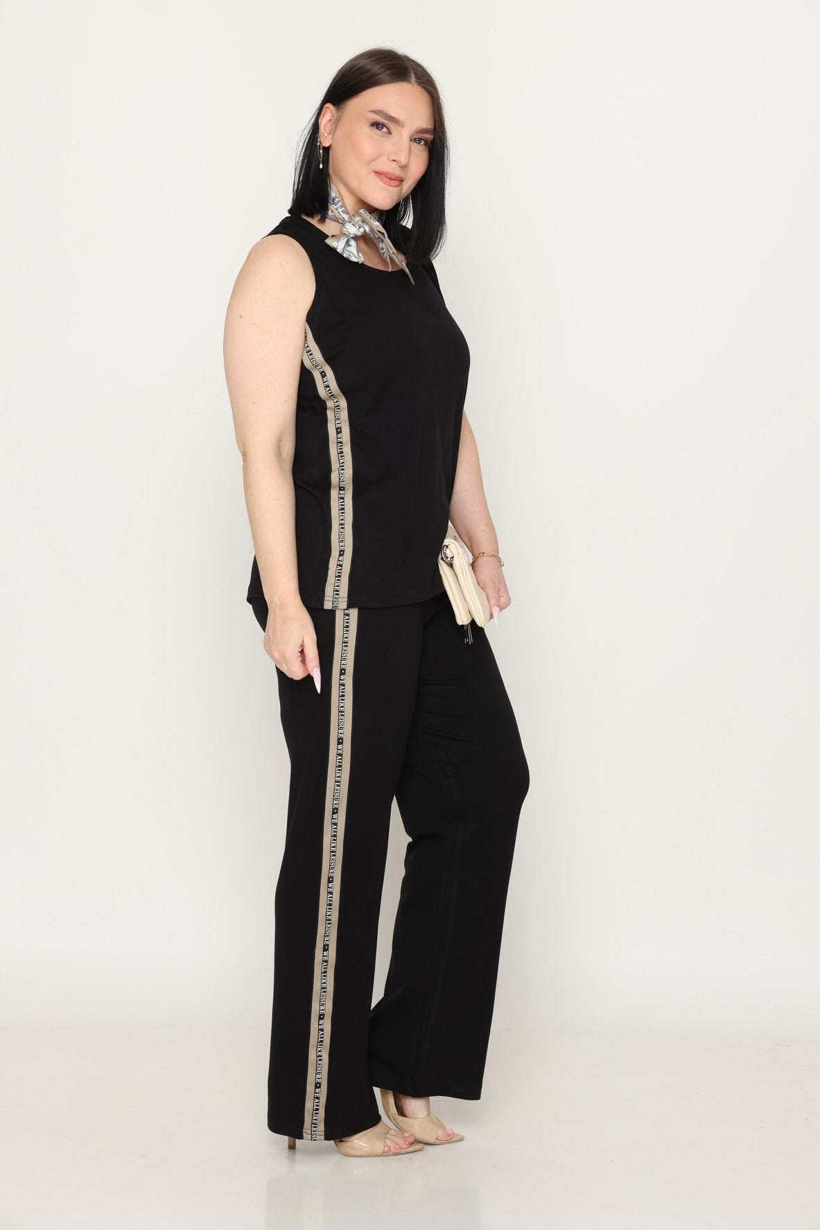 - למכנס פס עיטור מצד אחד בלבד, בכיתוב אופנתי
