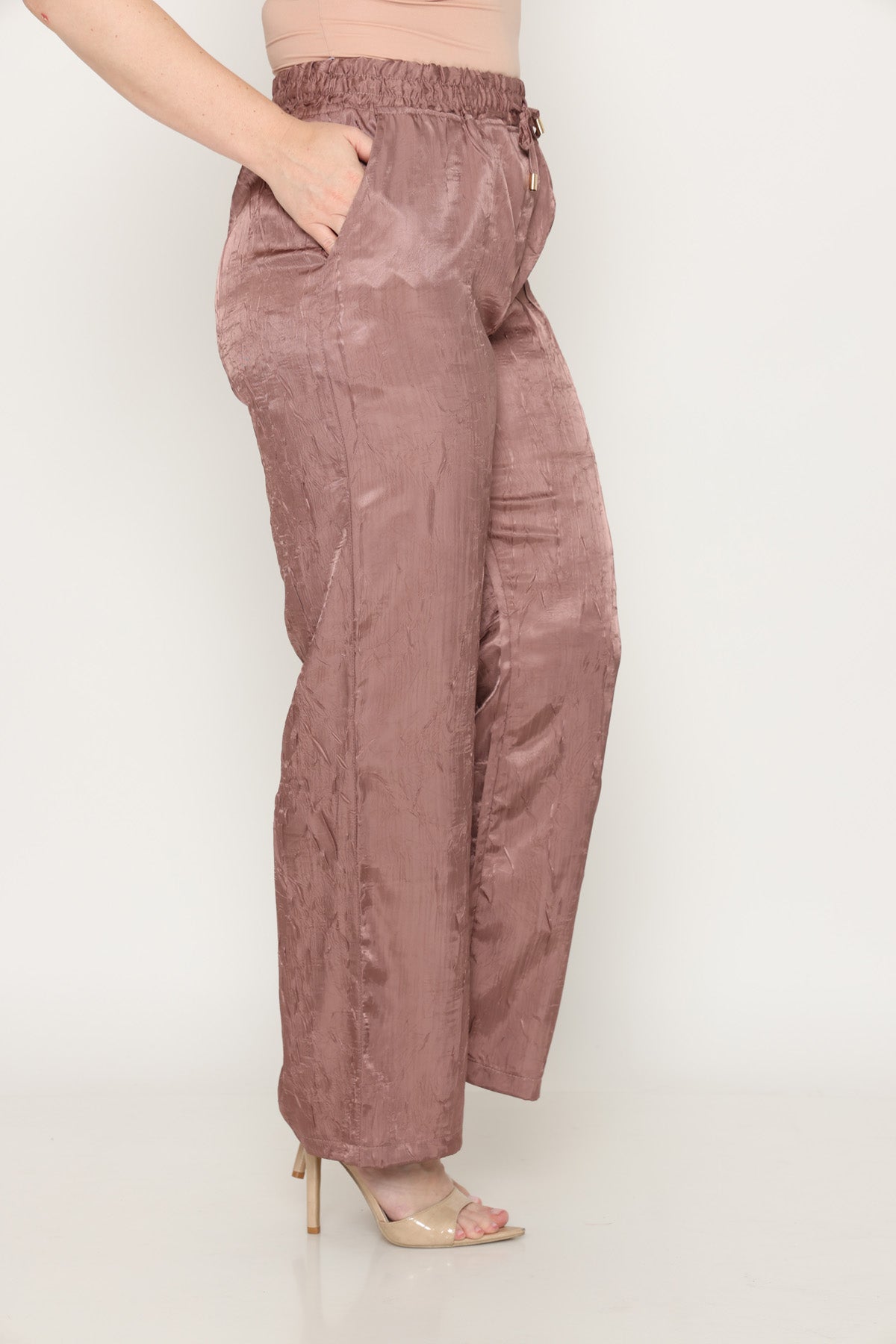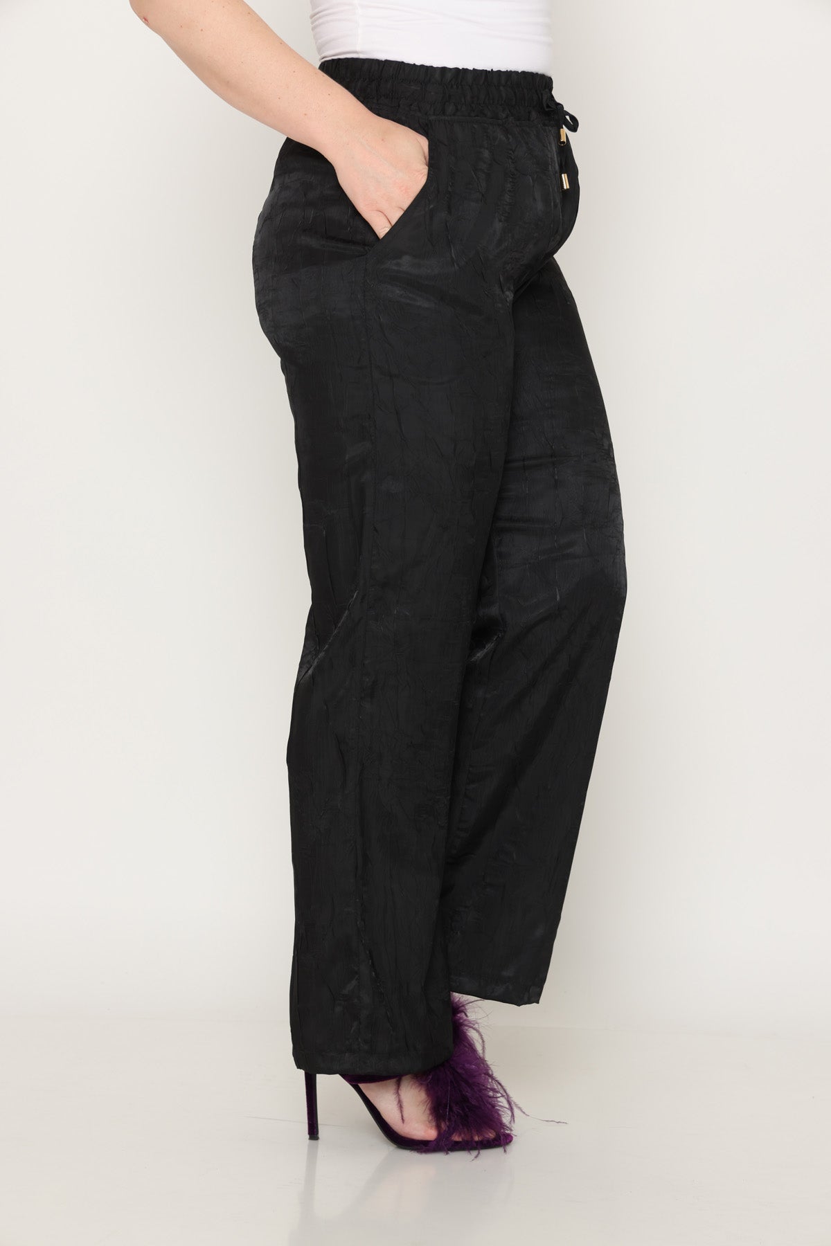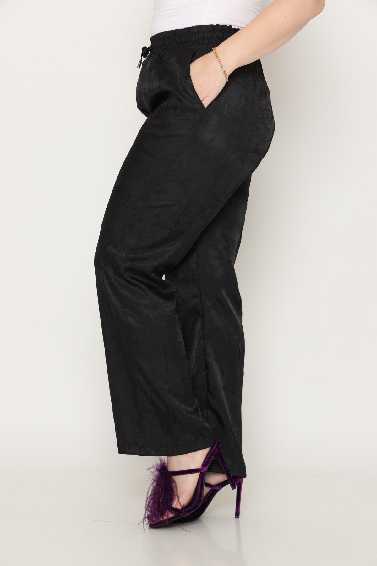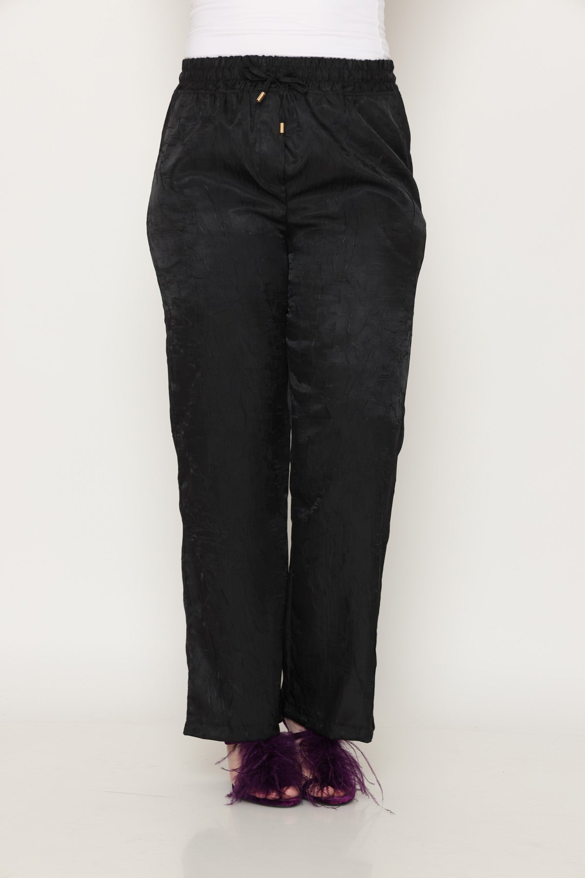 • מכנס בגזרה ישרה עם גומי במותן ושרוך להידוק, מבד בעל טקסטורה