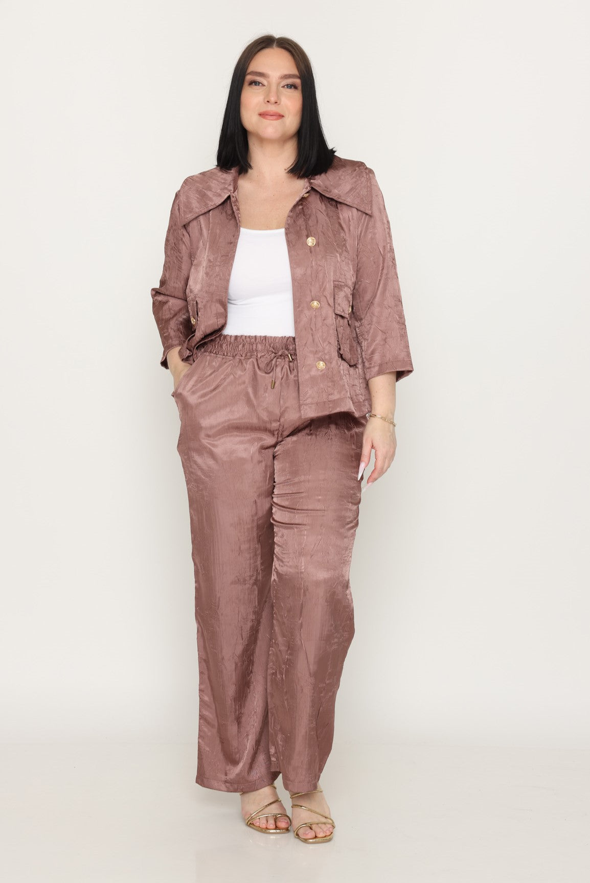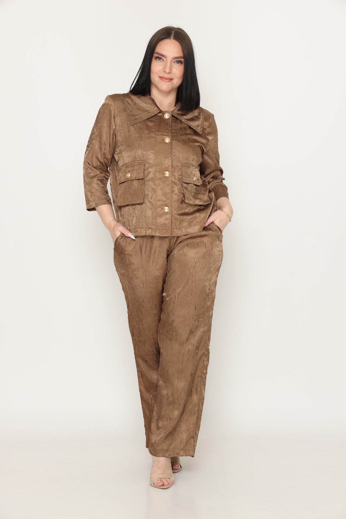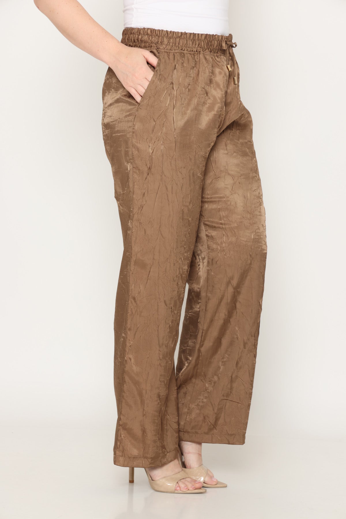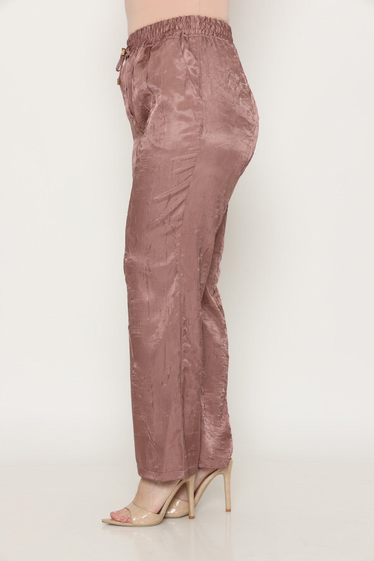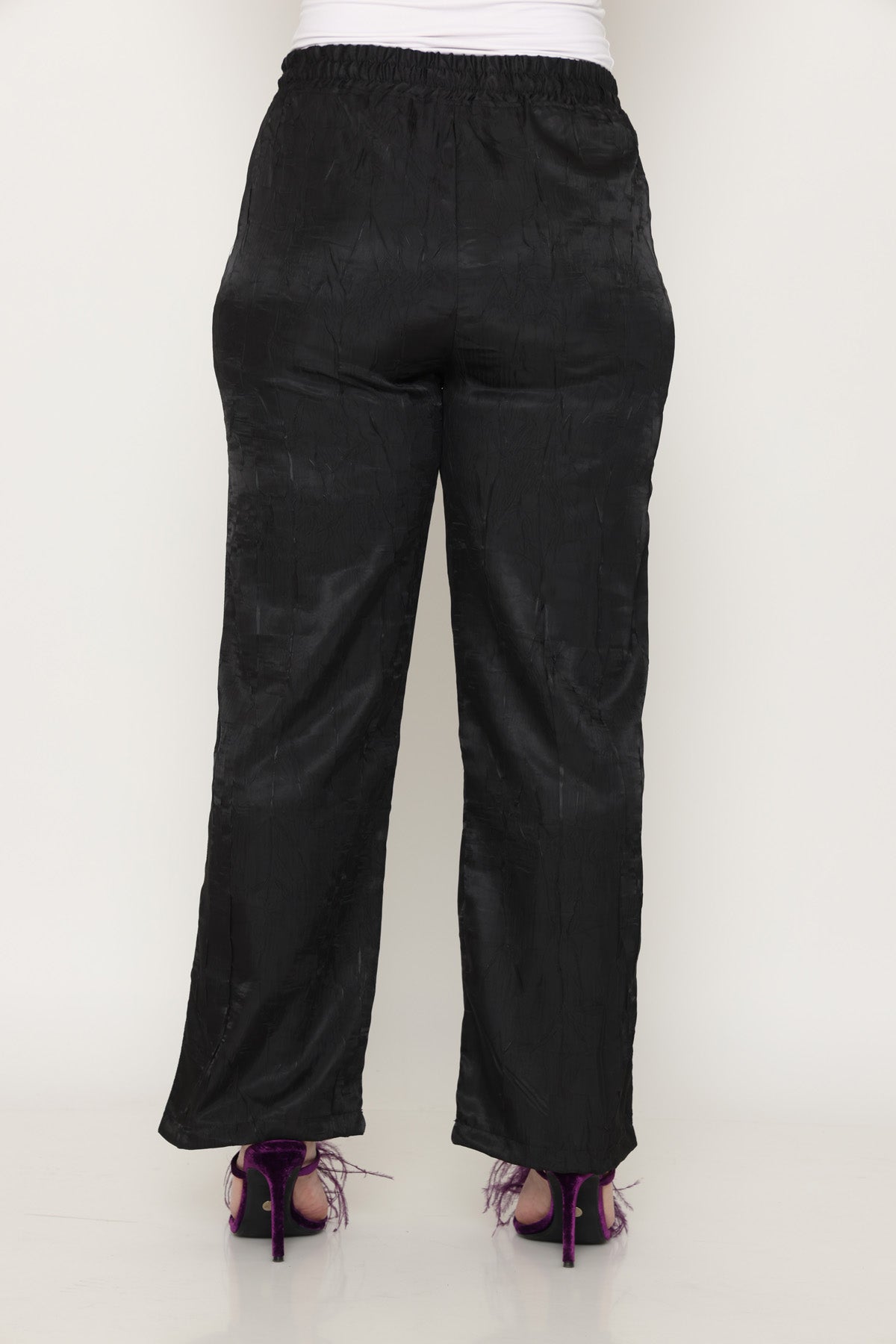 • מכנס בגזרה ישרה עם גומי במותן ושרוך להידוק, מבד בעל טקסטורה