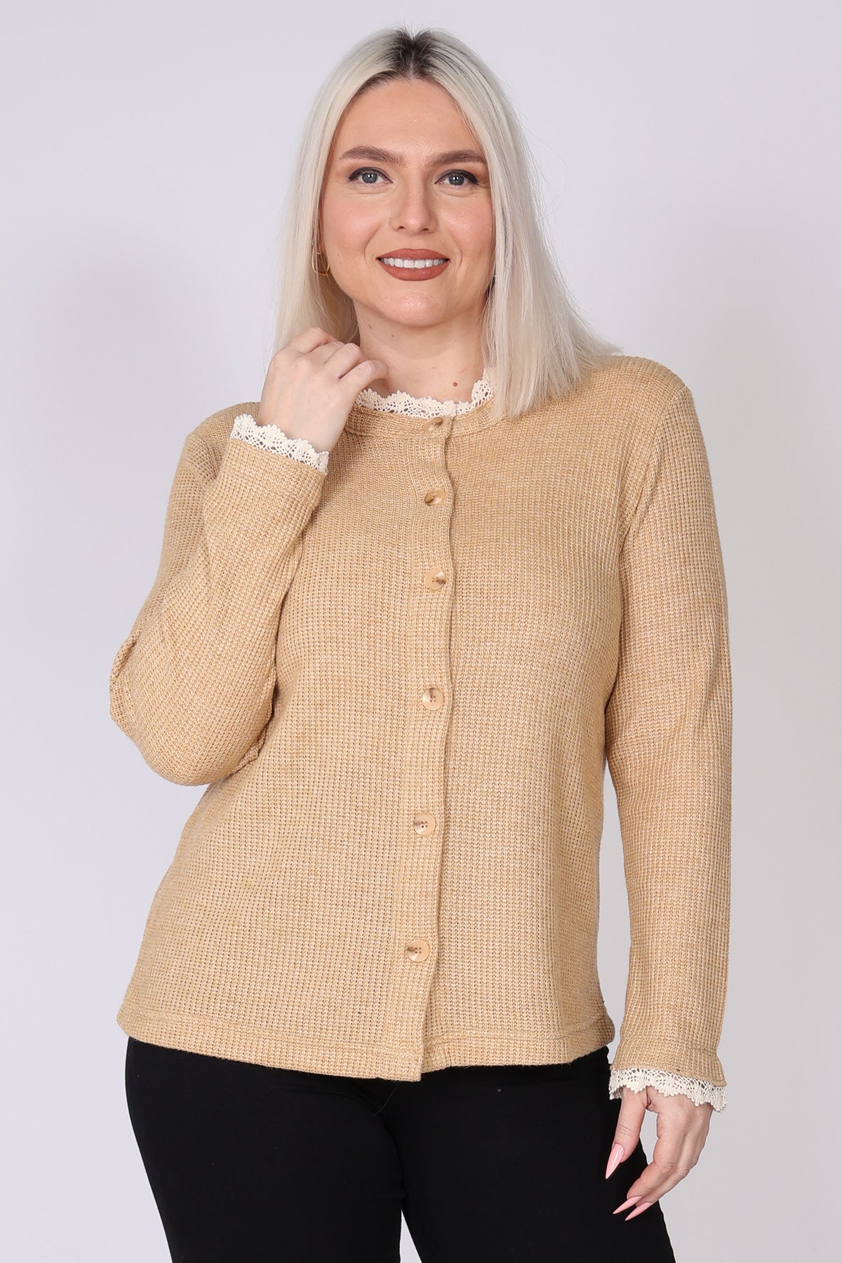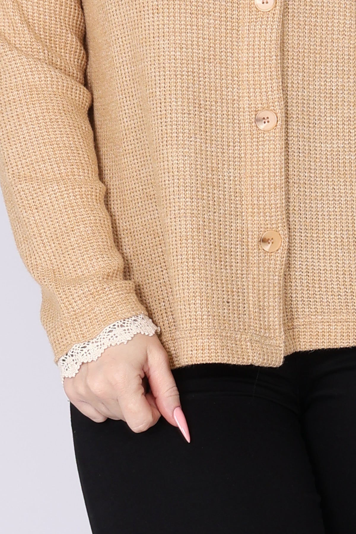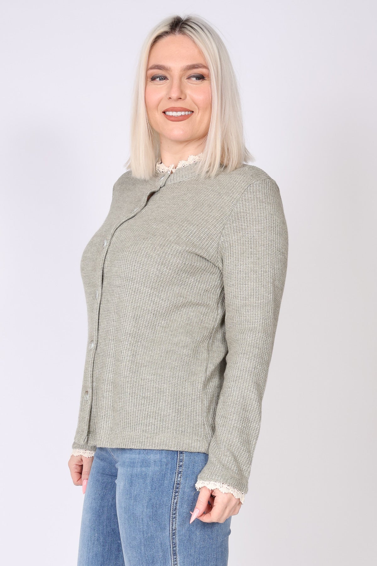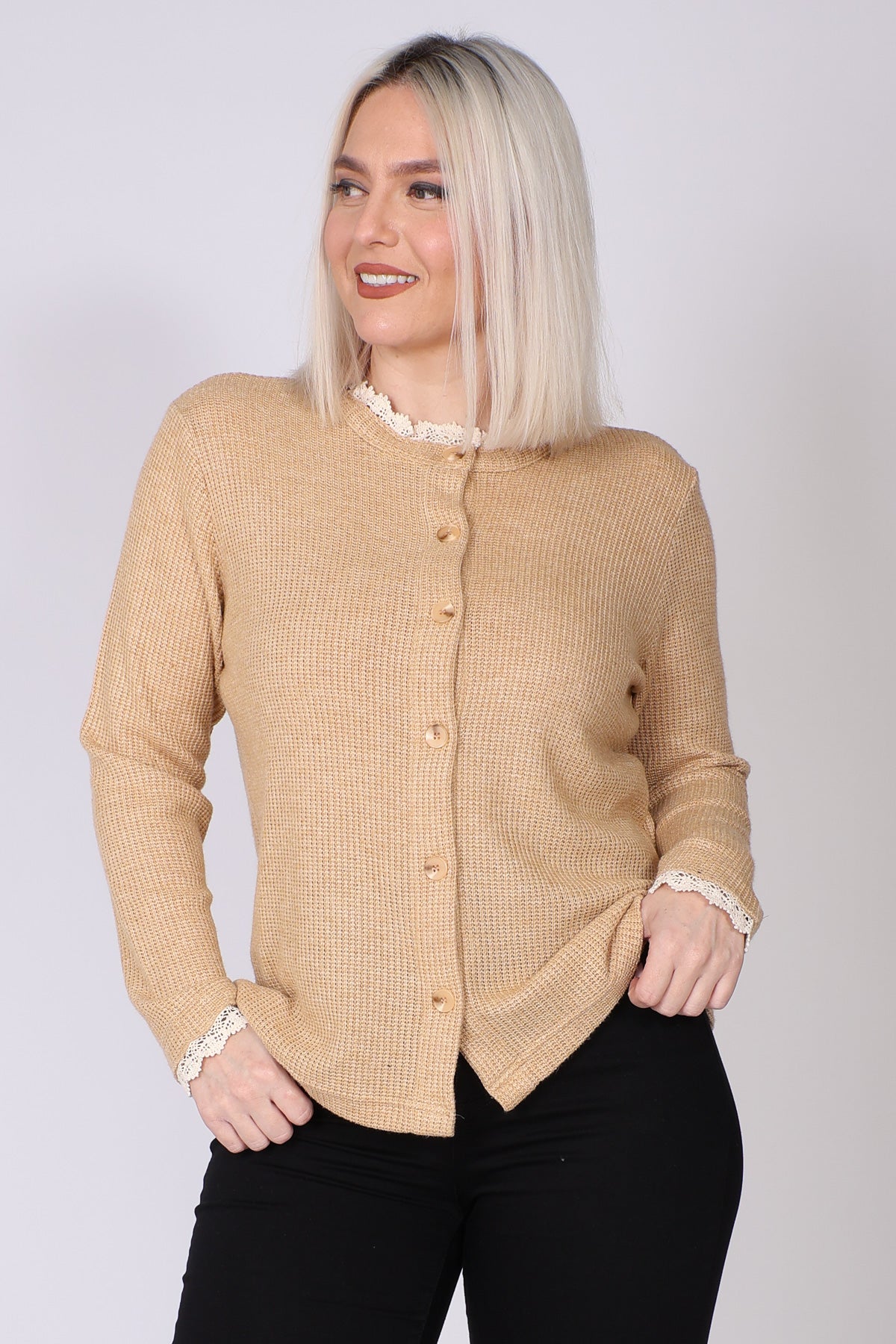 עליונית מכופתרת מבד וופל, עם טוויסט תחרה עדין בצווארון ובשרוולים שמוסיף נגיעה נשית וטרנדית. הגזרה הנינוחה והבד הנעים יוצרים מראה רך ומעודכן, שמתאים ללבישה יומיומית ולשילוב שכבות בעונה. הצבעים הרכים משלימים את העיצוב ומעניקים מראה אלגנטי ולא מתאמץ.