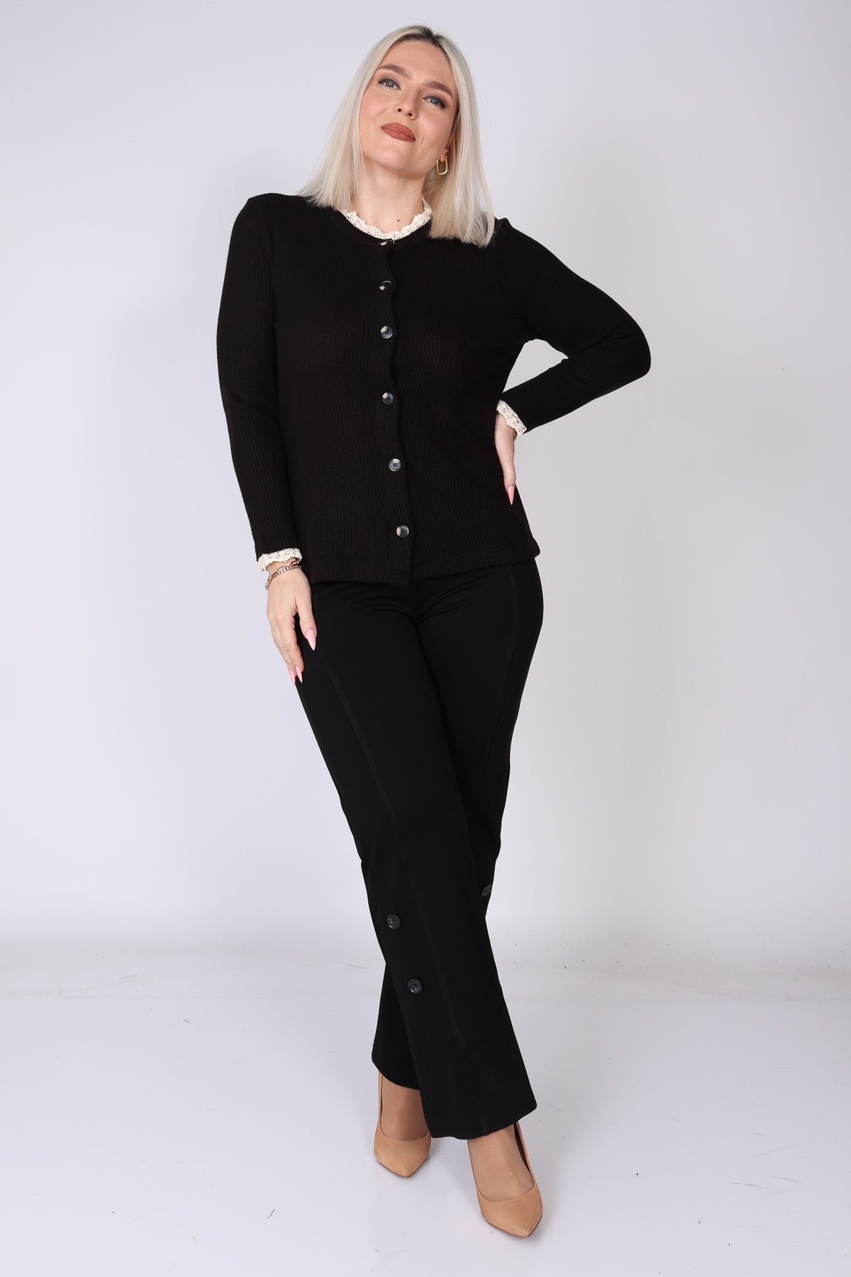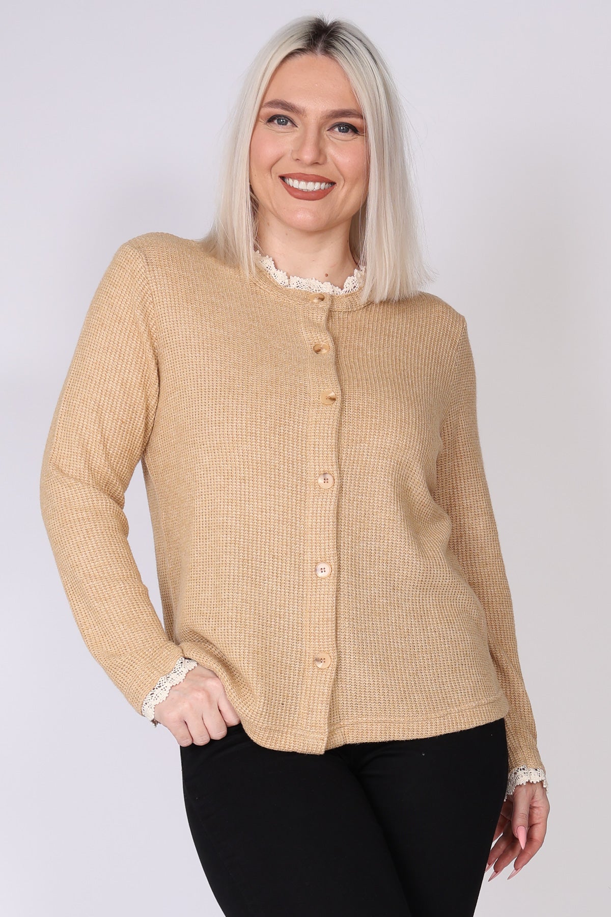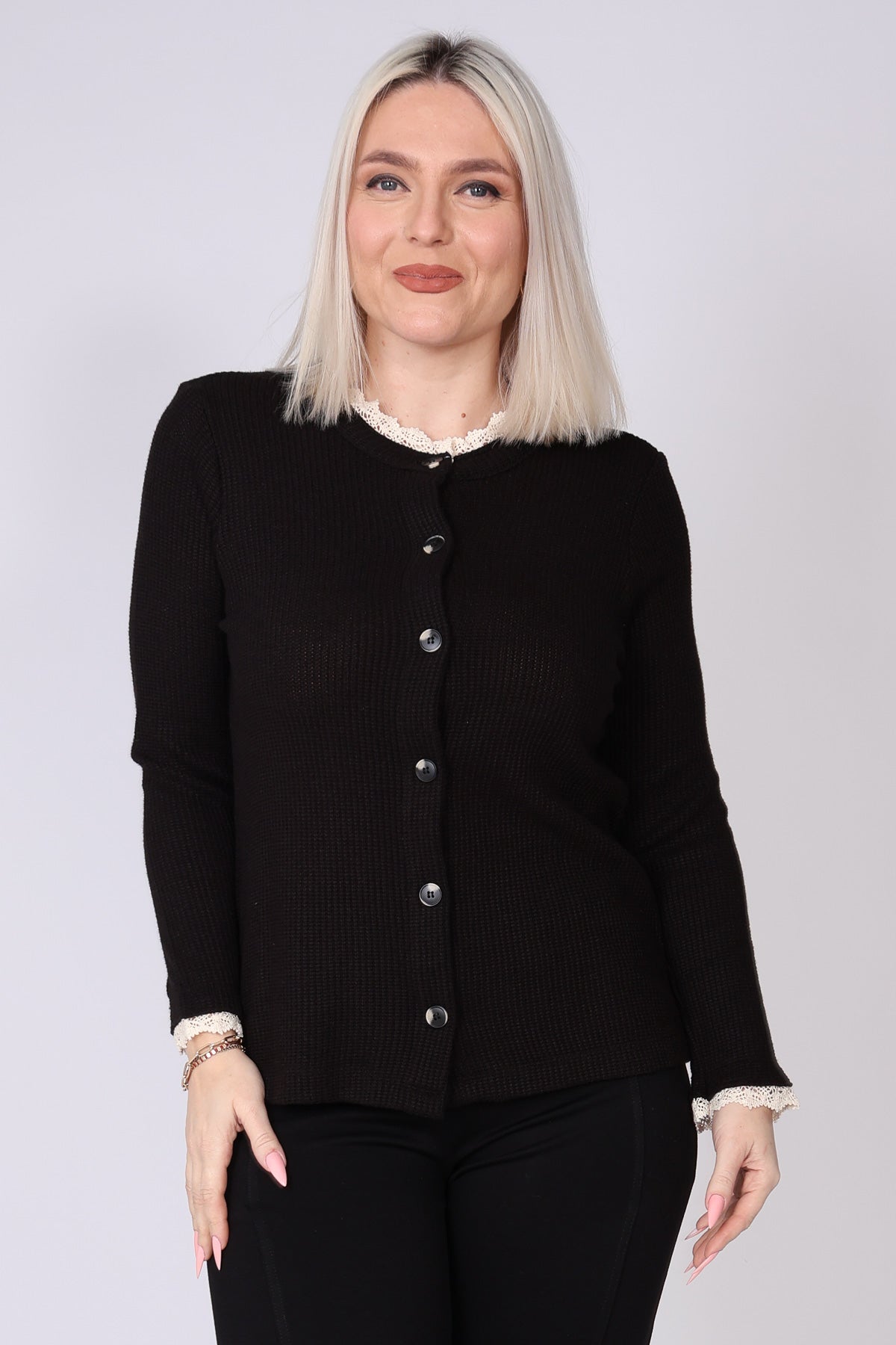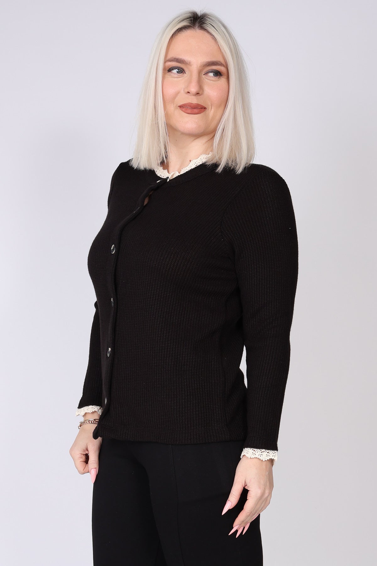 עליונית מכופתרת מבד וופל, עם טוויסט תחרה עדין בצווארון ובשרוולים שמוסיף נגיעה נשית וטרנדית. הגזרה הנינוחה והבד הנעים יוצרים מראה רך ומעודכן, שמתאים ללבישה יומיומית ולשילוב שכבות בעונה. הצבעים הרכים משלימים את העיצוב ומעניקים מראה אלגנטי ולא מתאמץ.