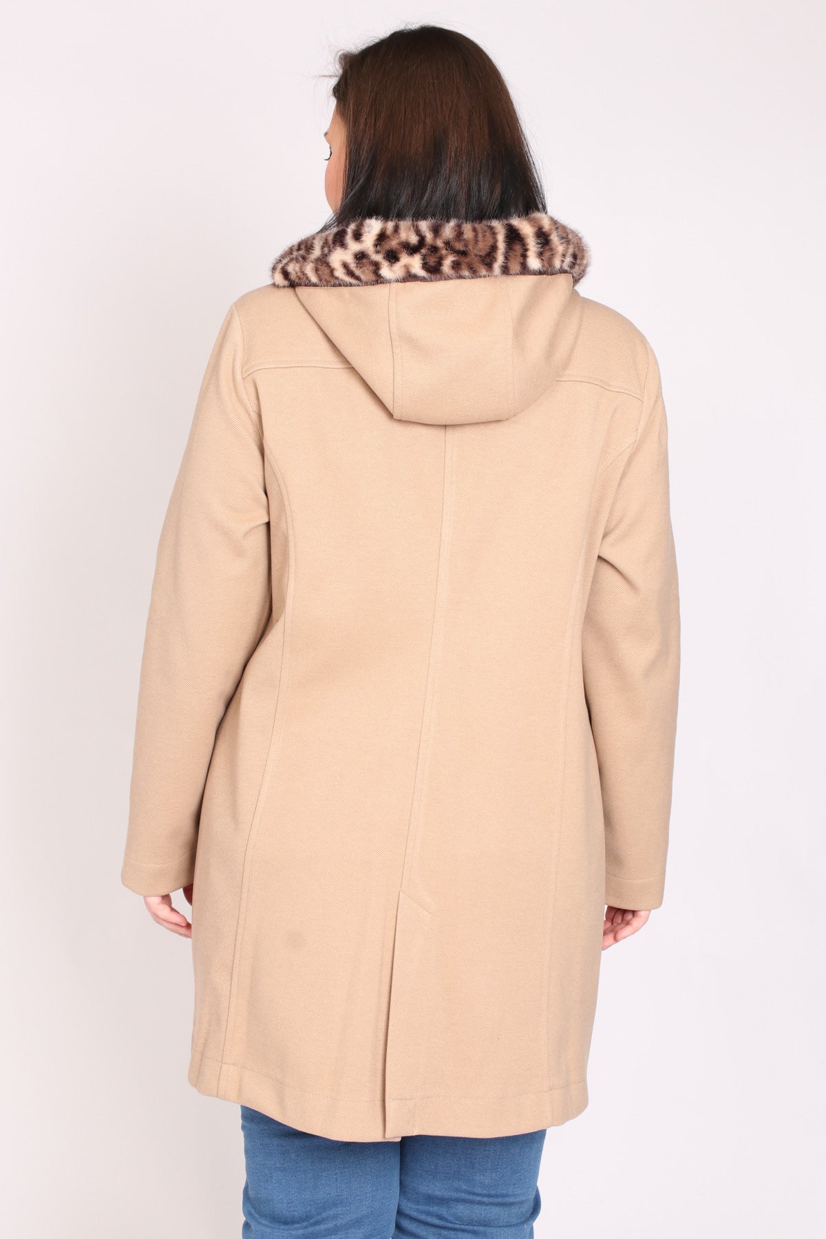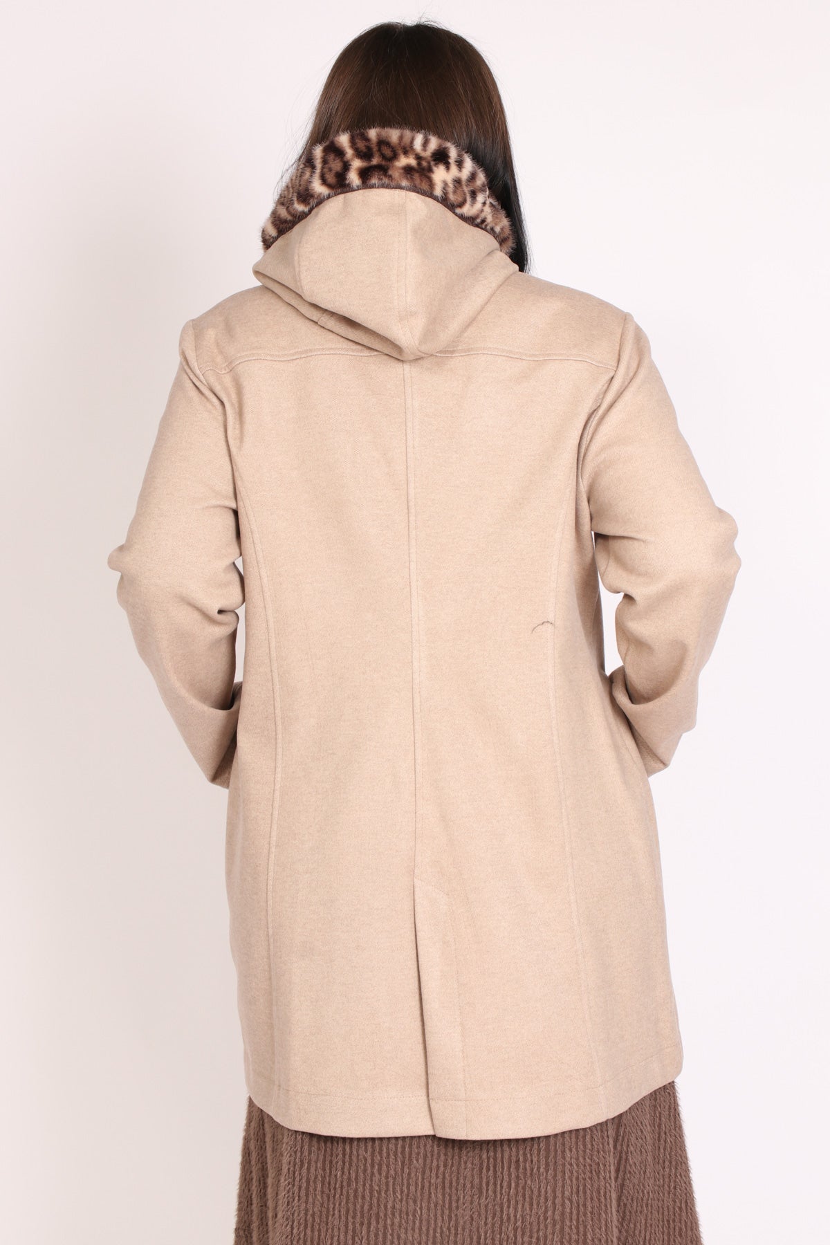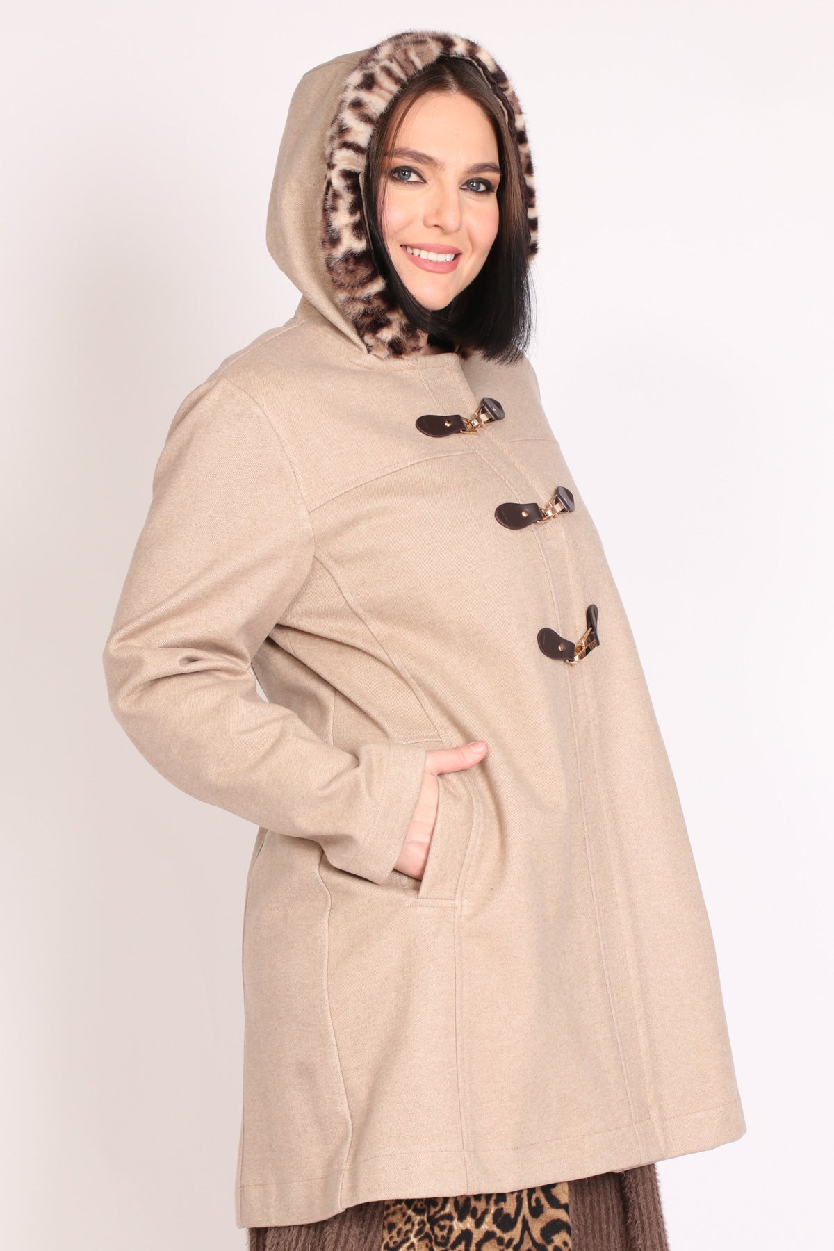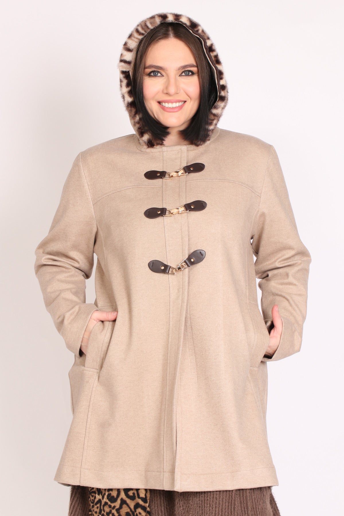 - מעיל יוקרתי מבד אריג עם כובע בעיטור מנומר