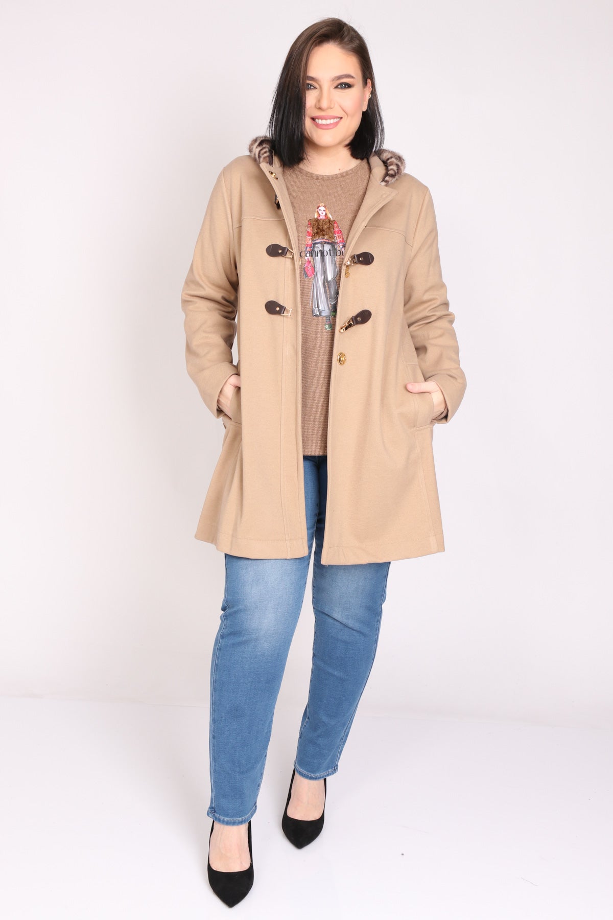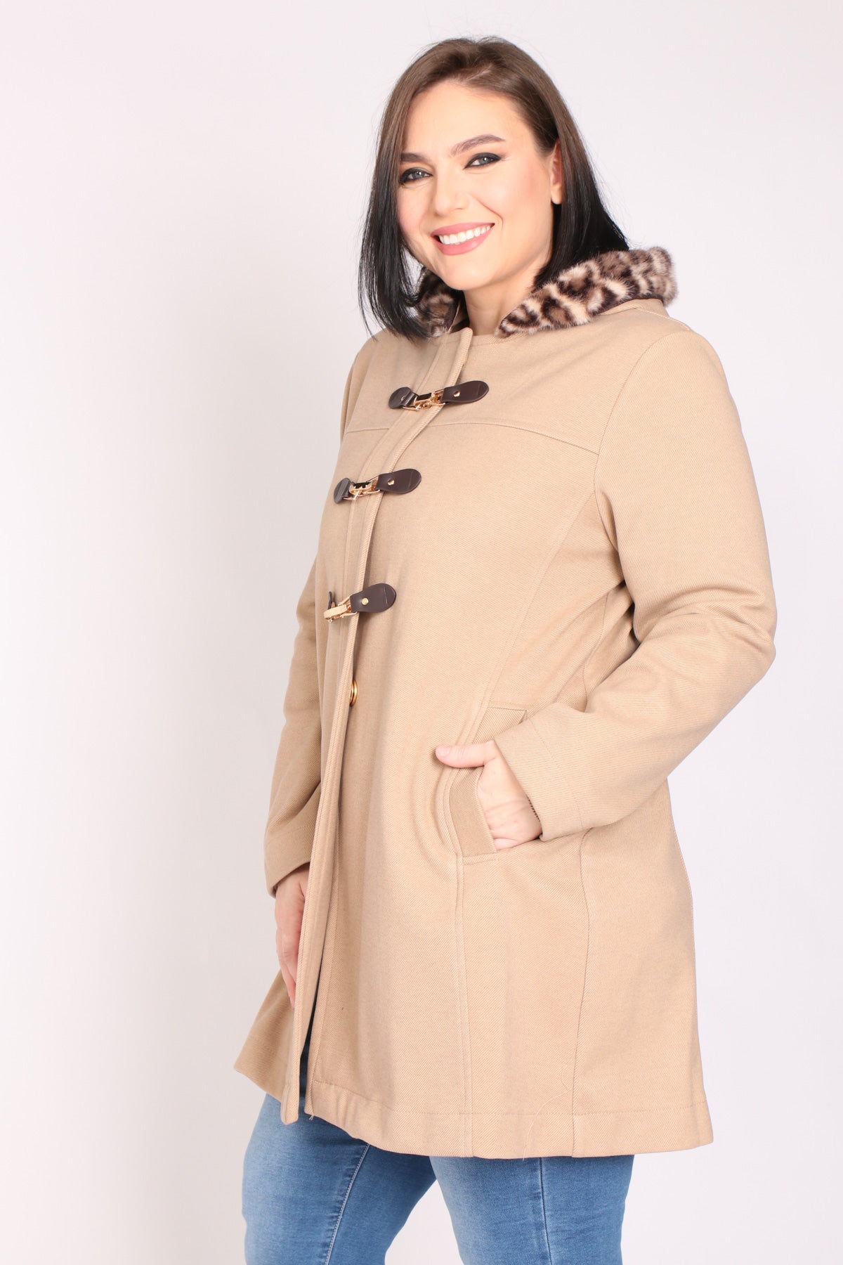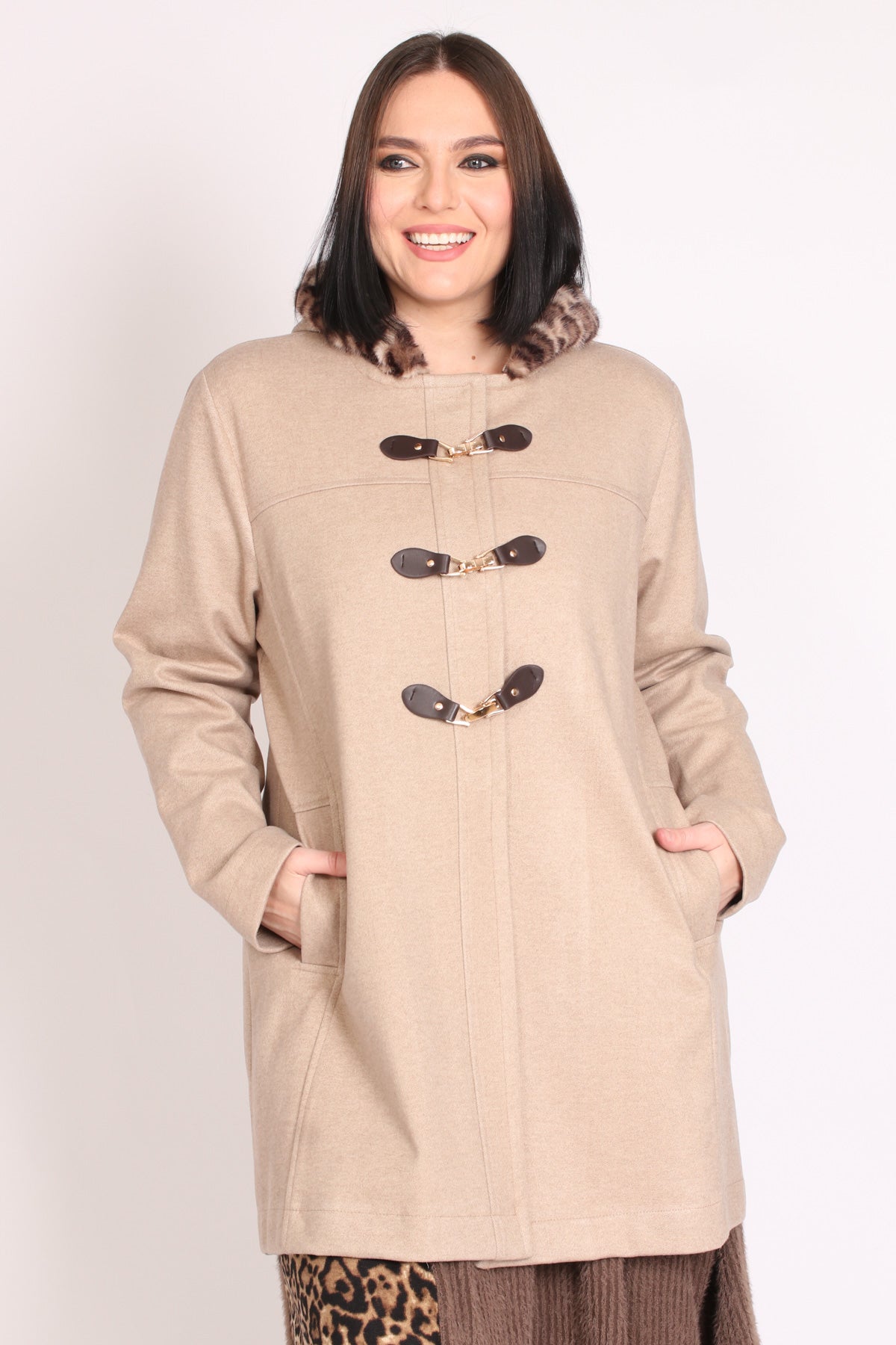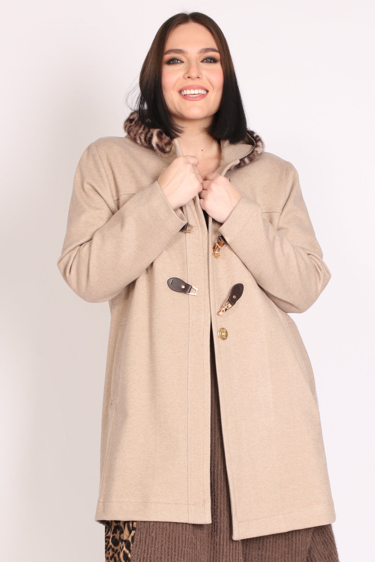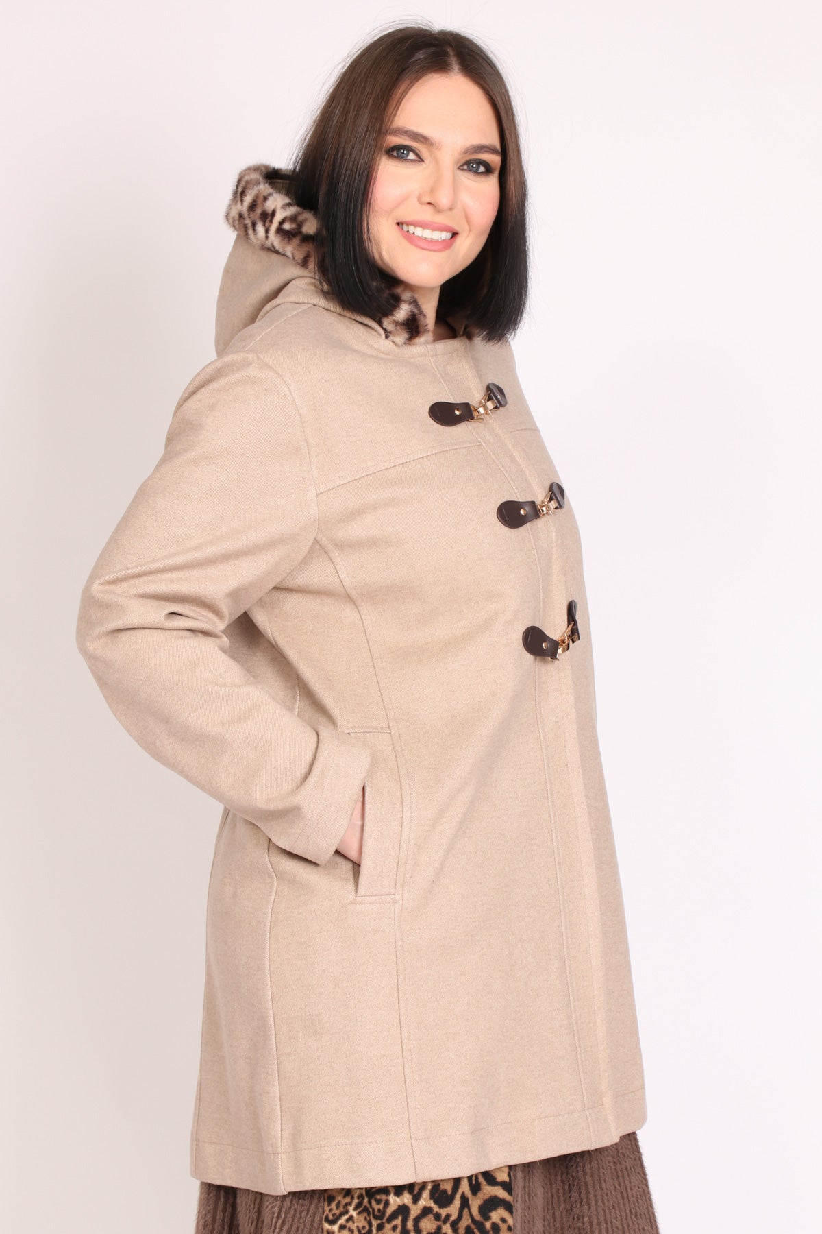 - מעיל יוקרתי מבד אריג עם כובע בעיטור מנומר