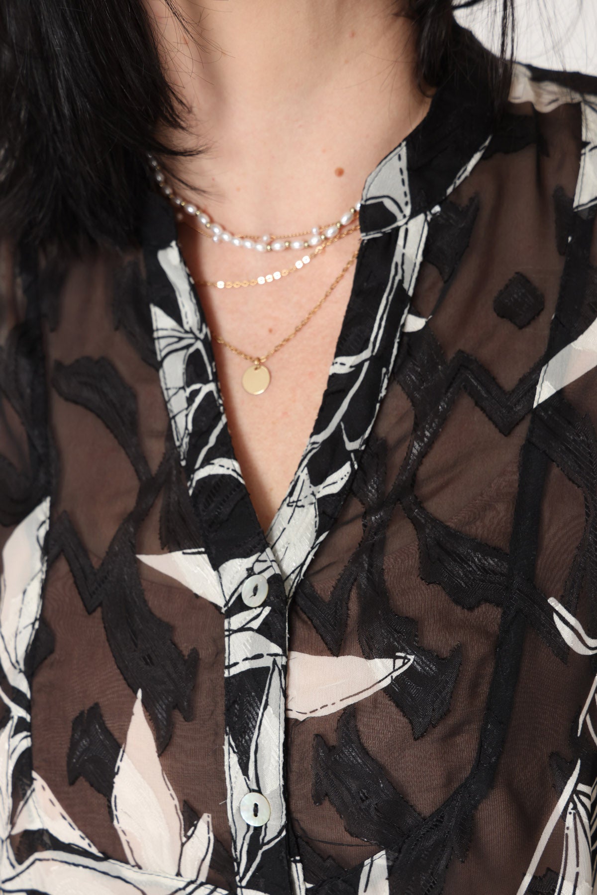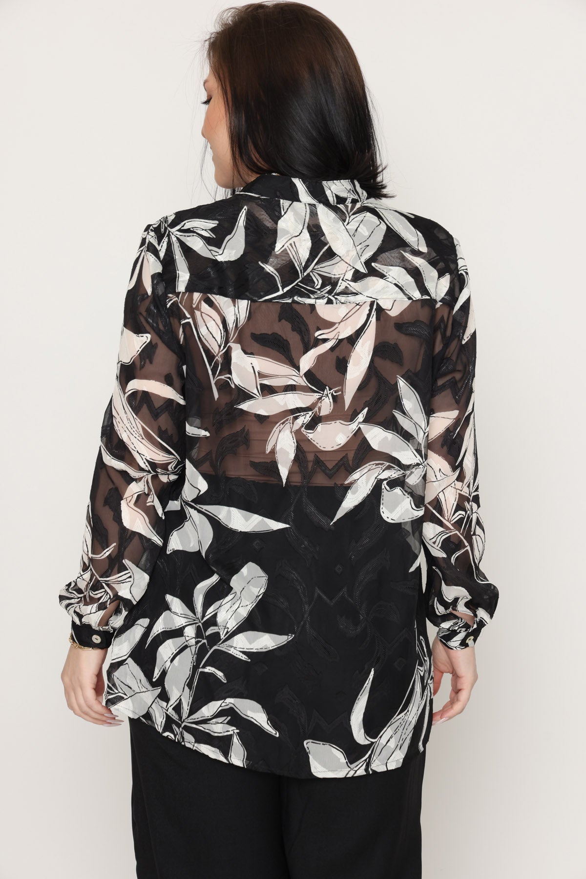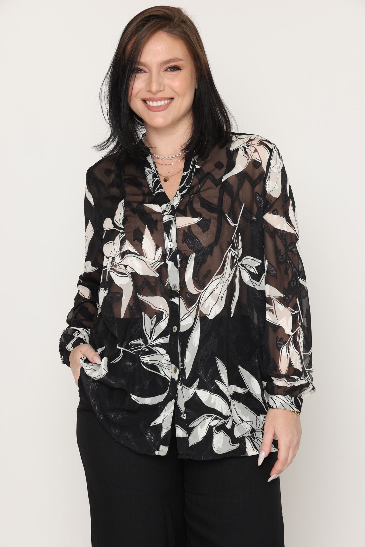 - עליונית שיפון מכופתרת מבד שיפון מודפס
