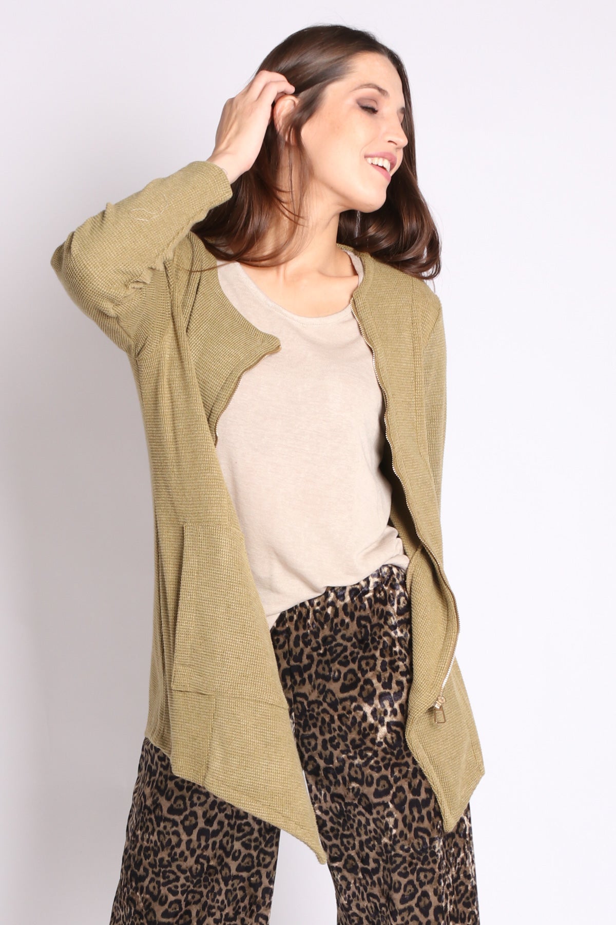 - סגירת צד ברוכסן ברזל, שני כיסים, שרוולים ארוכים