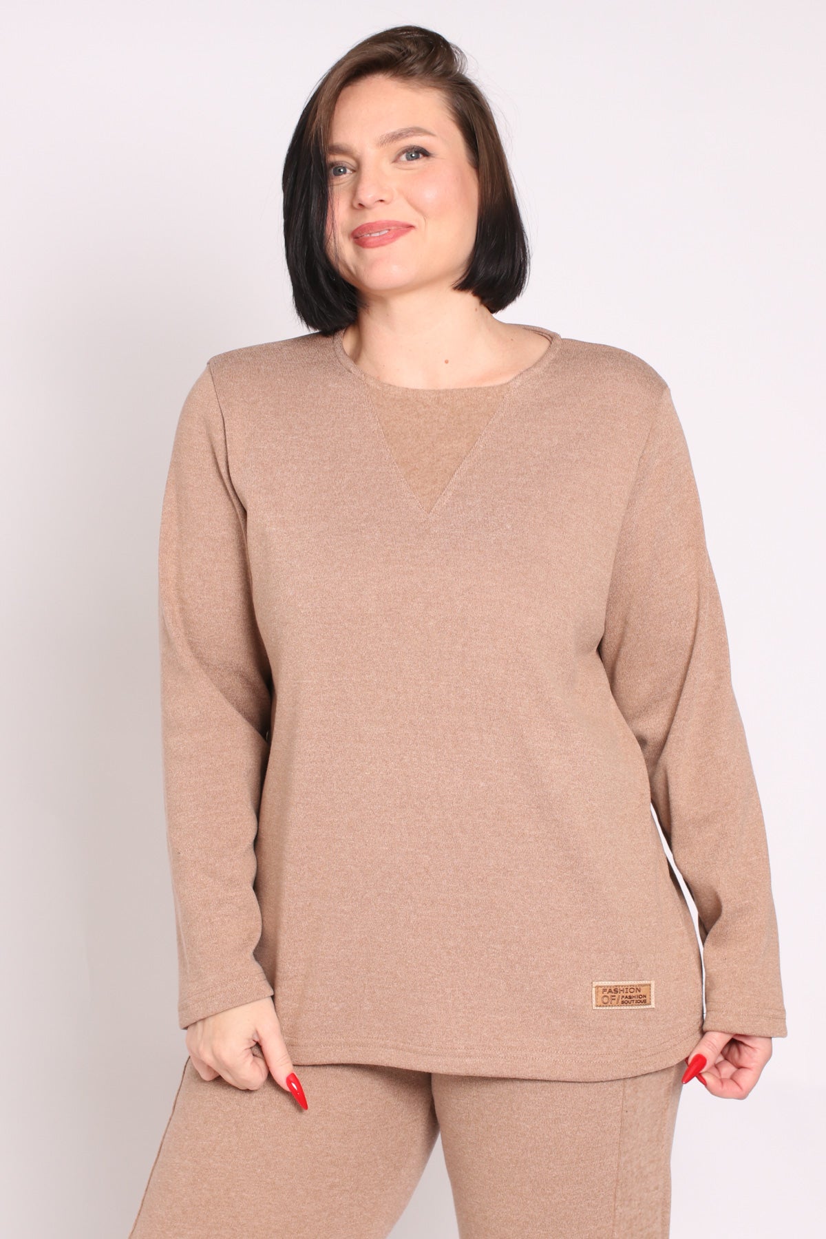 - חולצת סריג נעימה עם עיטור פאצ' בחלק התחתון