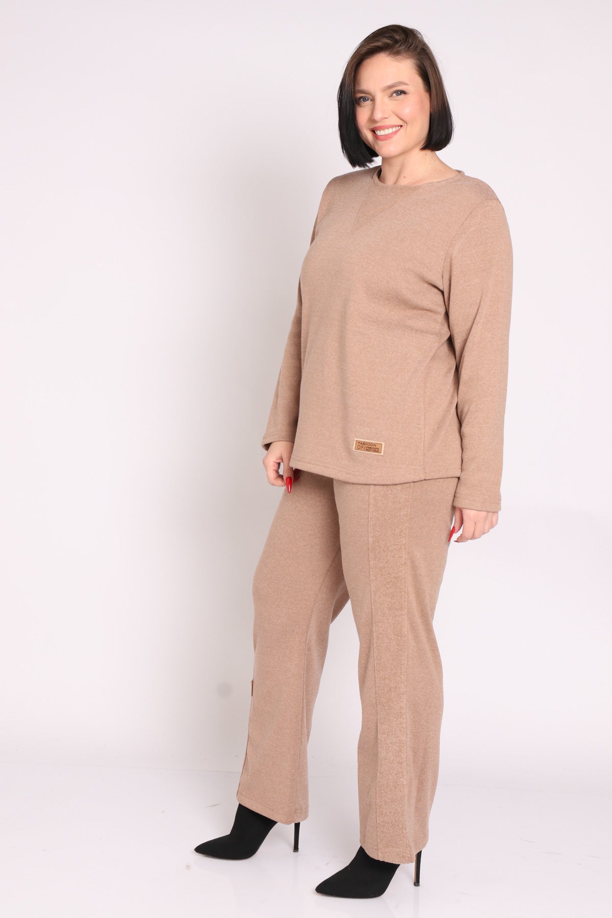 - מכנסי סריג עם גומי במות, בעיטור פאצ' בסיומת