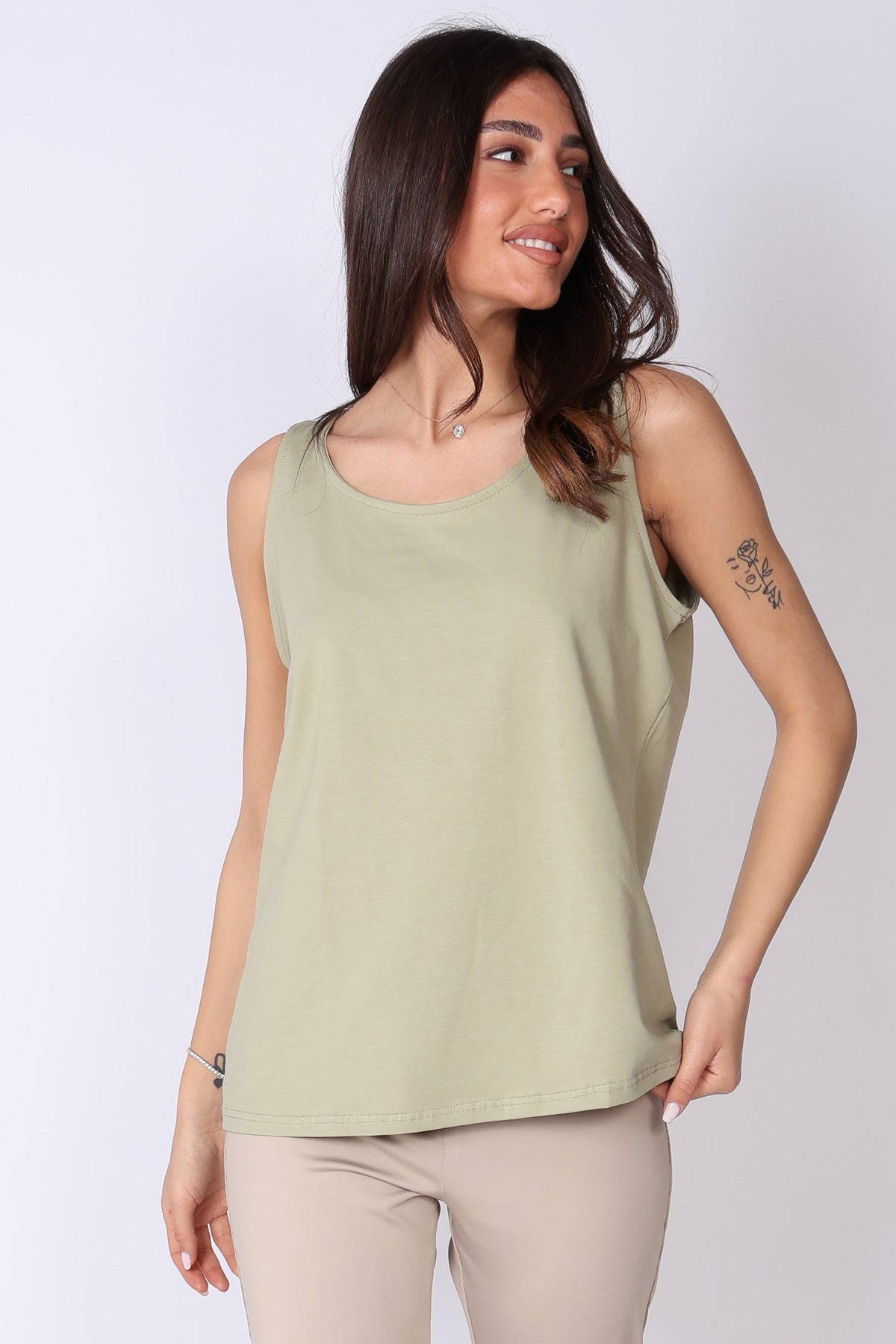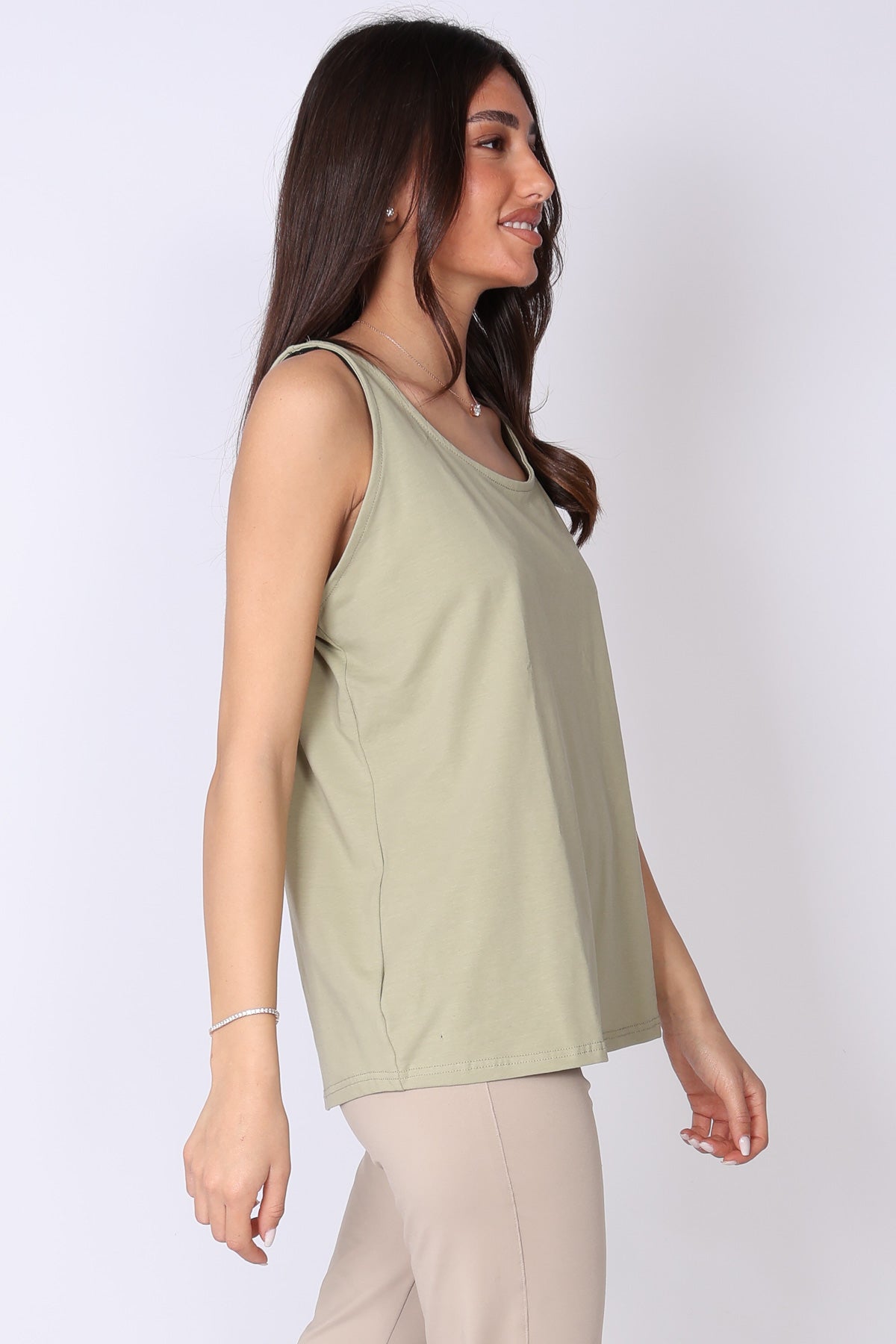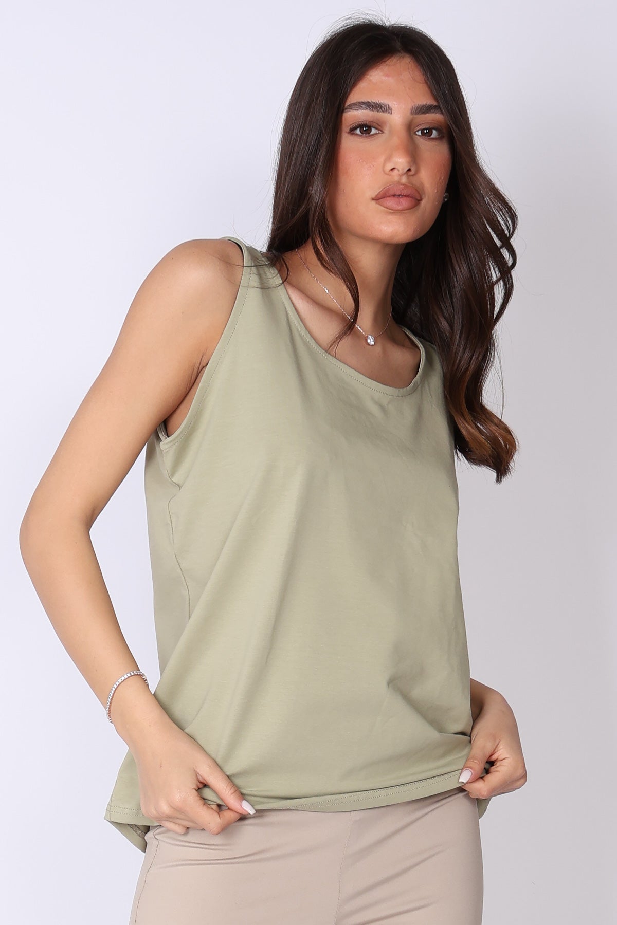 גופיית כותנה בייסיק עם מפתח צוואר עגול בעיצוב נקי שמציע מראה רגוע ואלגנטי.