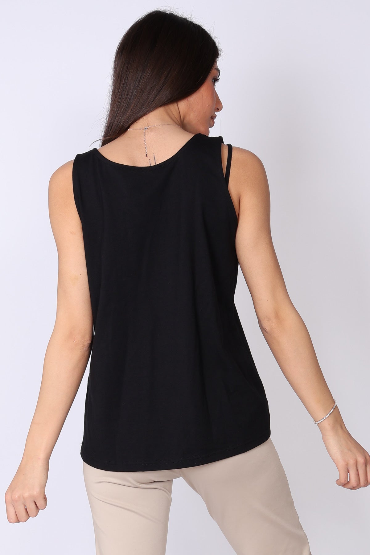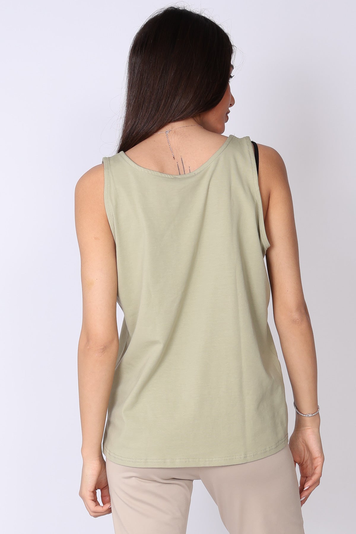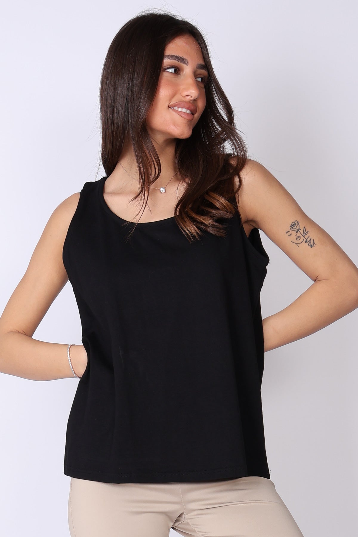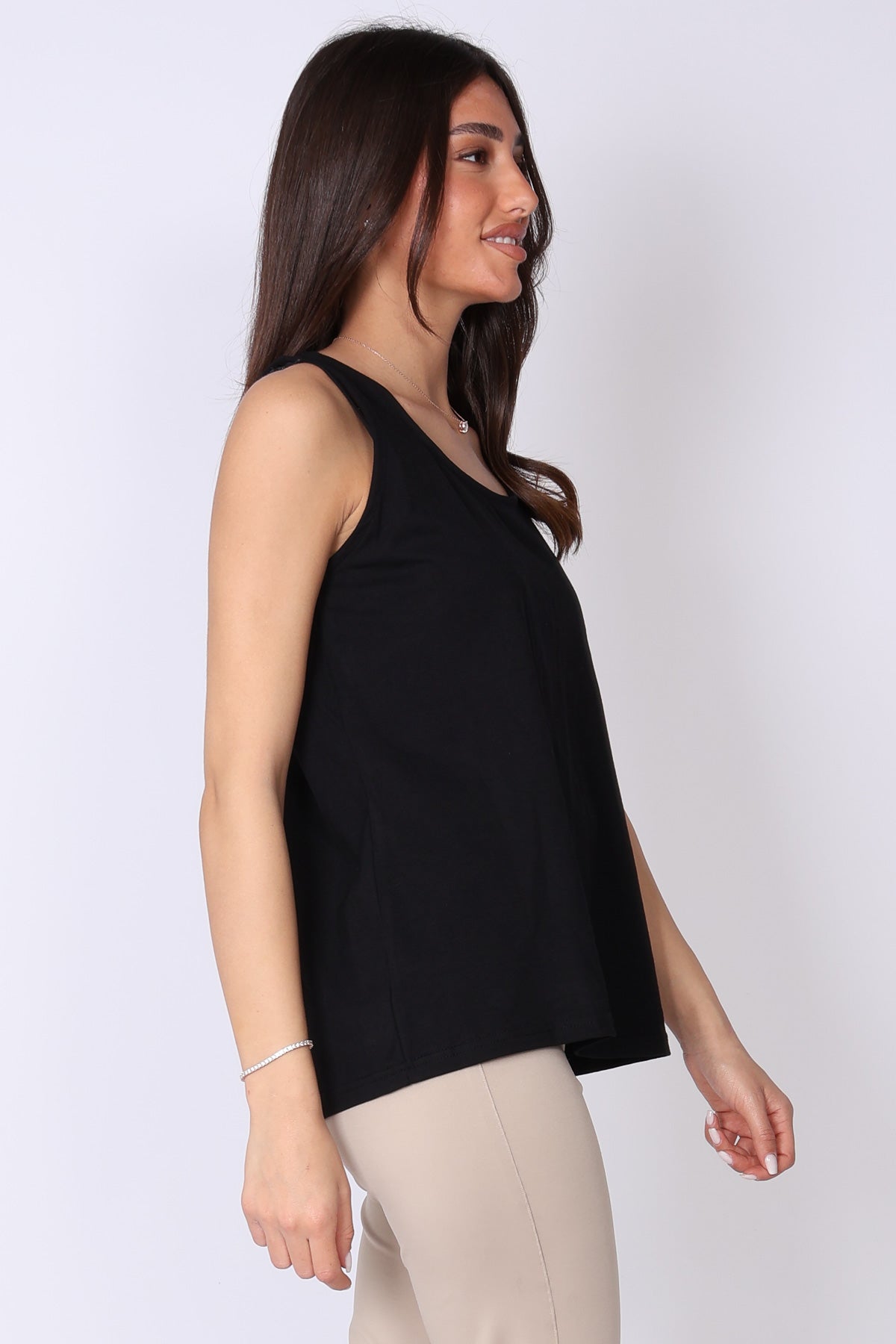גופיית כותנה בייסיק עם מפתח צוואר עגול בעיצוב נקי שמציע מראה רגוע ואלגנטי.