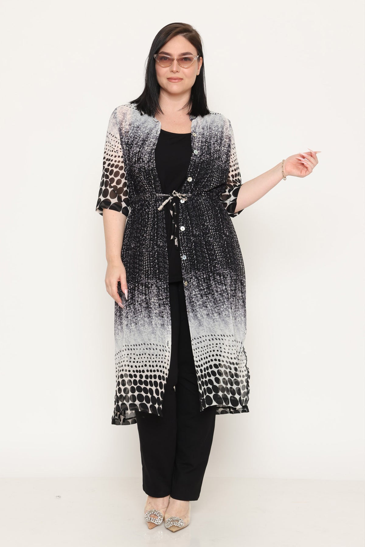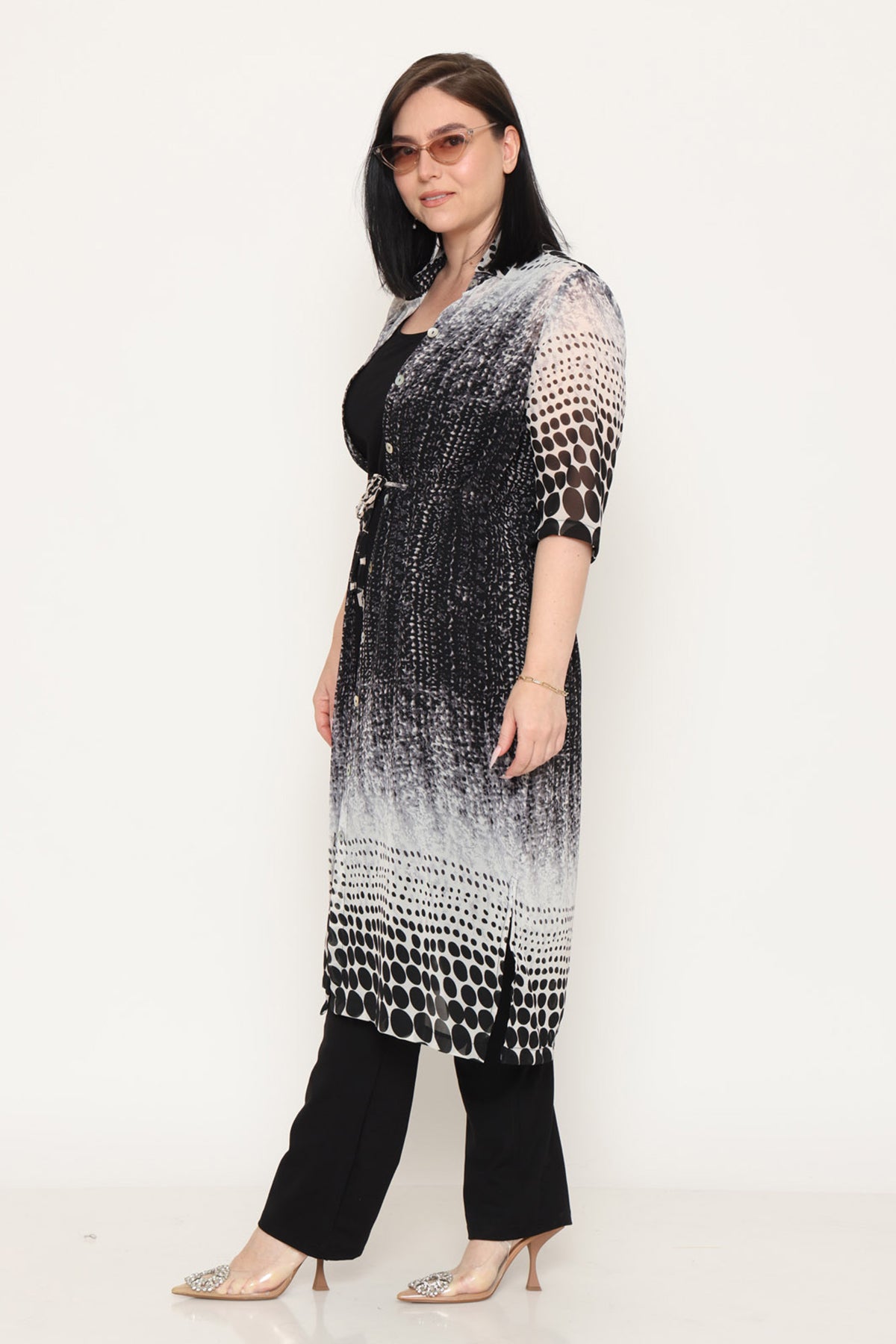 - עליונית פתוחה מבד שיפון בדפוס מונוכרומטי