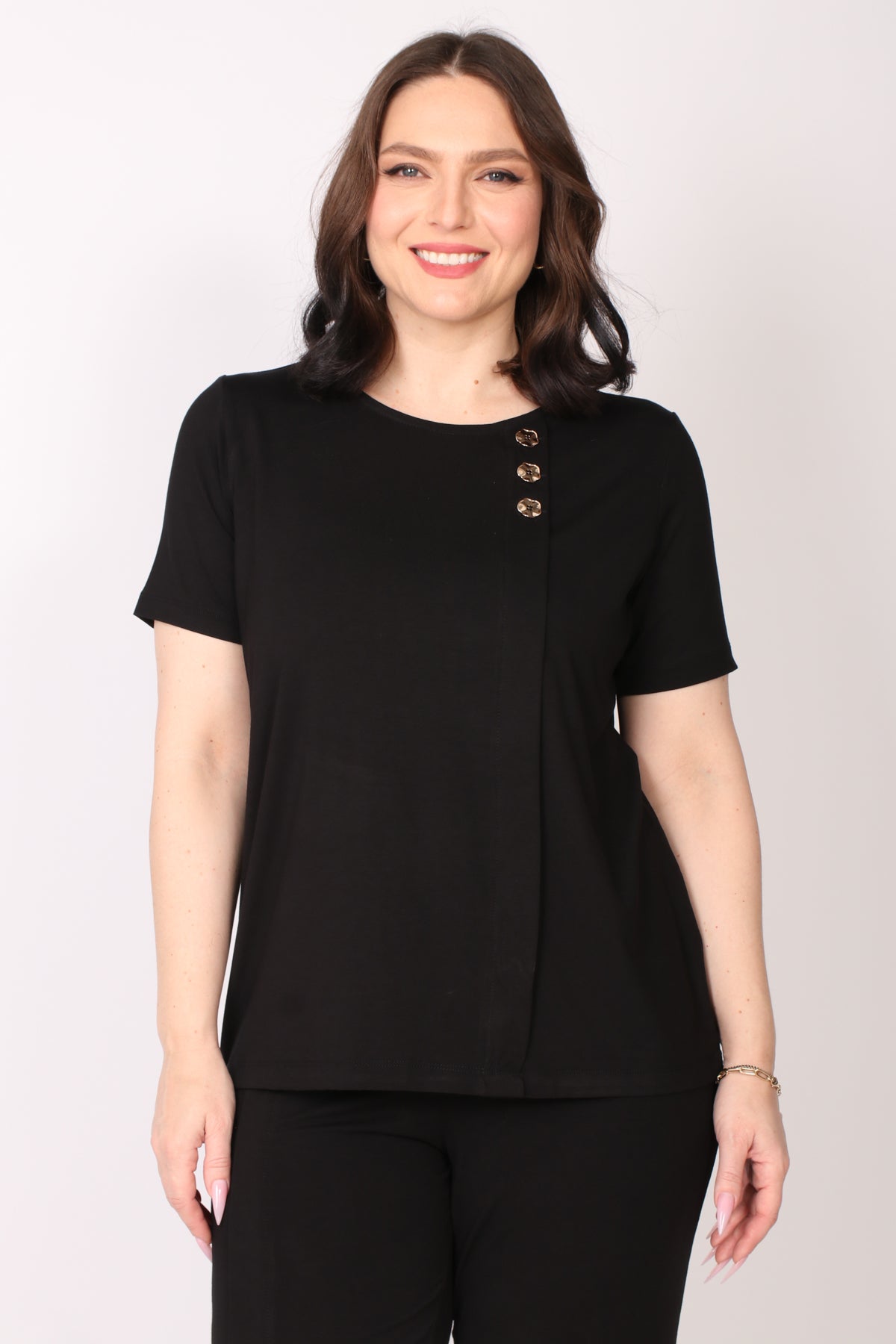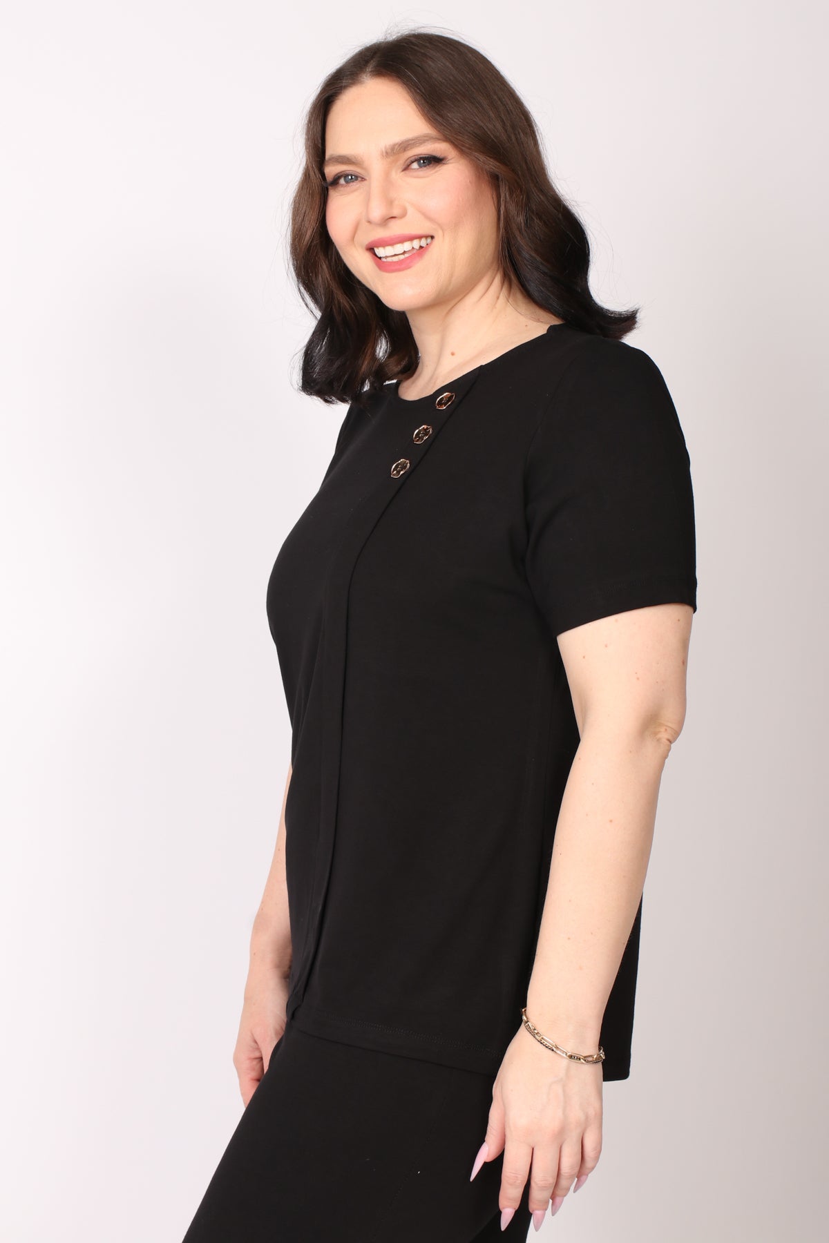 - חולצה בגזרה ישרה בעיטור כפתורי נחושת