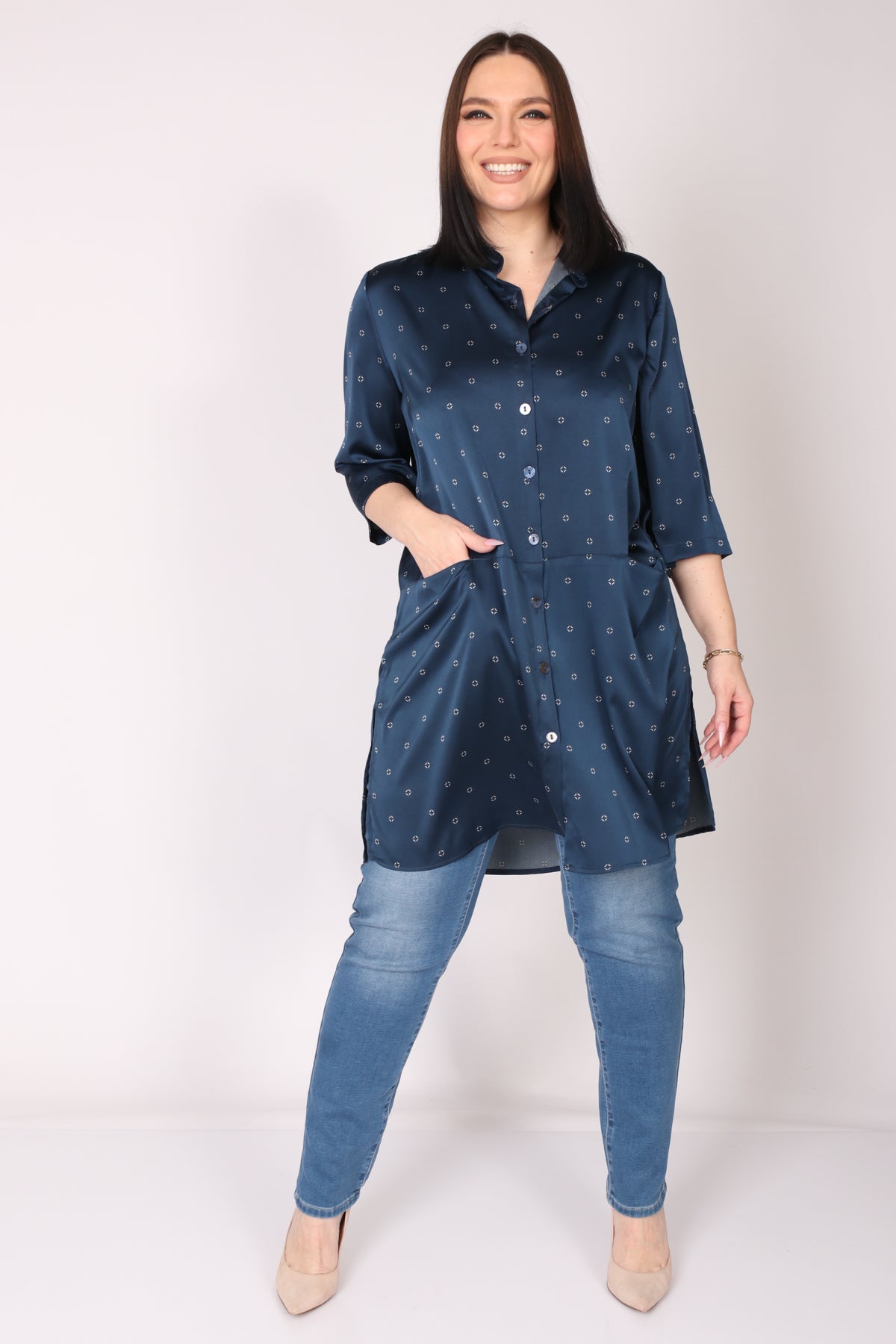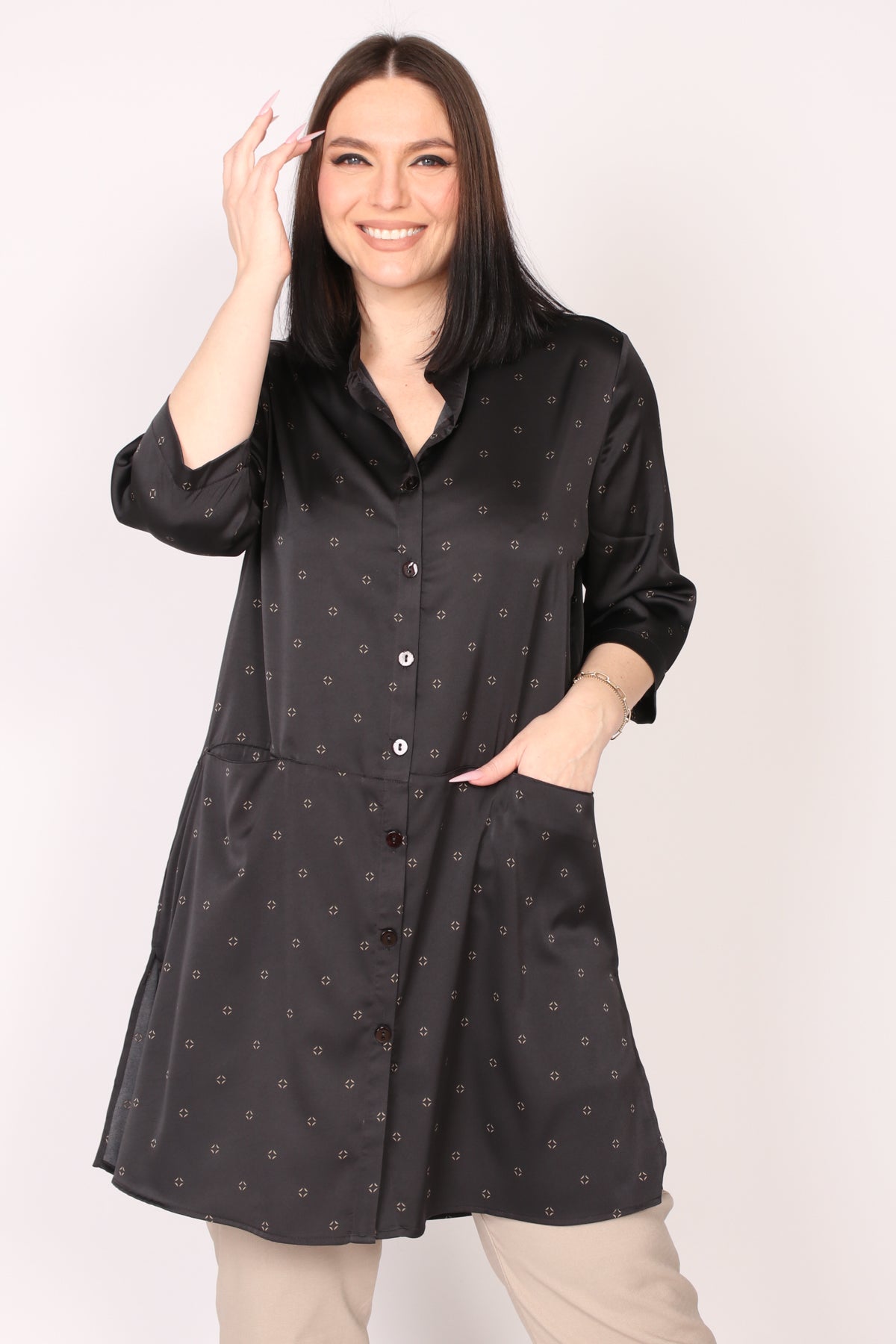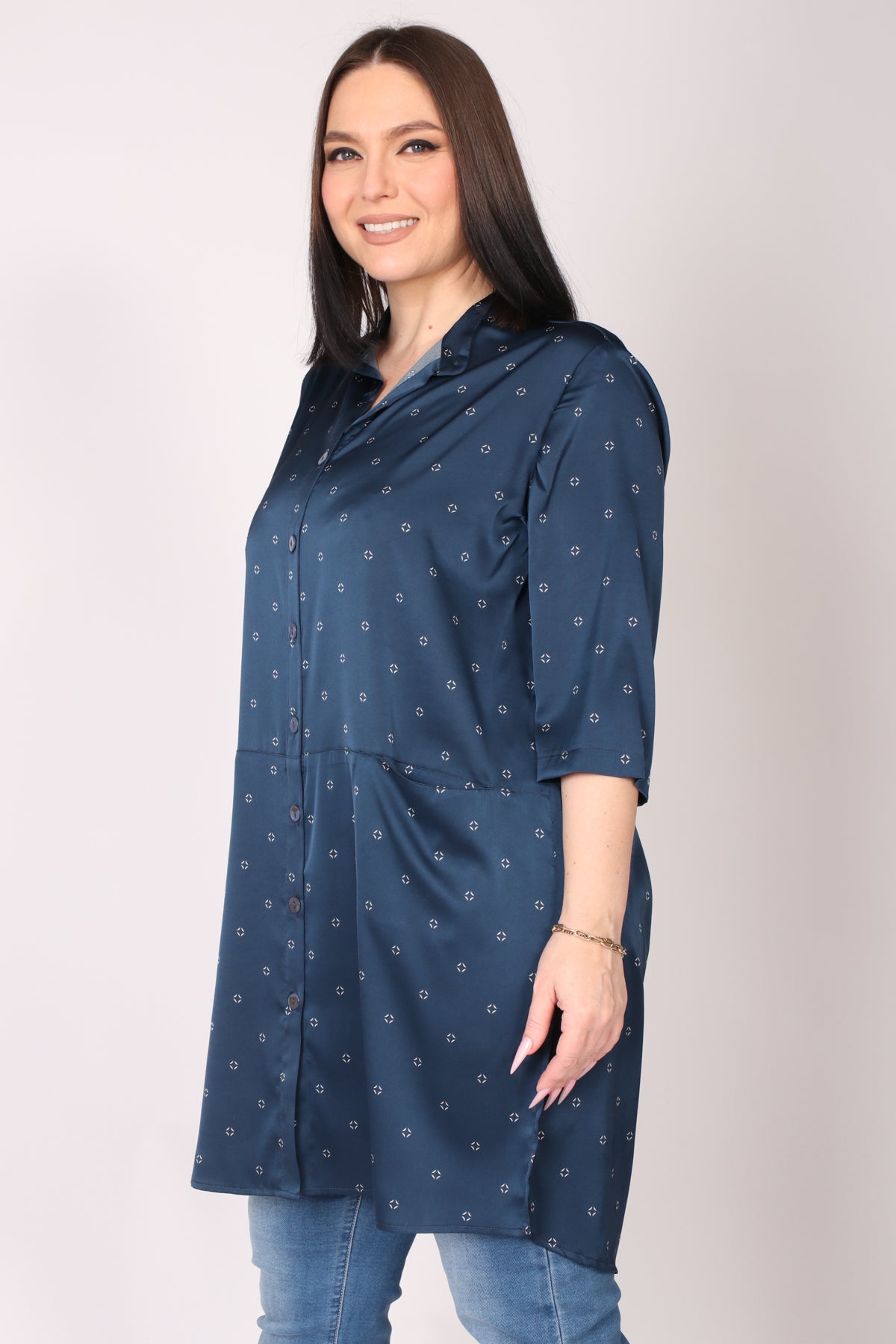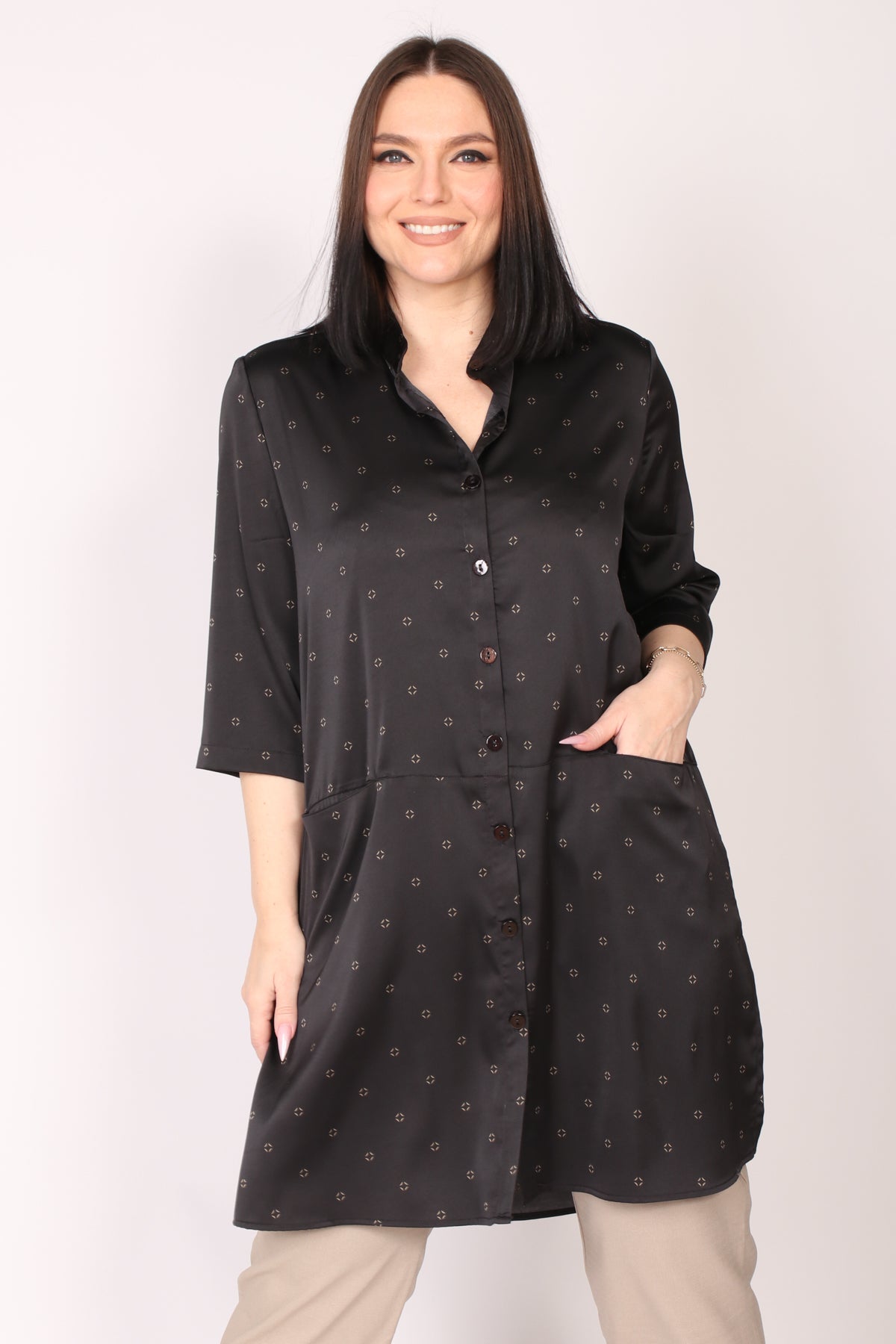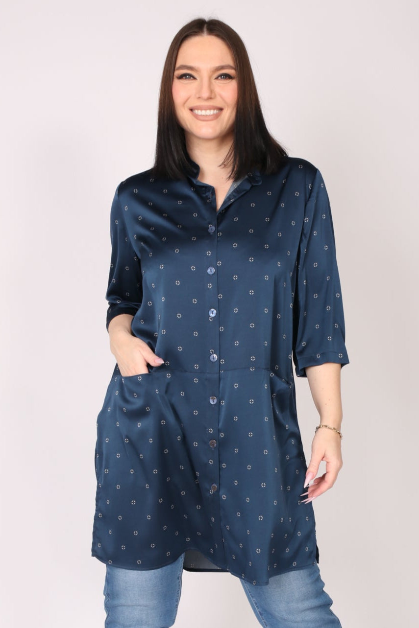 • טוניקה מכופתרת מבד מודפס במראה יוקרתי