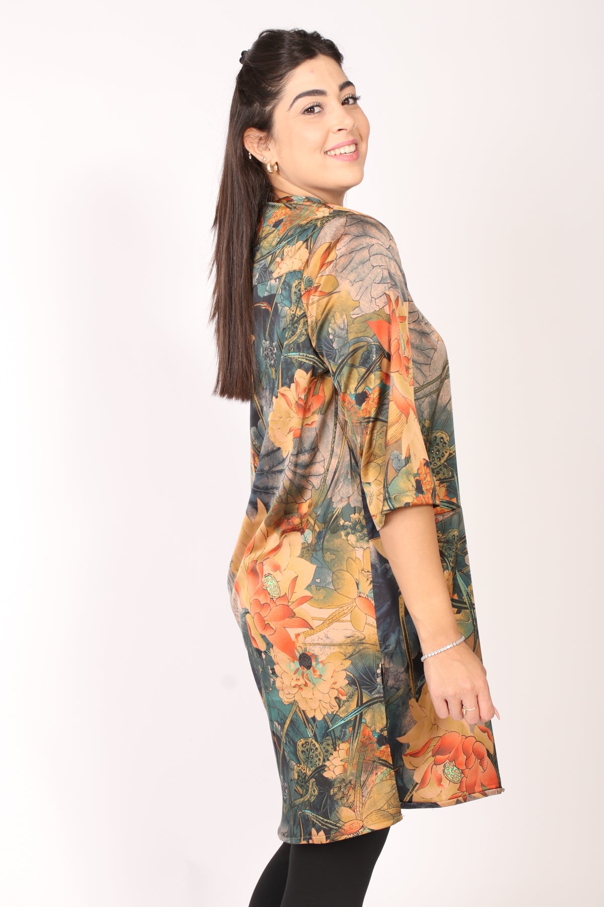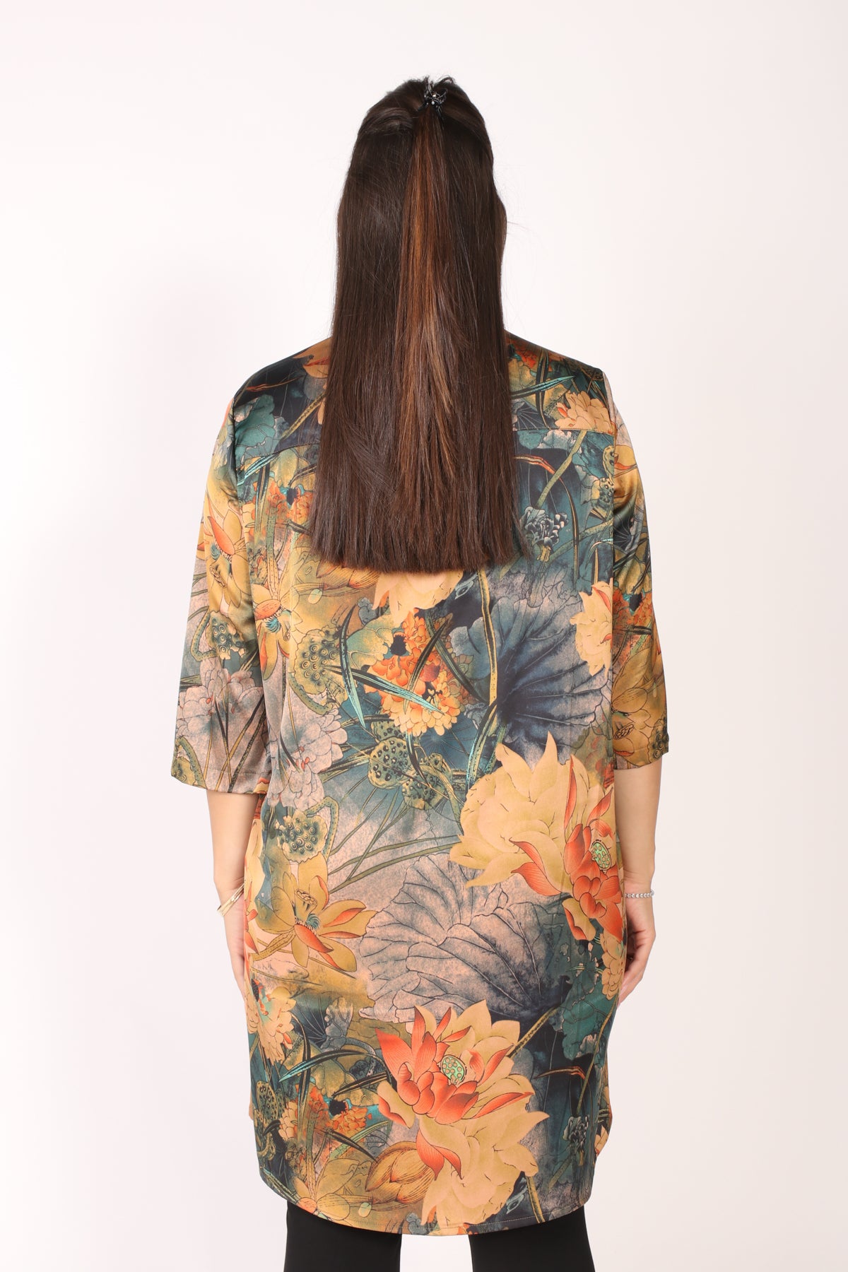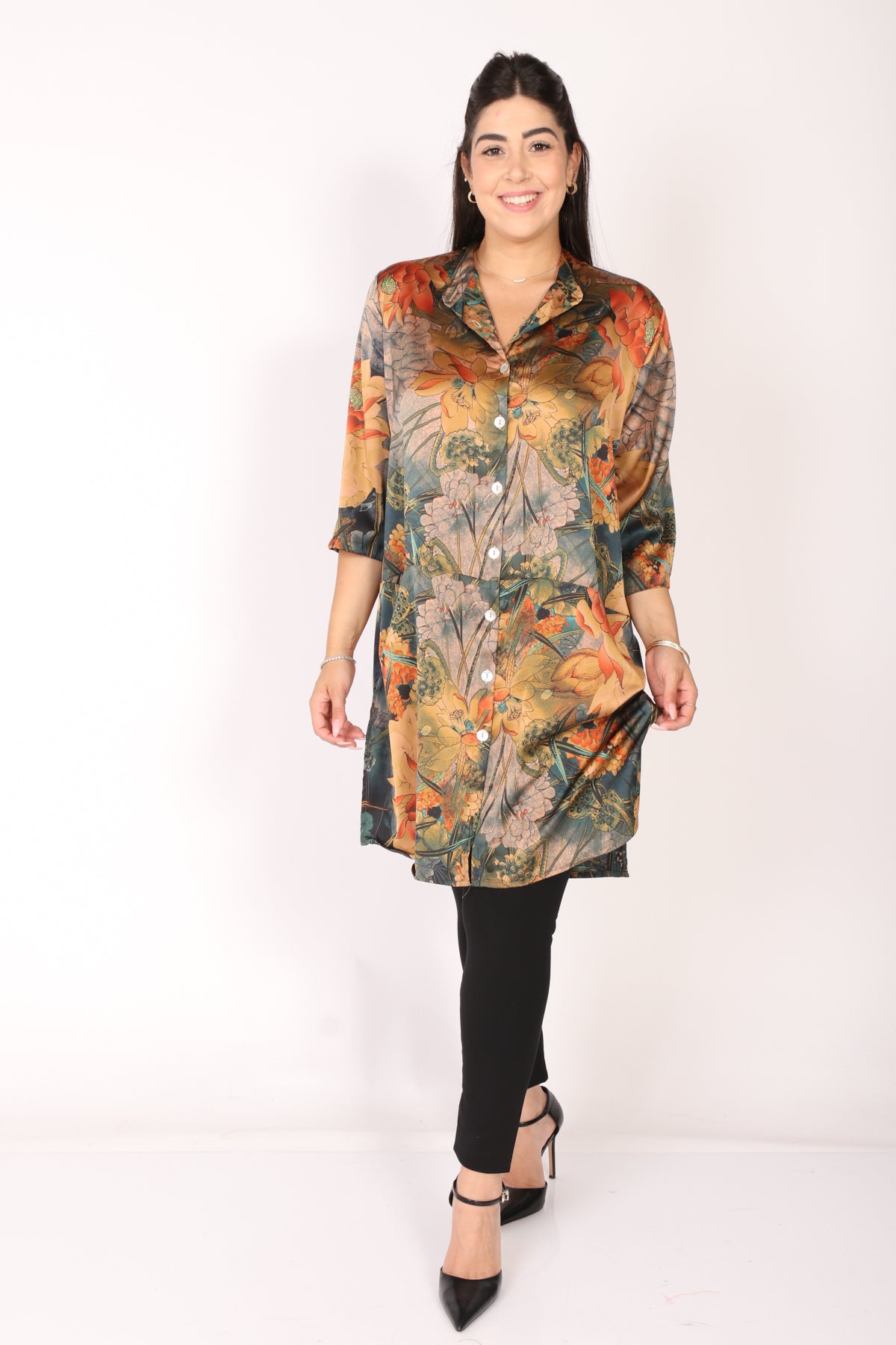 • טוניקה מכופתרת מבד מודפס במראה יוקרתי
