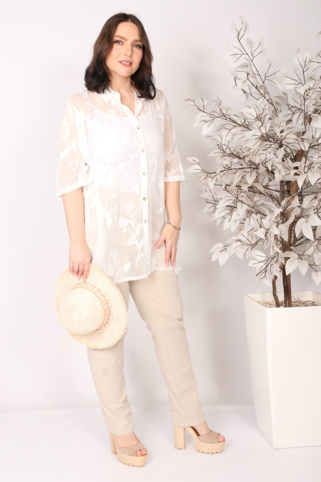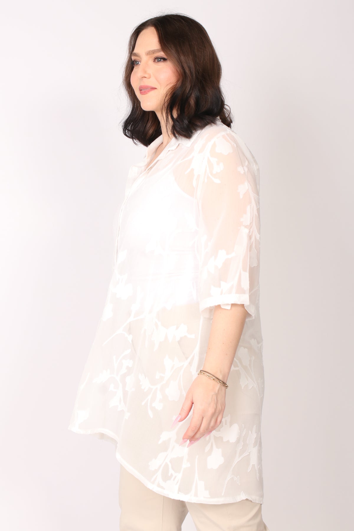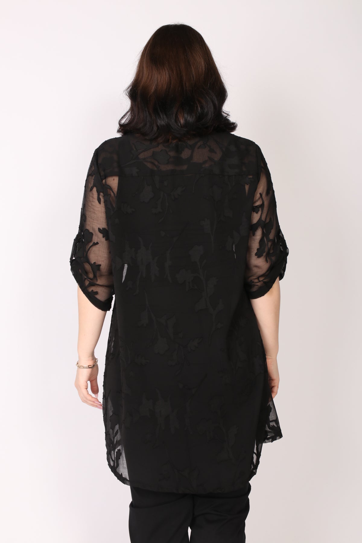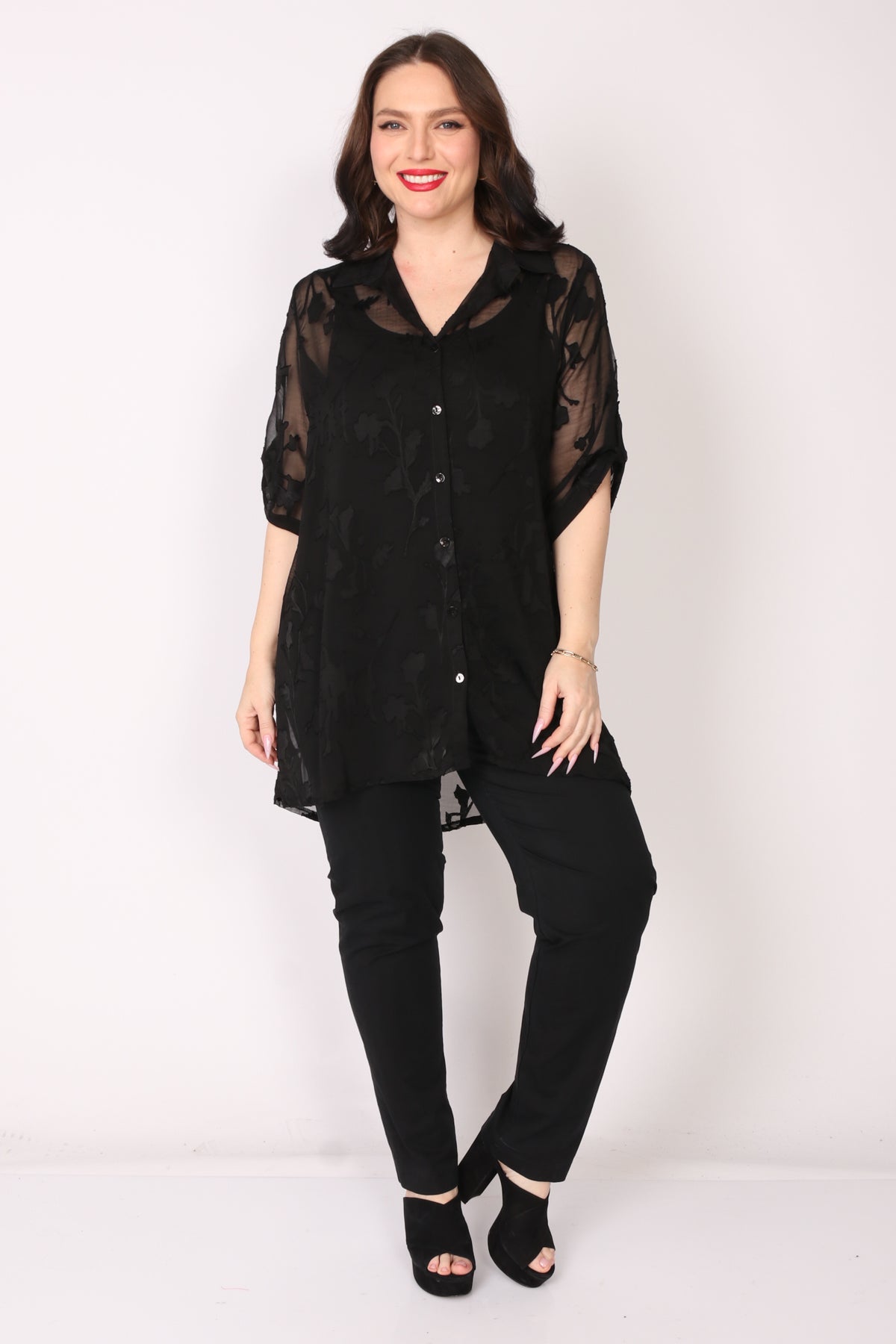 - עליונית מכופתרת מבד שיפון פרחים בגזרה מתרחבת