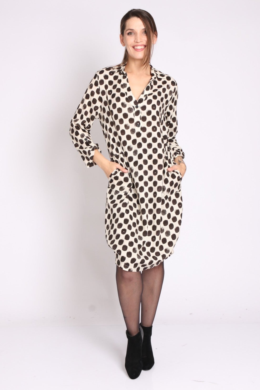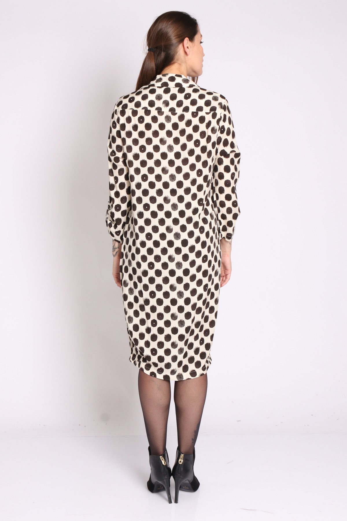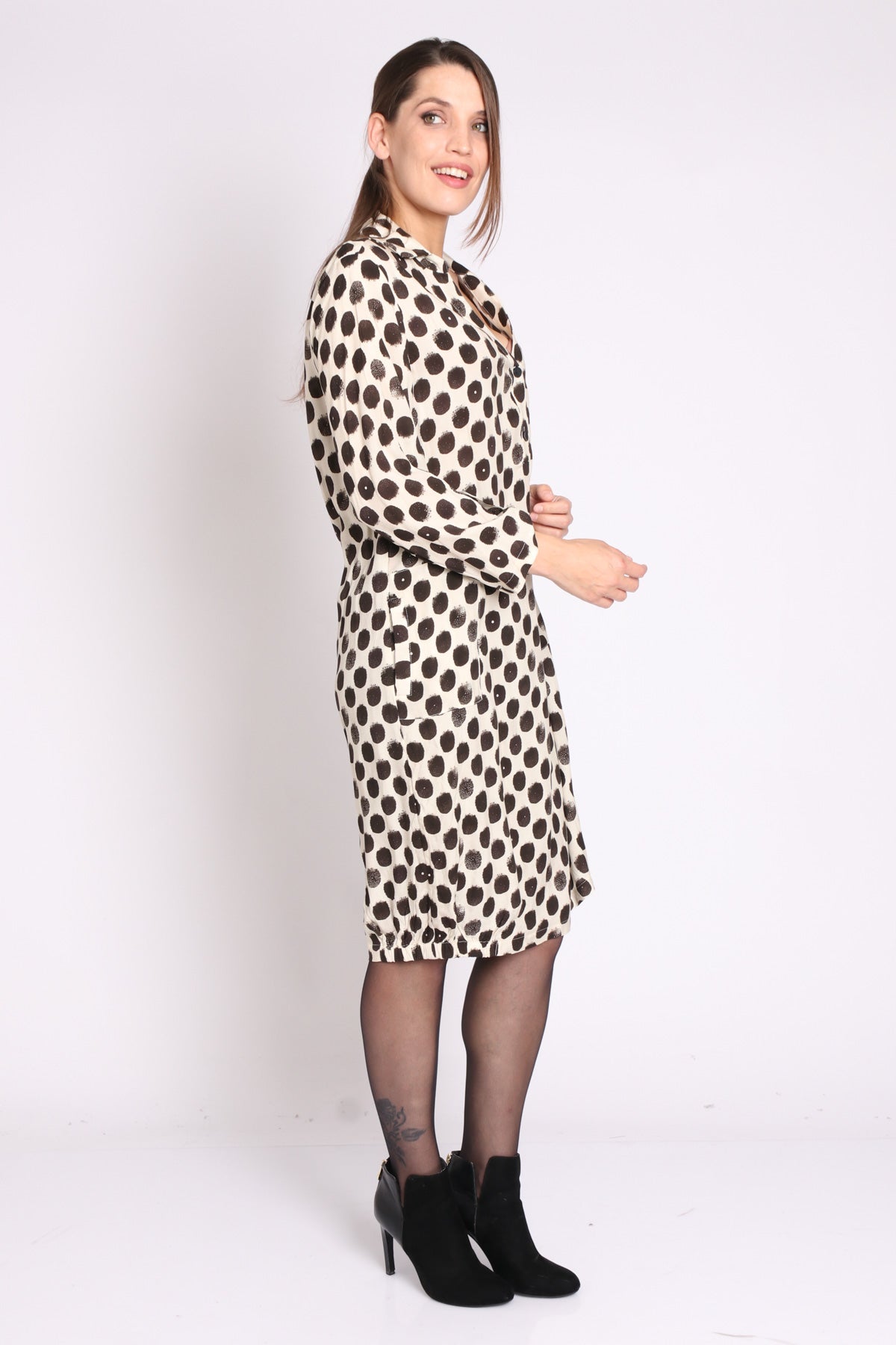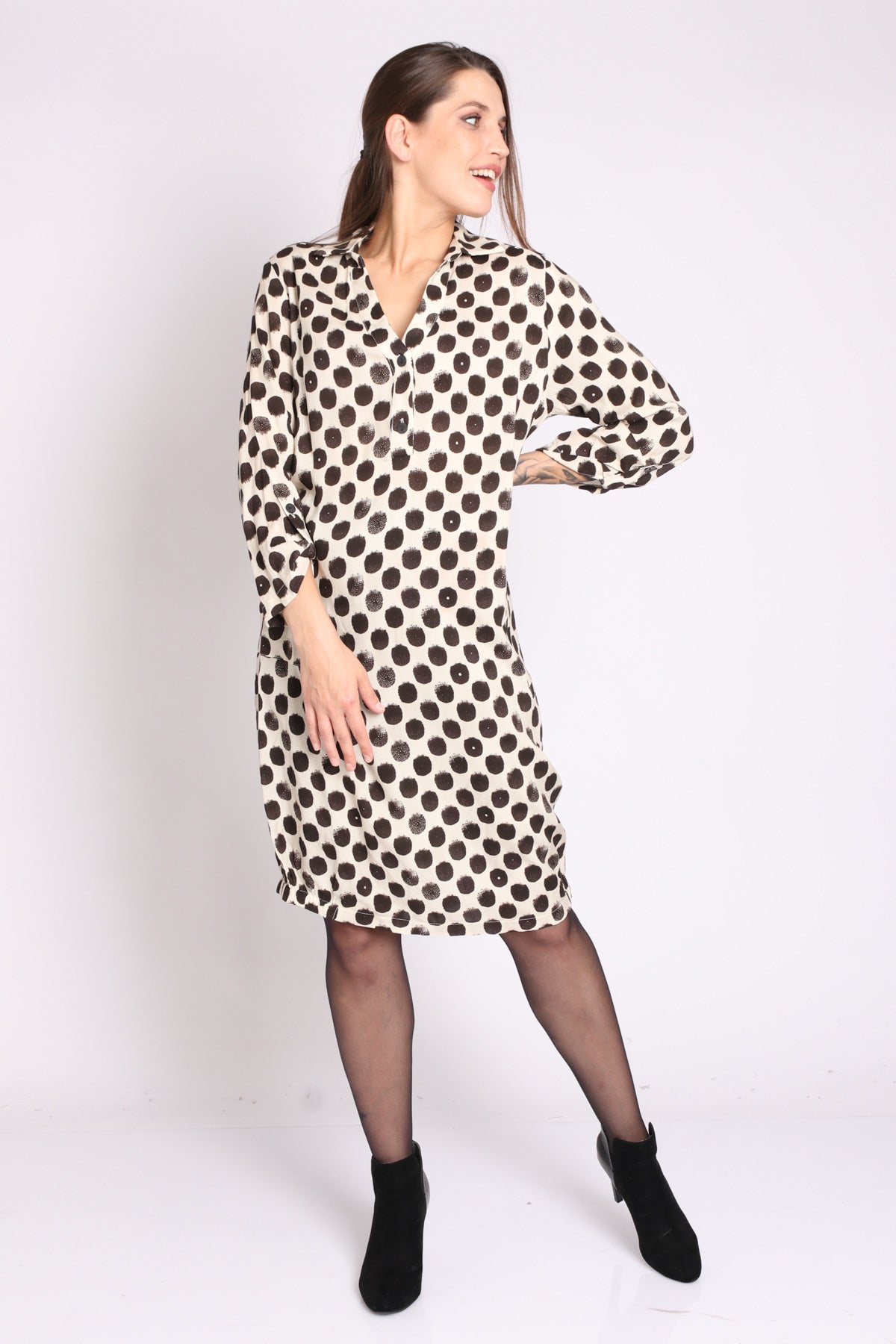 - שמלה קצרה מבד מודפס עם גומי לכיווץ בסיומת
