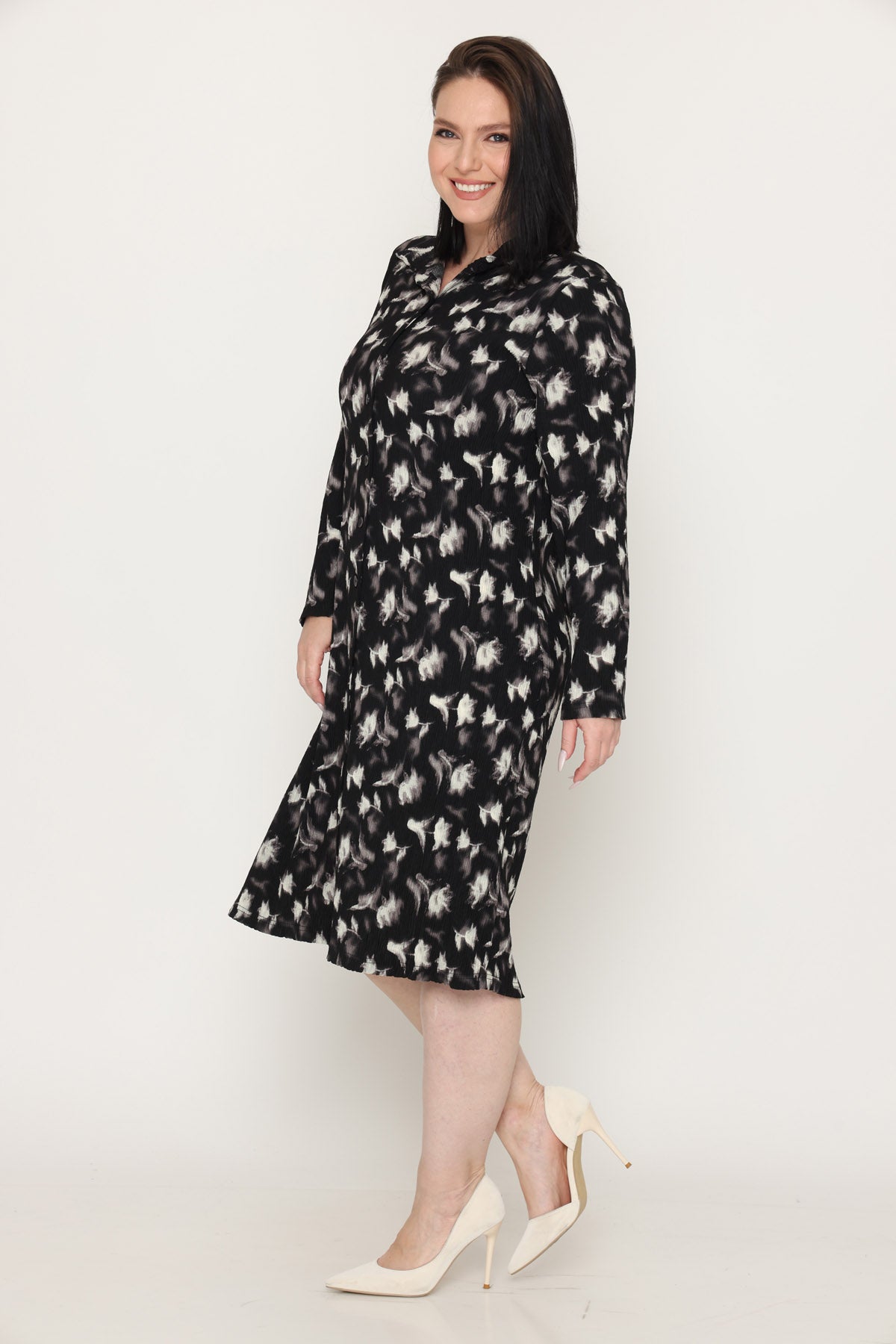 - שמלה מכופתרת קצרה מבד בדפוס עשיר