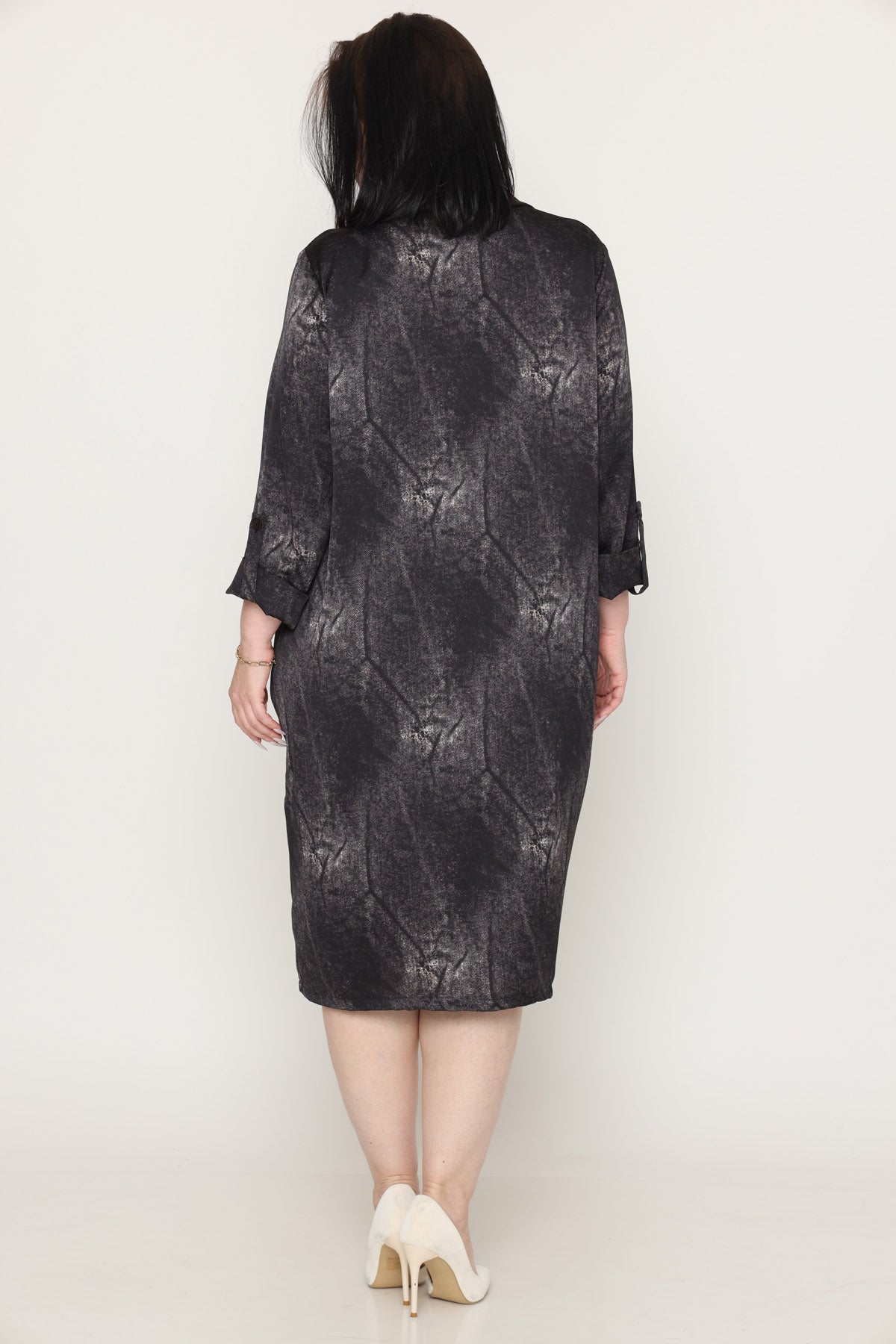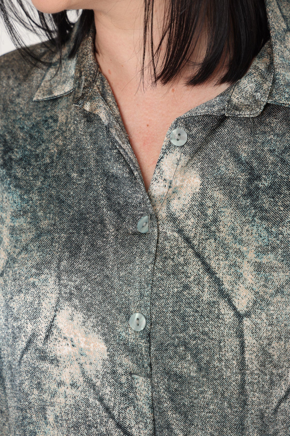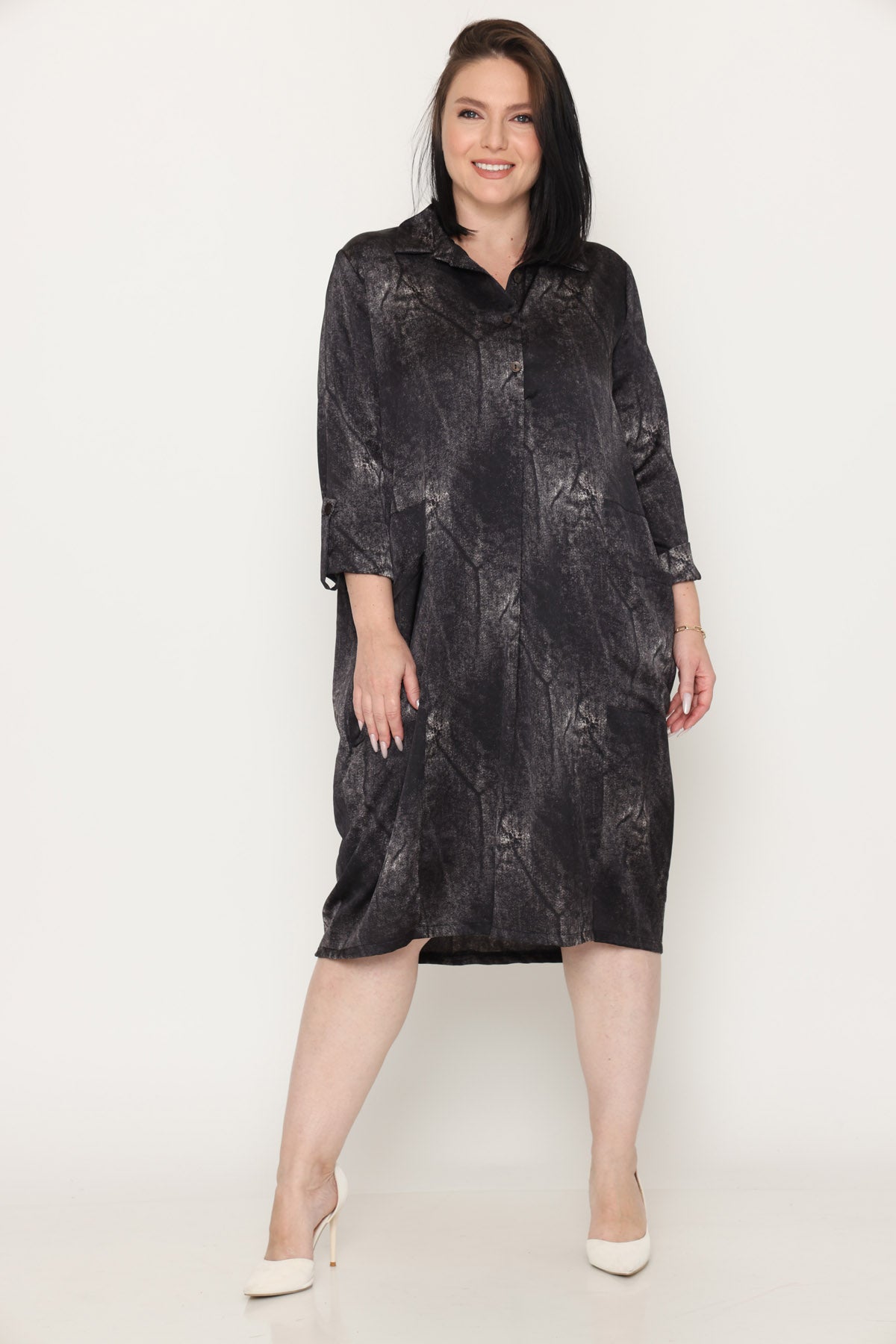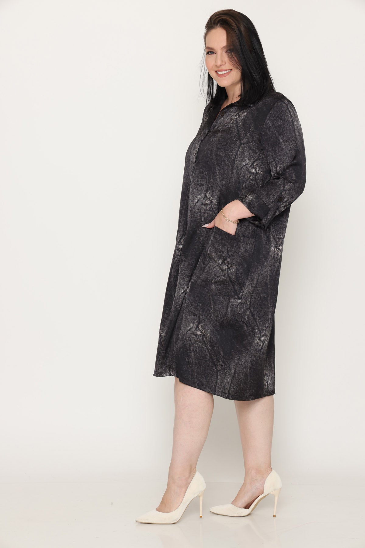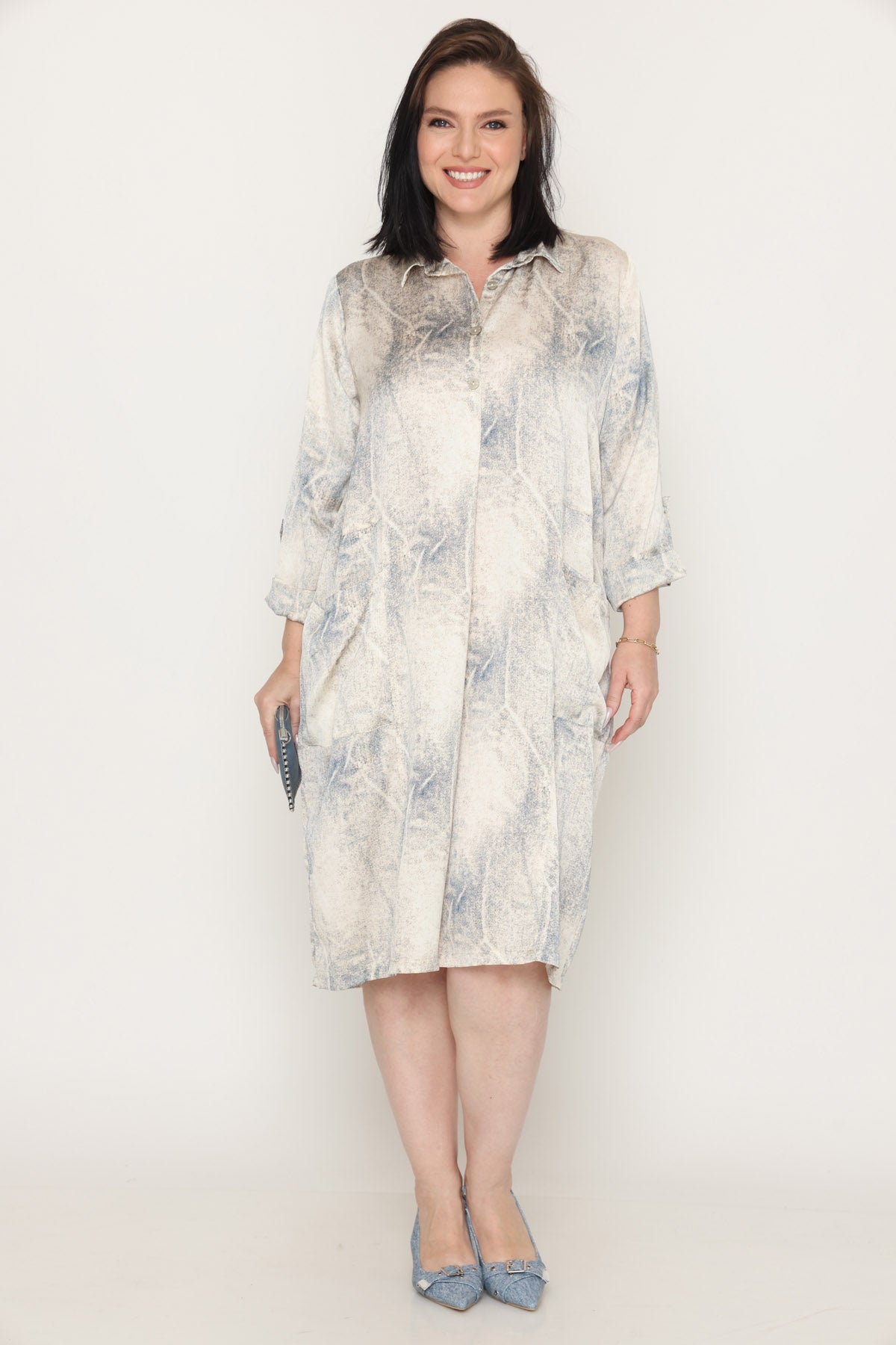 - שמלה באורך הברך מבד מודפס עם צווארון פולו וסגירת 3 כפתורים